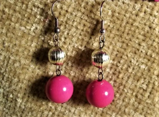 a vintage addiction, jewelry, earrings, pierced ears, dangle, pink, gold, beaded,fashion jewelry, gift box