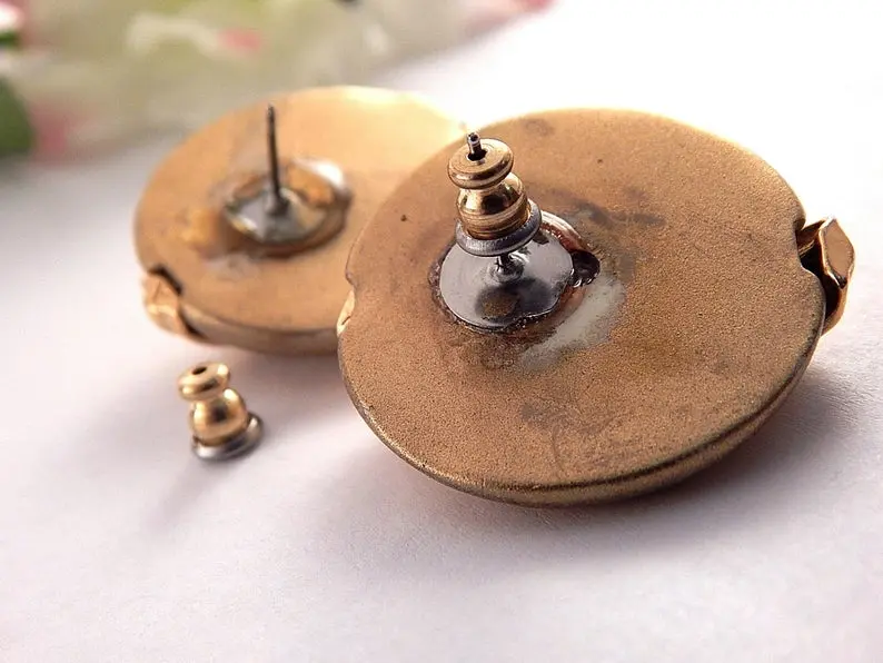 Lightweight metal-based earrings with applied plastic gold coating