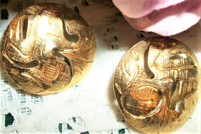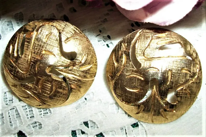 Earrings Brushed Gold Metal Large Dome Circles for Pierced Ears Vintage 1980s Fashion Jewelry