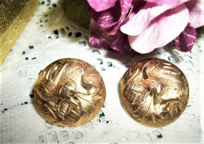 Brushed Gold Metal, Large Dome Circles, Pierced Ears, Vintage 1980s ,Fashion Jewelry, Bullet Backs ,Stability Discs