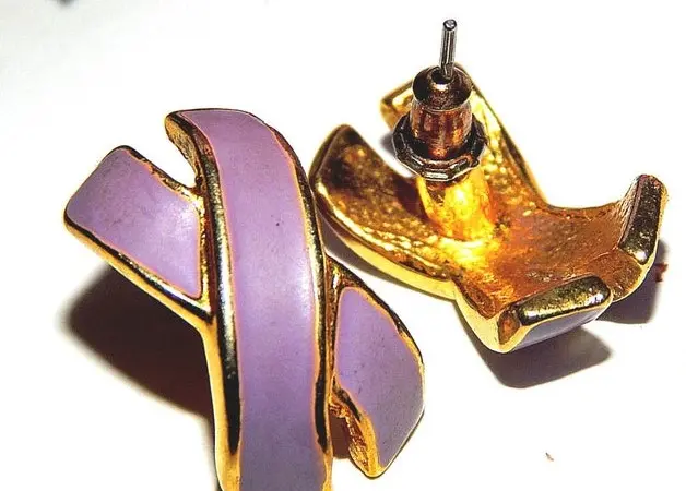vintage jewelry, earrings, pierced ears, post earrings, enamel earrings, purple violet, lavender, orchid accessory, geometric. mod modern, fashion jewelry, x earrings