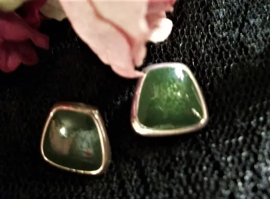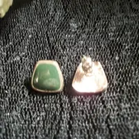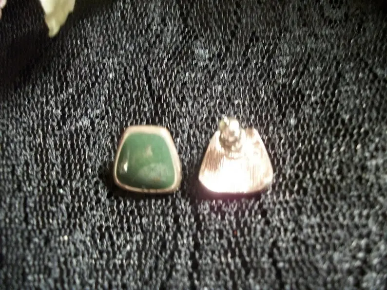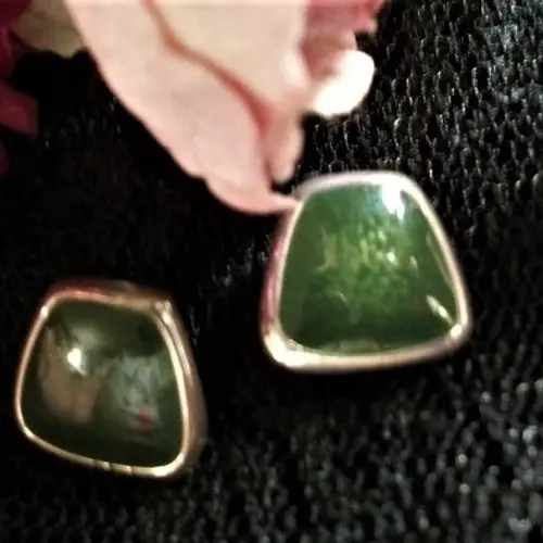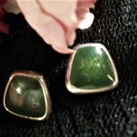 earrings, pierced ear, post earrings, stone, green, jade, enamel, st patricks day, green earrings, jewelry, vintage, mod, 1970s, fashion jewelry, geometric,
