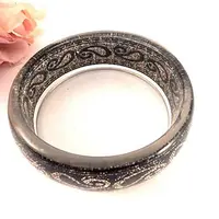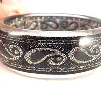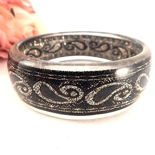 Gold glitter Art Deco swirls decorate the sparkly black background of this pretty bangle bracelet