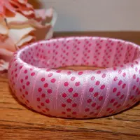 Bangle Pink Polka Dot Fabric Ribbon-Wrapped Womens Bracelet Vintage 1980s Fashion Jewelry Costume Accessory