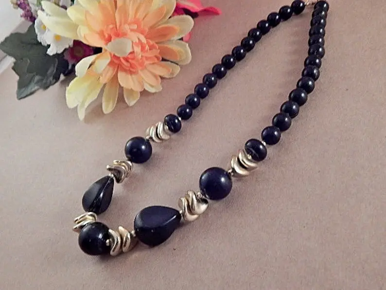 vintage jewelry, necklace, beaded, black, gold, formal, elegant, onyx, costume jewelry, black beads, day to night,