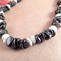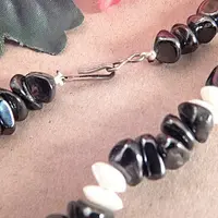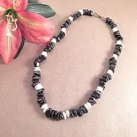 vintage jewelry, necklace, beaded, silver, grey, hematite, healing jewelry, magnetic, black, stone, 17 inch, charcoal, semi precious, shades of grey, mother of pearl, black and white