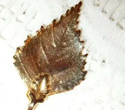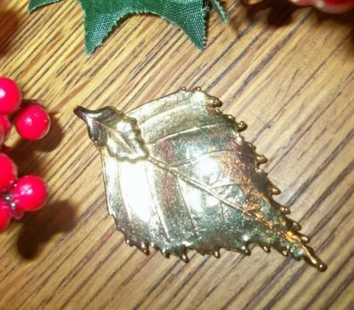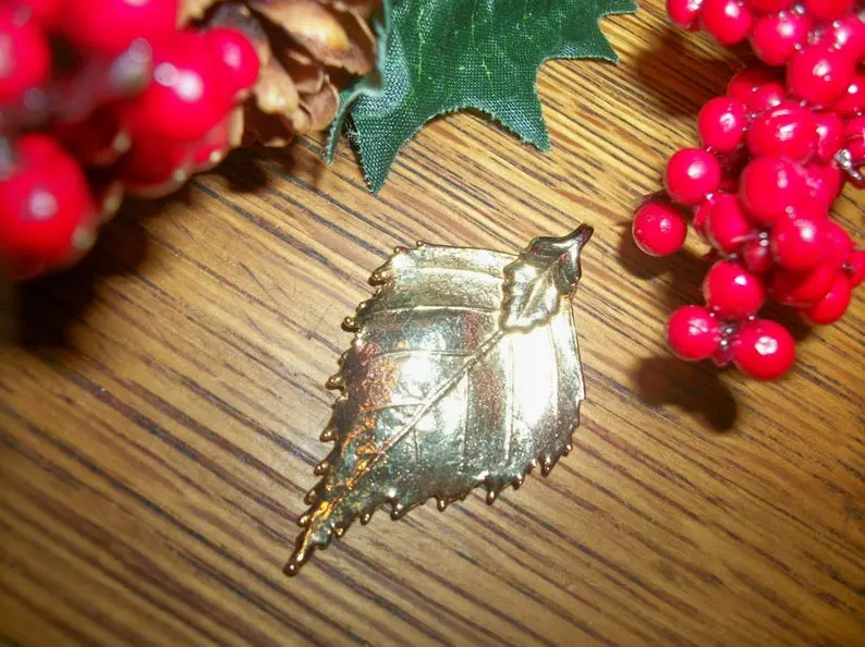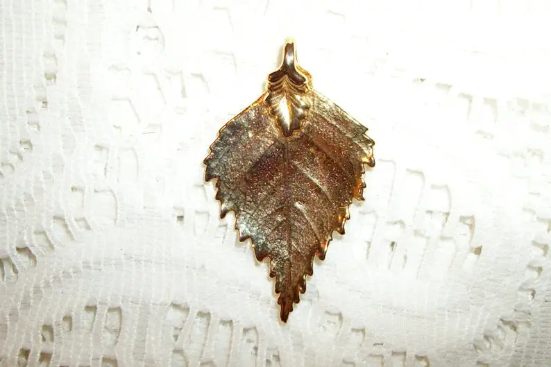vintage, jewelry, pendant, gold leaf, leaf leaves, nature inspired, artistic, hand painted gilt, gold gilt., gift for her,