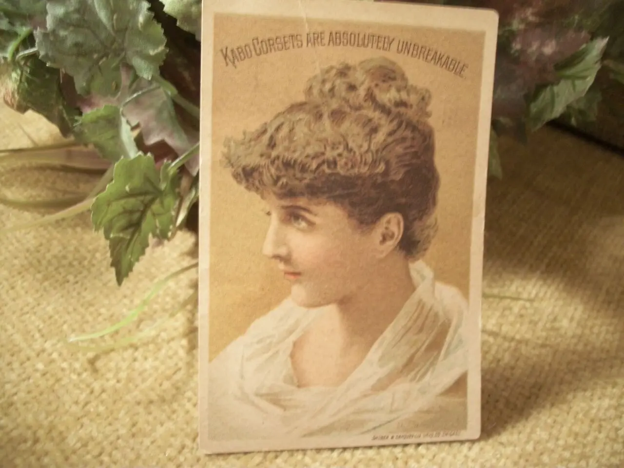 Antique Picture Card 1890s Kabo Corset Fashion Advertising Paper Ephemera Victorian Woman Lithograph Papercrafts Decoupage Supply