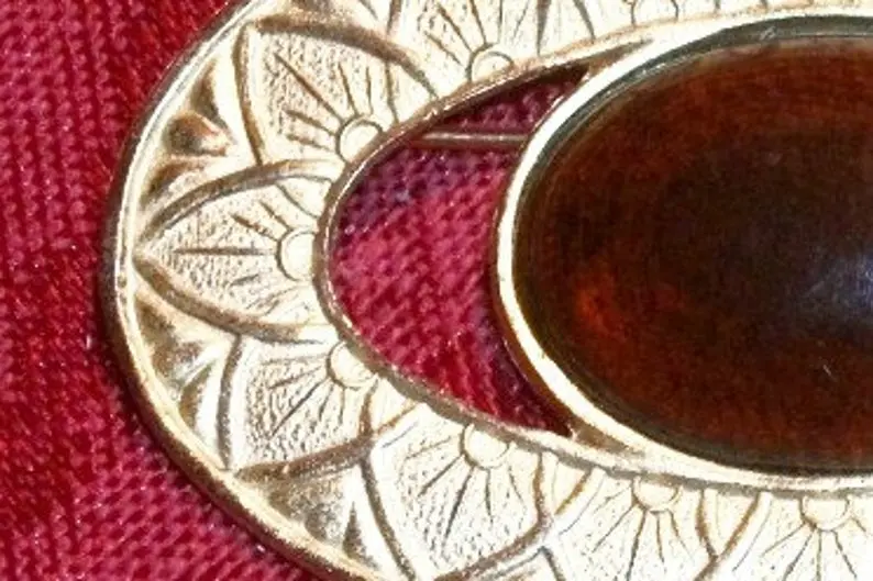 Oval Brooch with Large Translucent Root Beer Colored Stone