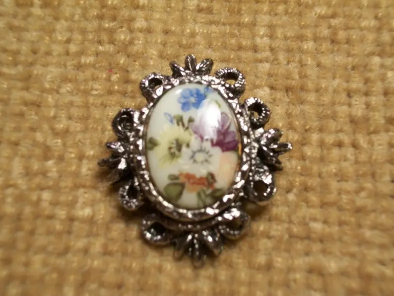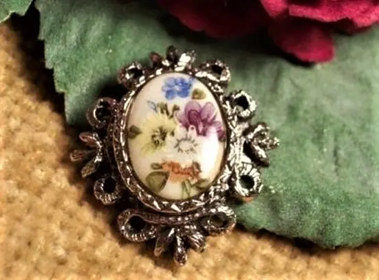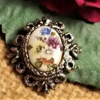 Ornate Floral Victorian Porcelain Brooch