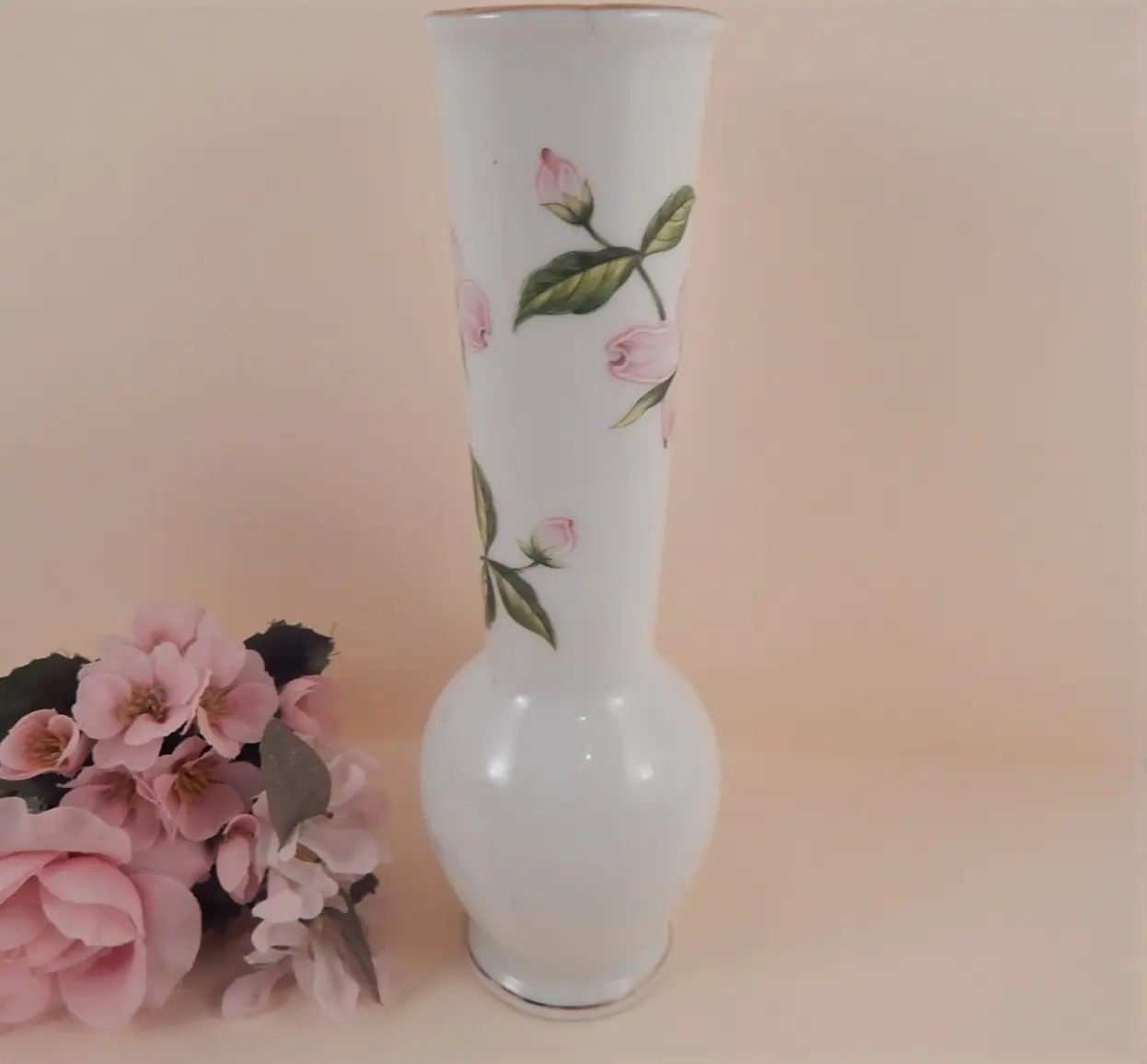 vintage, porcelain, vase, floral, bud vase, pink flowers, lefton, ceramic, collectible, cottage chic, mothers day gift, gift for grandmother, housewarming gift, mid century