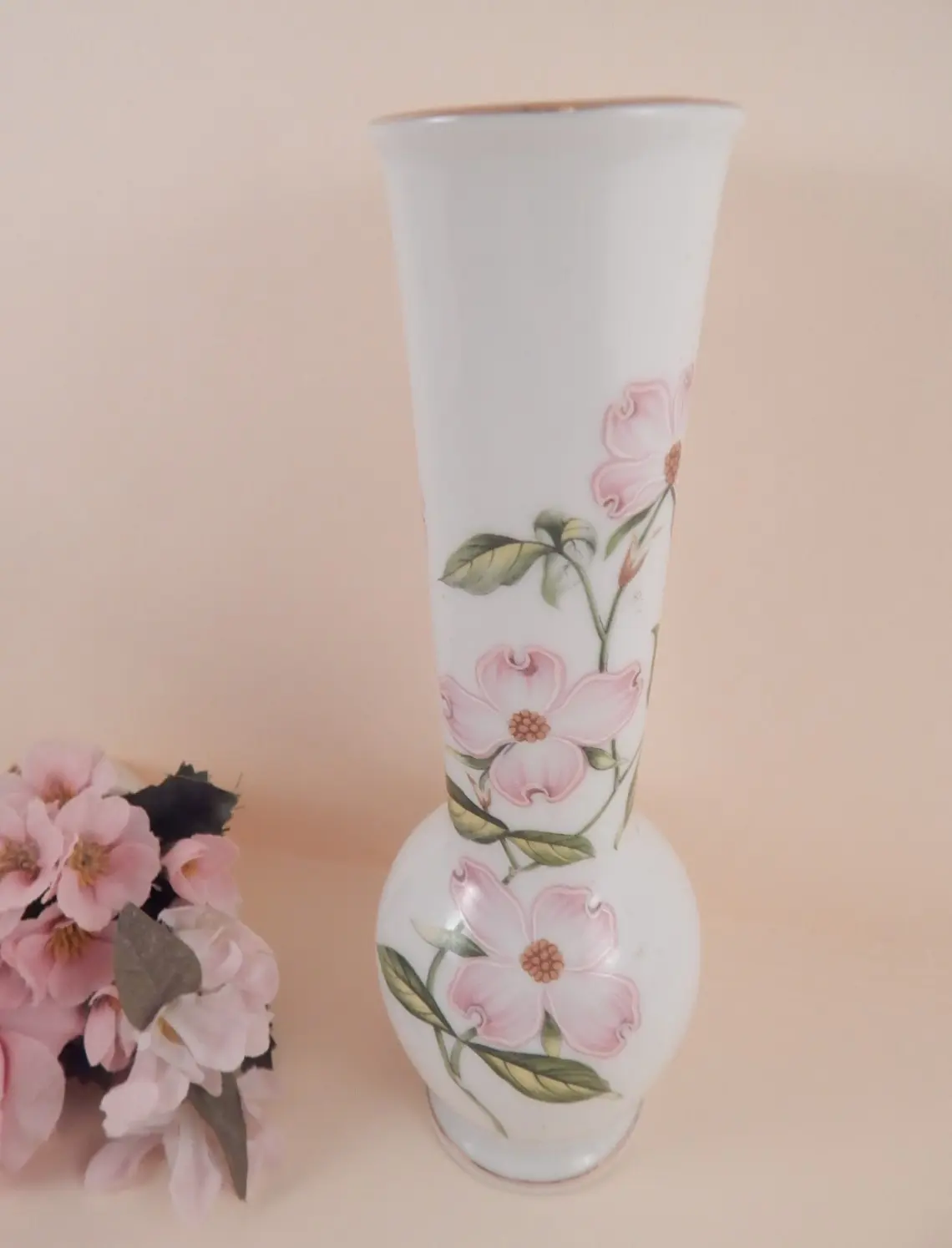 Bud Vase Pink Dogwood Design Flower Vase Vintage 1960s Lefton White Porcelain Home Decor Made in Japan