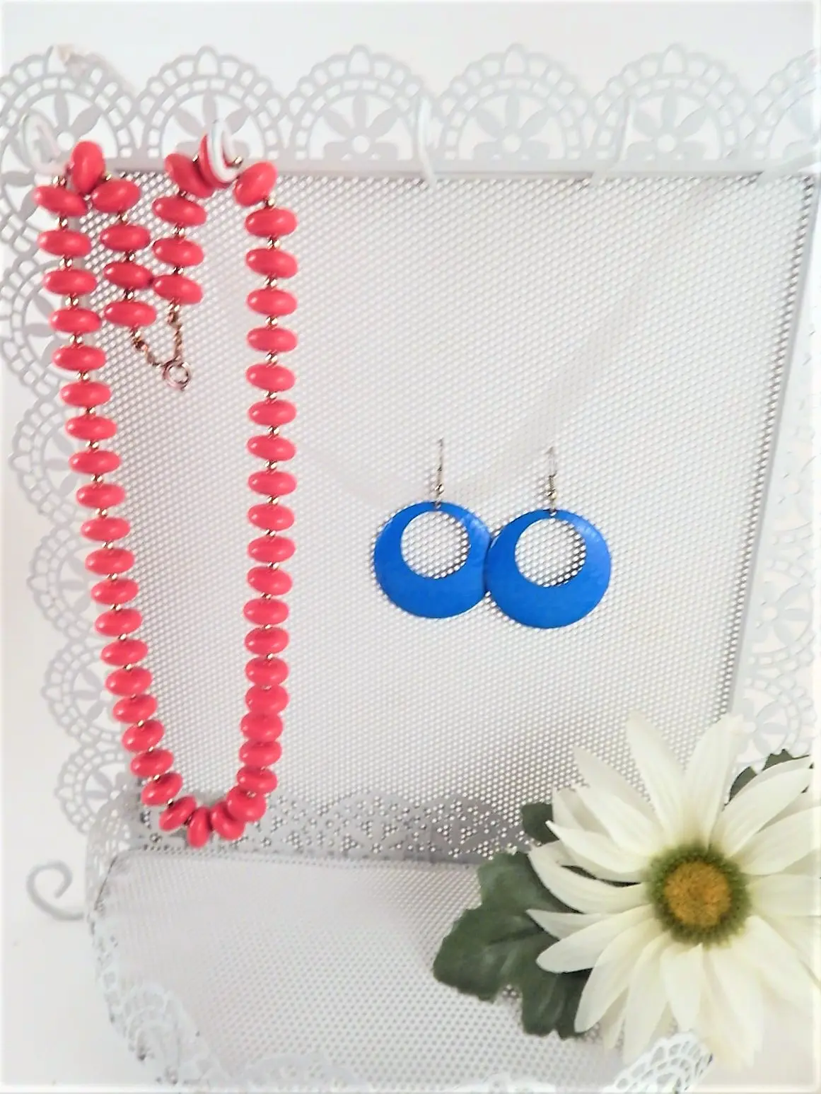jewelry rack. earring rack, earring holder, necklace hooks, jewelry storage, cottage chic, victorian, dresser accessory, vanity tray, wall hanging, white decor, girls bedroom, boudoir decor, gift for her