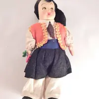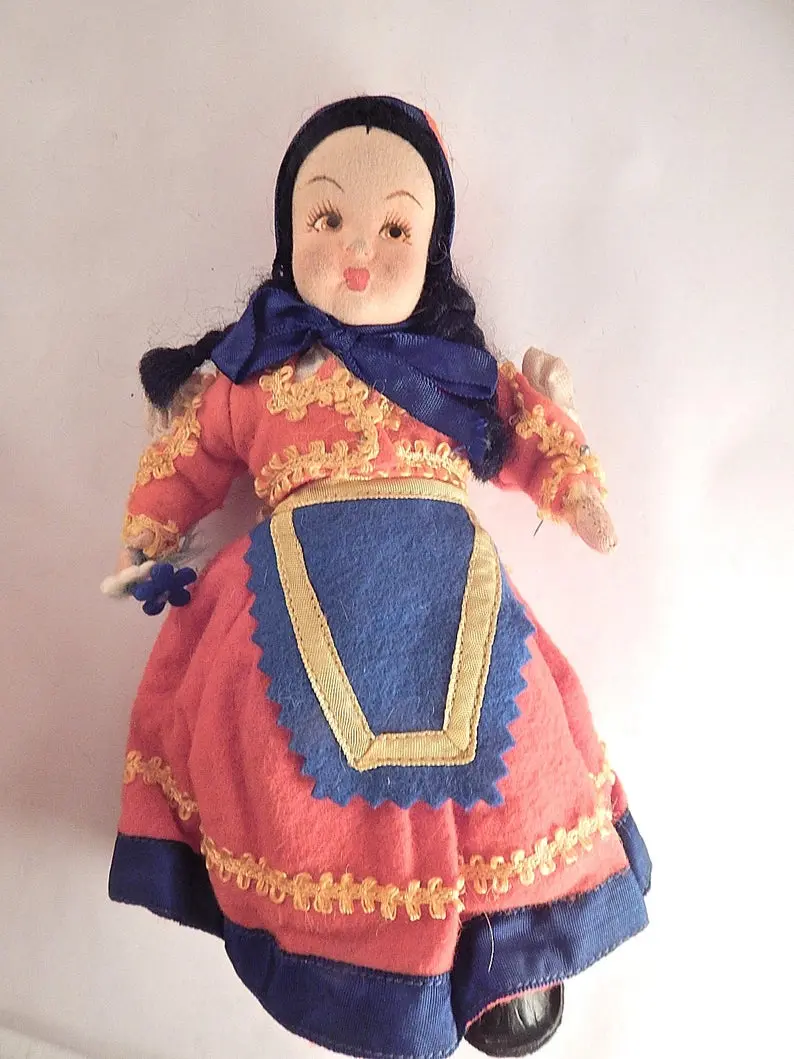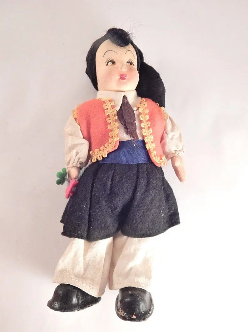 doll, girl doll, italian, boy girl dolls, stockinette, mask face, fabric doll, antique doll, 8 inch doll, collectible, display doll,