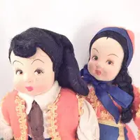 Boy and Girl Dolls Vintage 1930s 8" Fabric Stockinette Felt Mask Face Italian Heritage Old World Europe Collectible