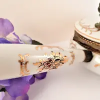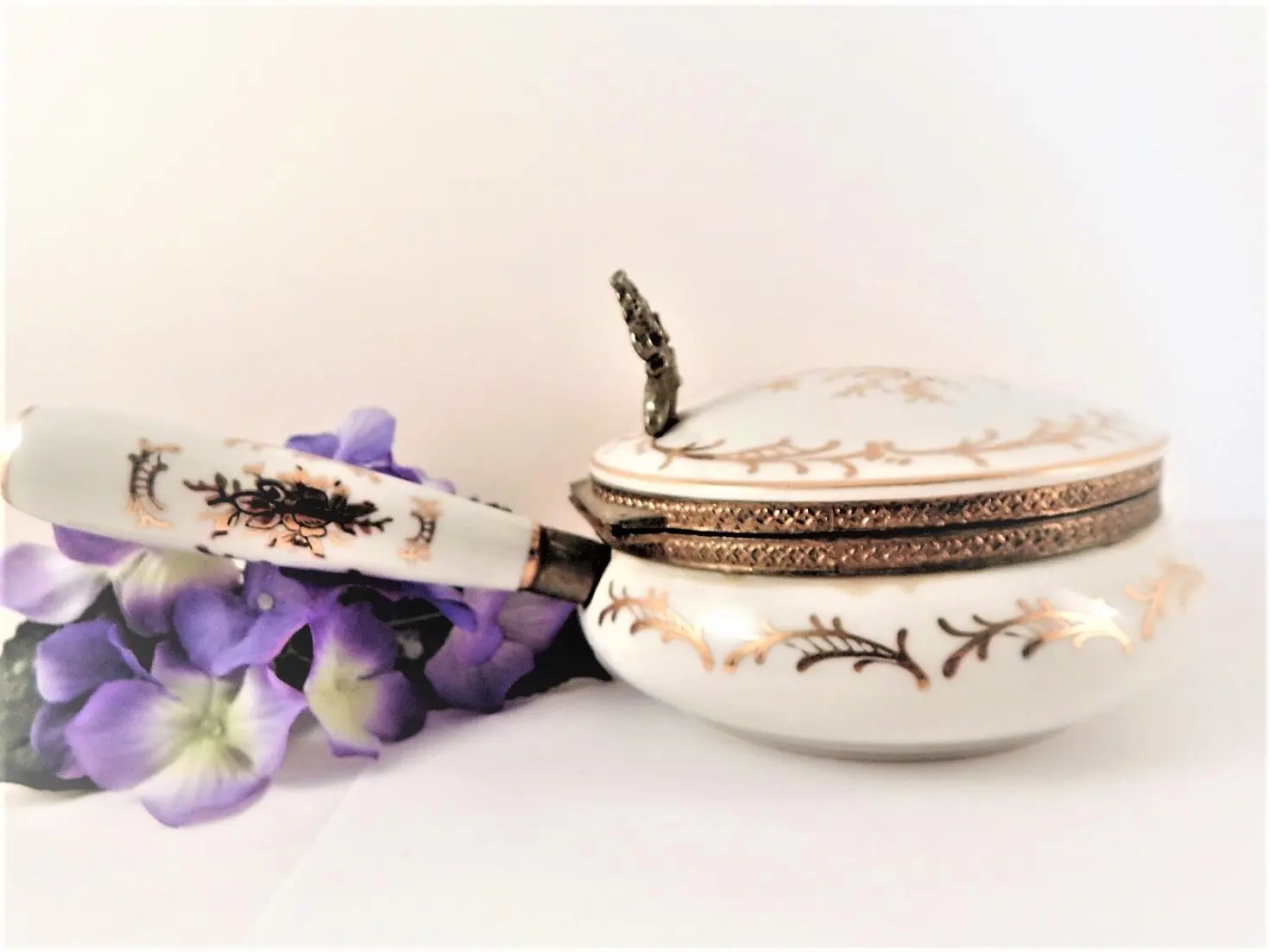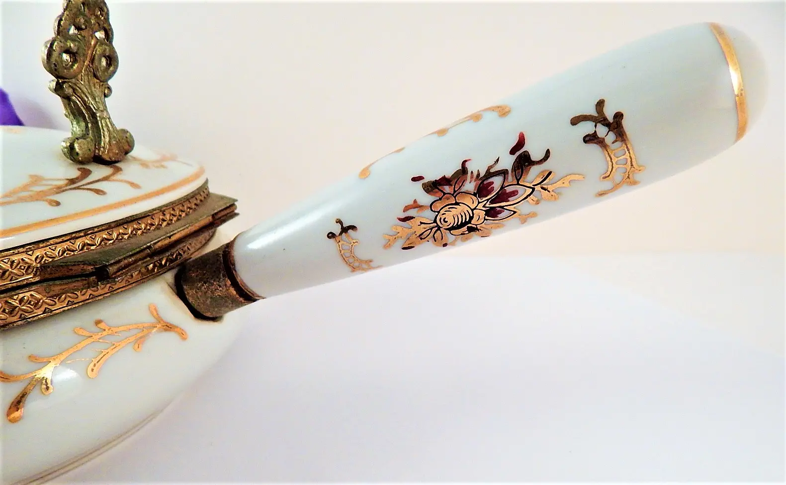 Tags: vintage, silent butler, crumb catcher, ash collector, table accessory, isco, handpainted, porcelain, made in japan, 1950s formal table, fine dining, hollywood regency, mid century, white, gold, dining accessory
