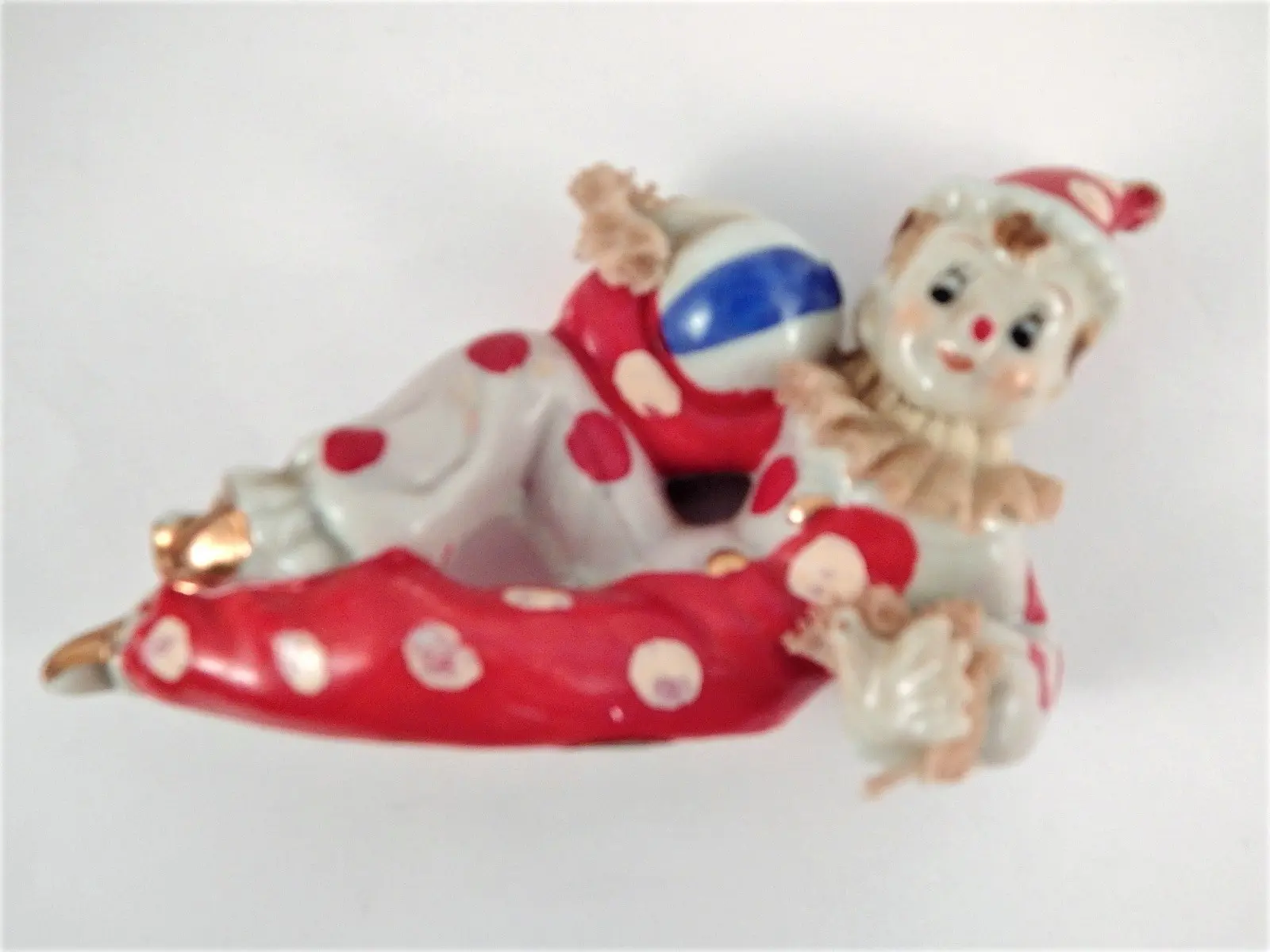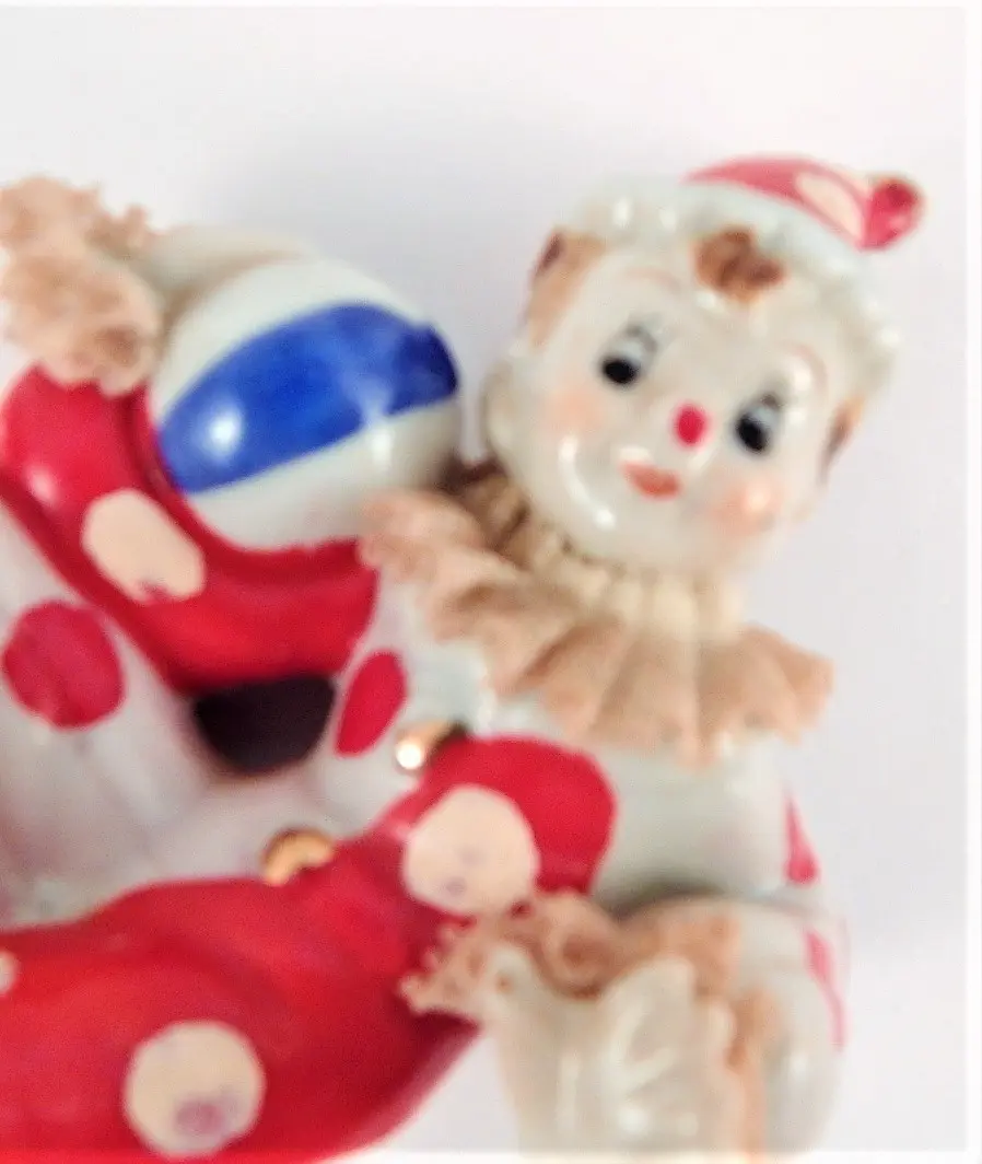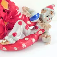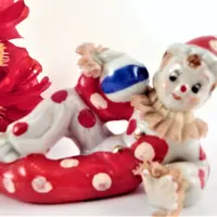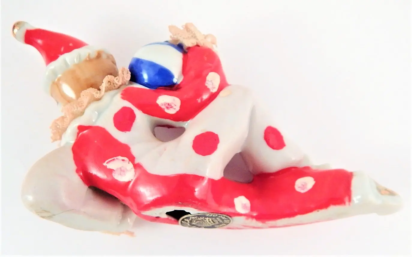 Tags: clown, figurine, tramp, hobo, polka dot, red, boy clown, vintage, porcelain, porcelain lace, wales japan, wales china clown, mid century, collectible, knick knack, kitsch, clown collector