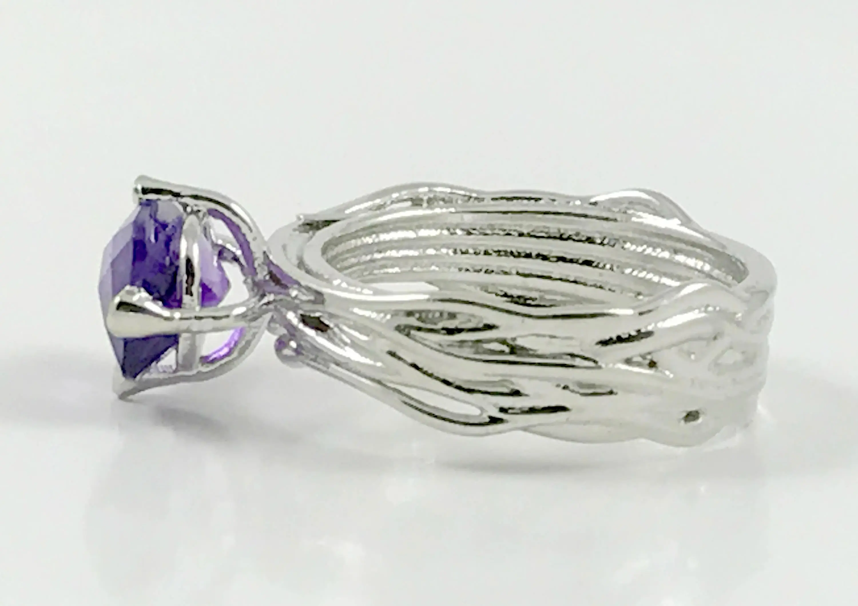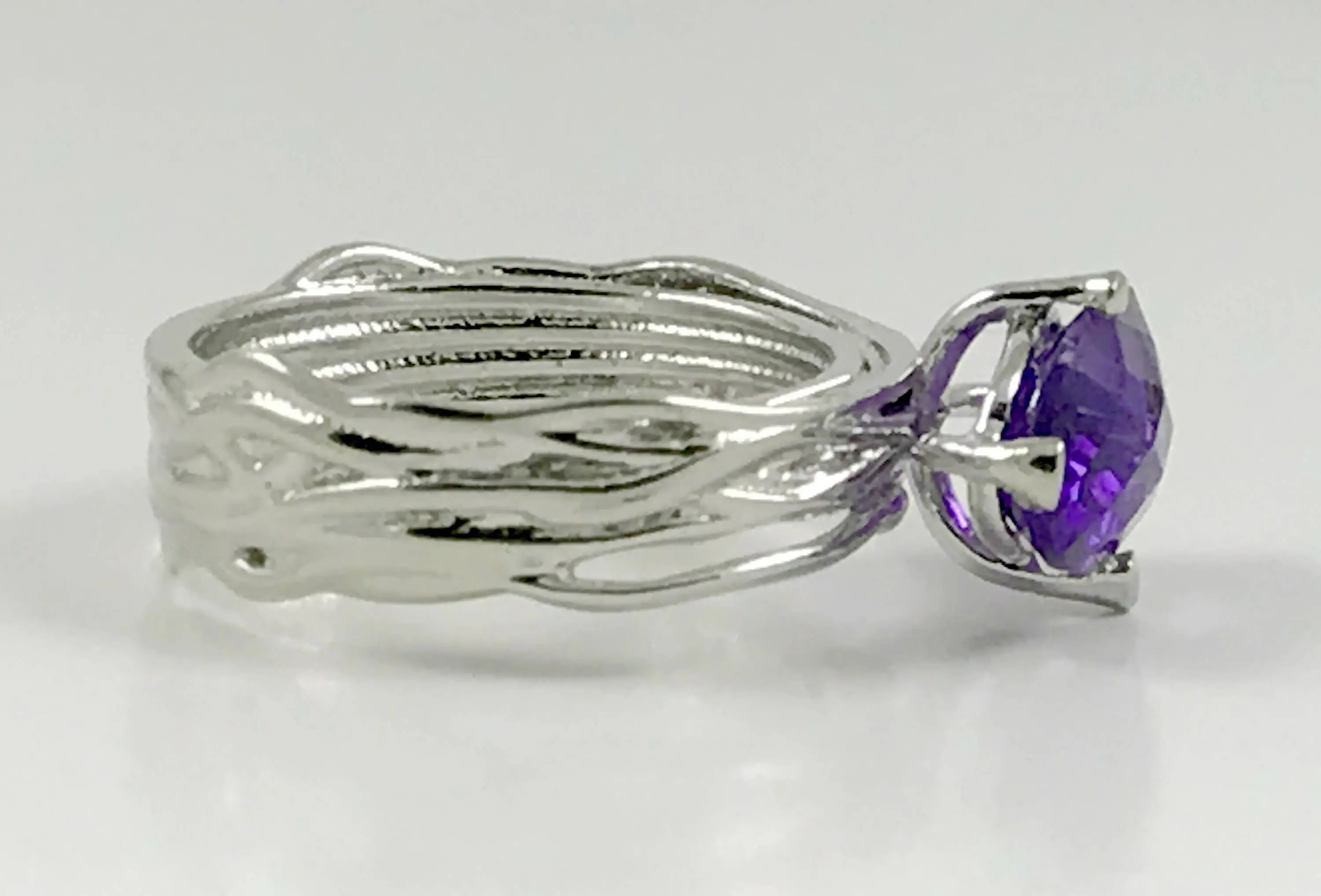 PURPLE AMETHYST RING , February birthstone , Checkers Cut , Brilliant cut Amethyst,Valentine's day Gift, lovely friendship band .