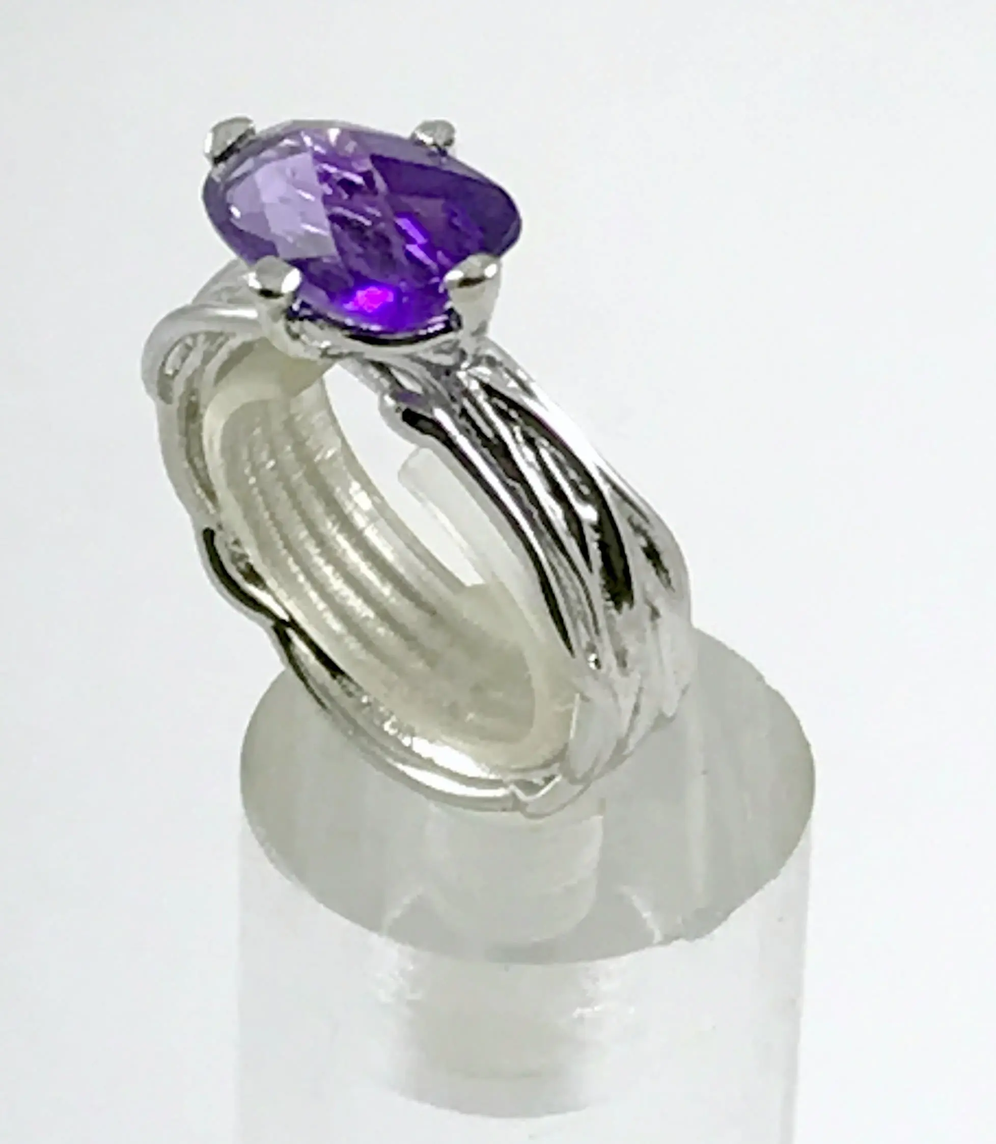 Gorgeous Sterling Silver Ring in a beautiful Purple Amethyst, which makes a lovely birthstone ring for those February Birthday Gals.