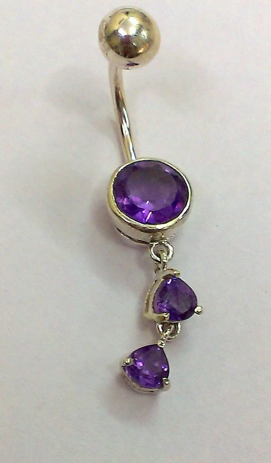 wow design of 925 sterling silver belly ring studded with African Amethyst......in bezel set ......