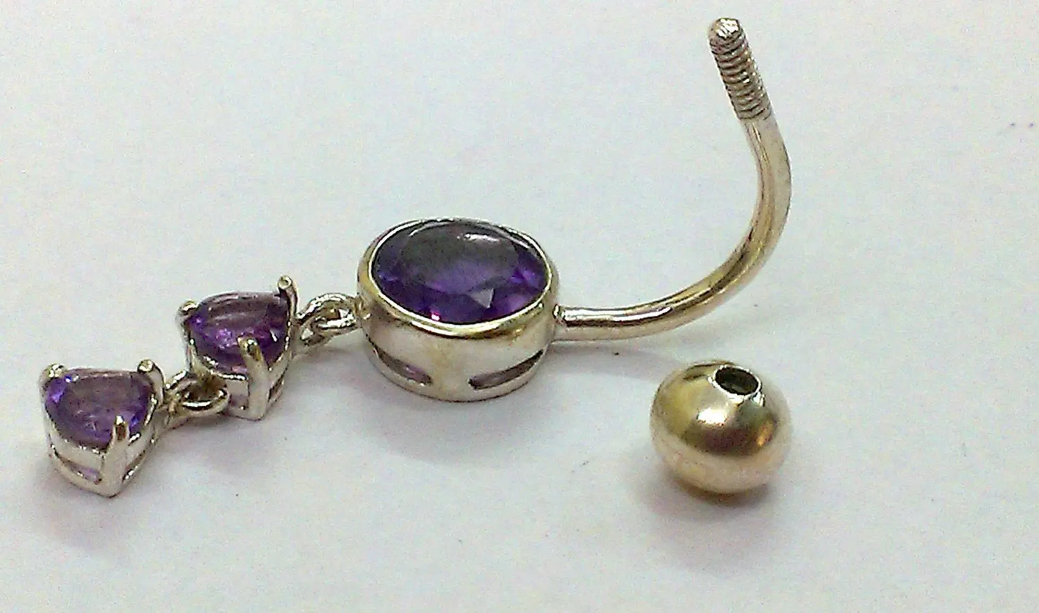 wow design and beautifully handcrafted 925 sterling silver Belly ring studded with African Amethyst......in bezel set ......