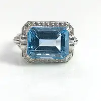 Natural BLUE TOPAZ DIAMONDS Ring ,December Birthstone ,Hand Forged Ring ,12 x 16 mm Octagon,Valentine Gift.