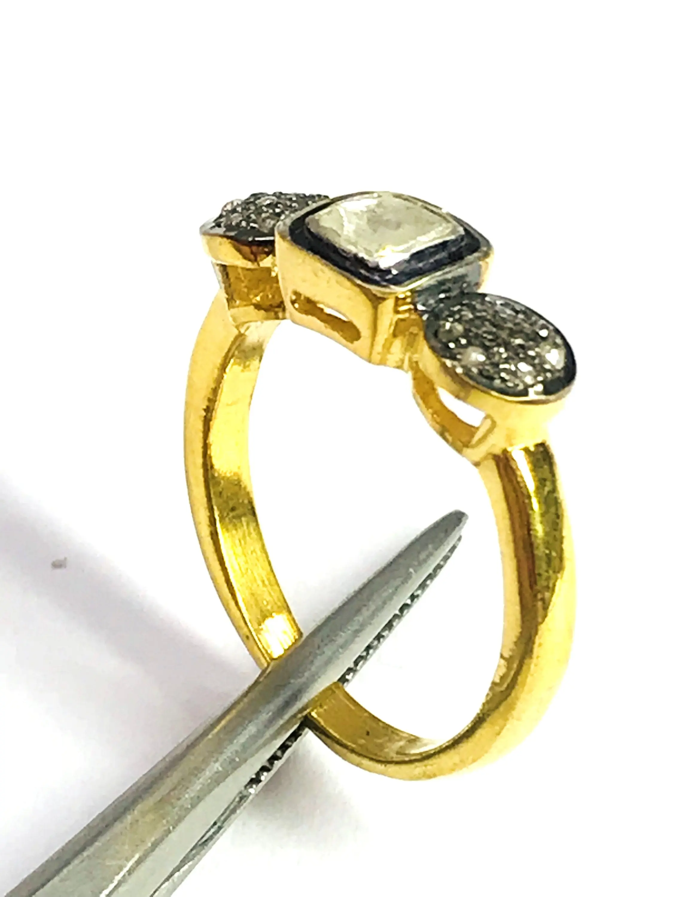 NATURAL DIAMONDS RING in sterling silver, antique silver jewelry , victorian style , women ring .......... ,vintage jewelry collection studded with 100% natural Rose cut diamonds in pave set......and black rhodium and gold plated plated......................