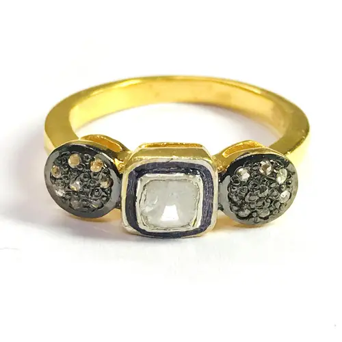 ROSE CUT DIAMONDS Ring ,Antique silver jewelry ,Victorian style ,Women Engagement Ring ,Valentine Gift for Her