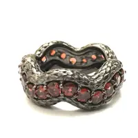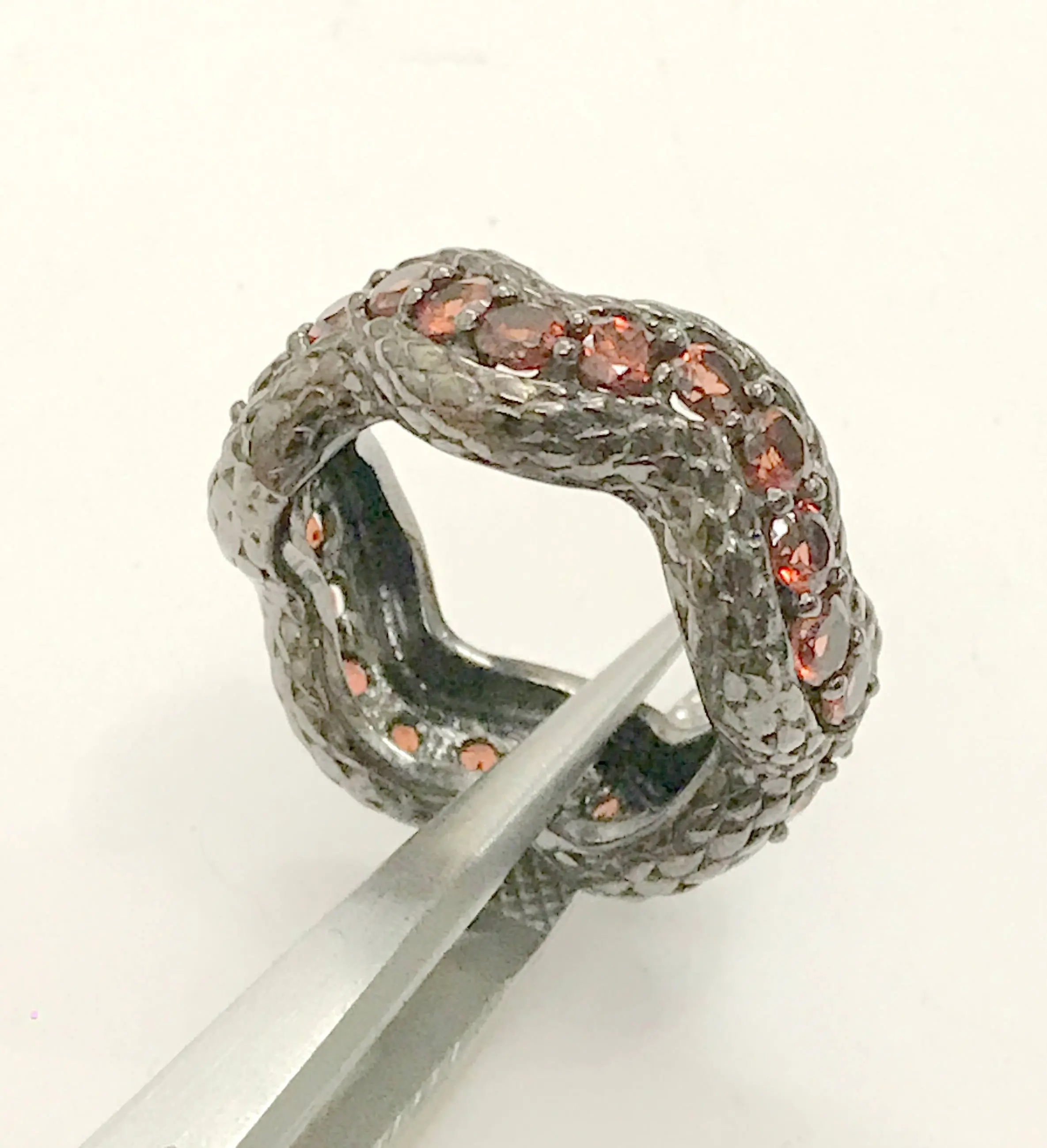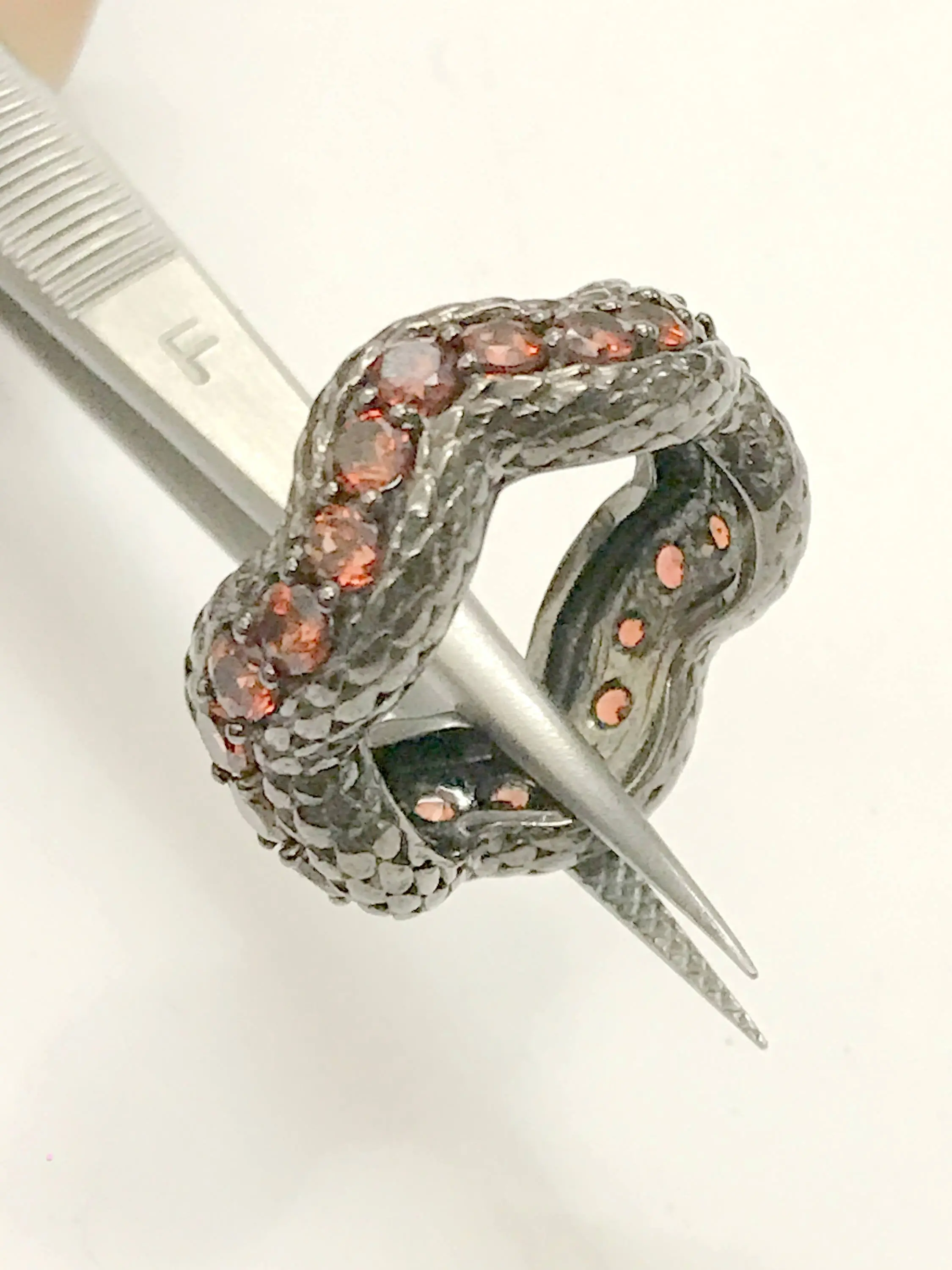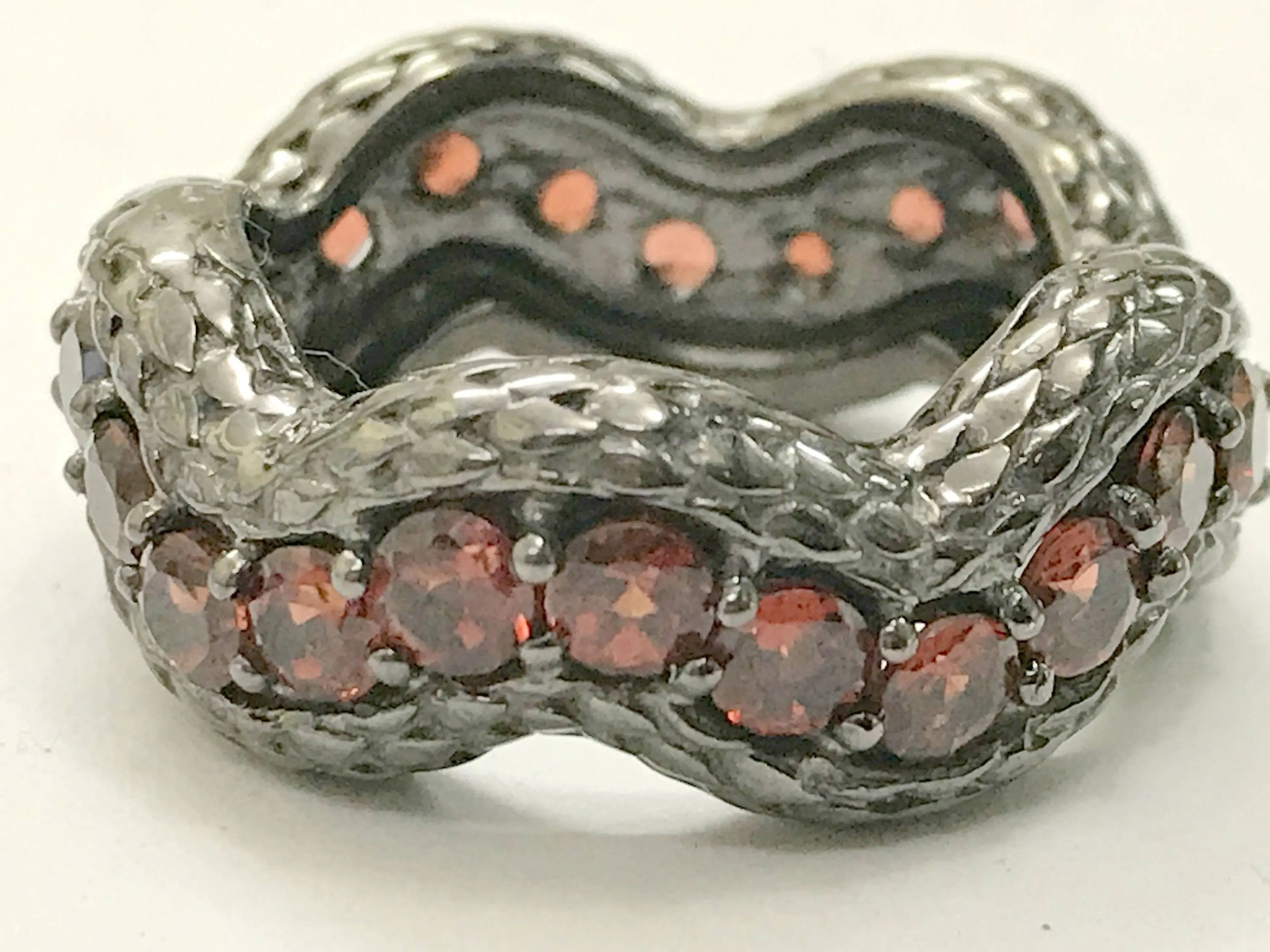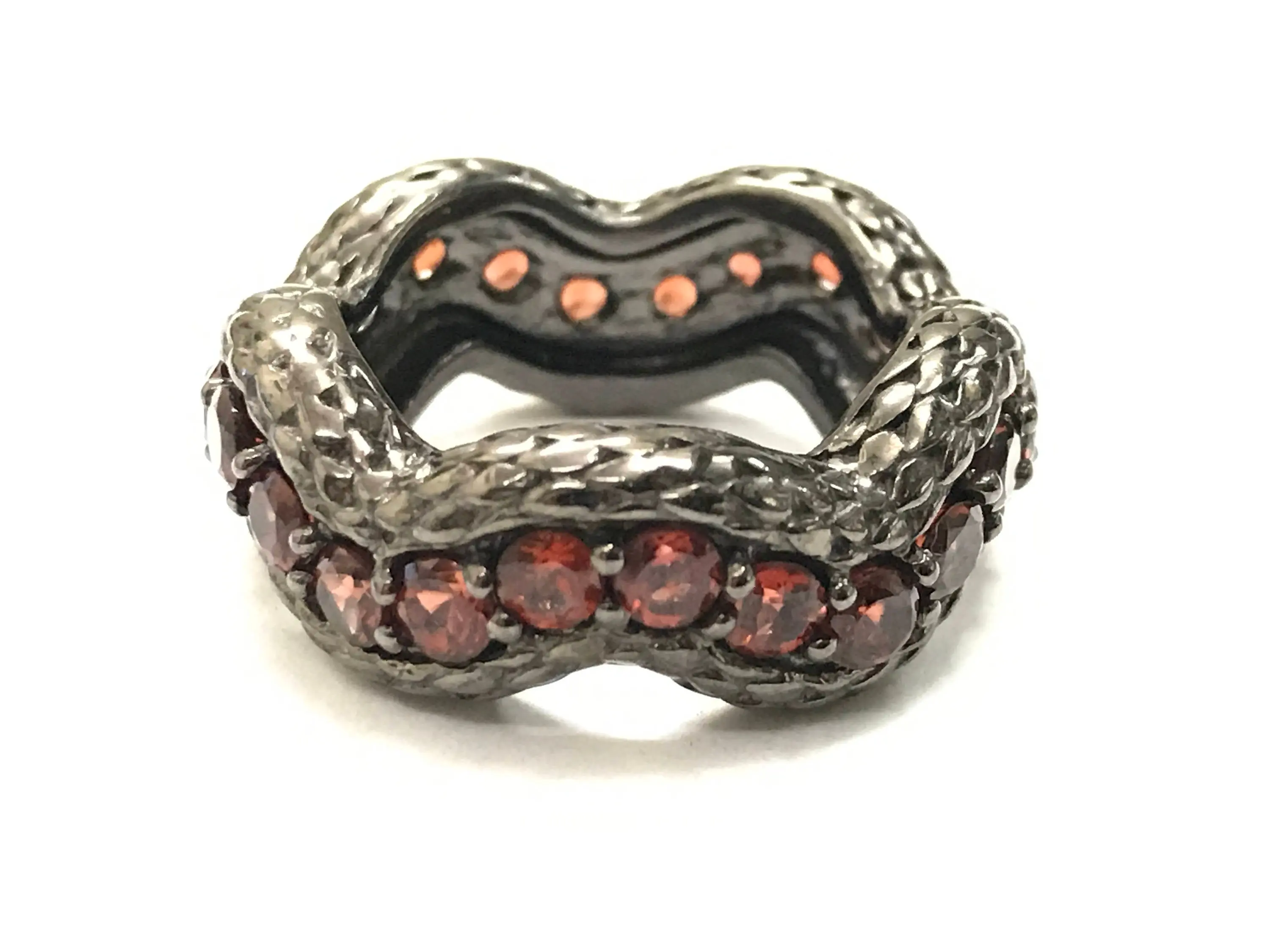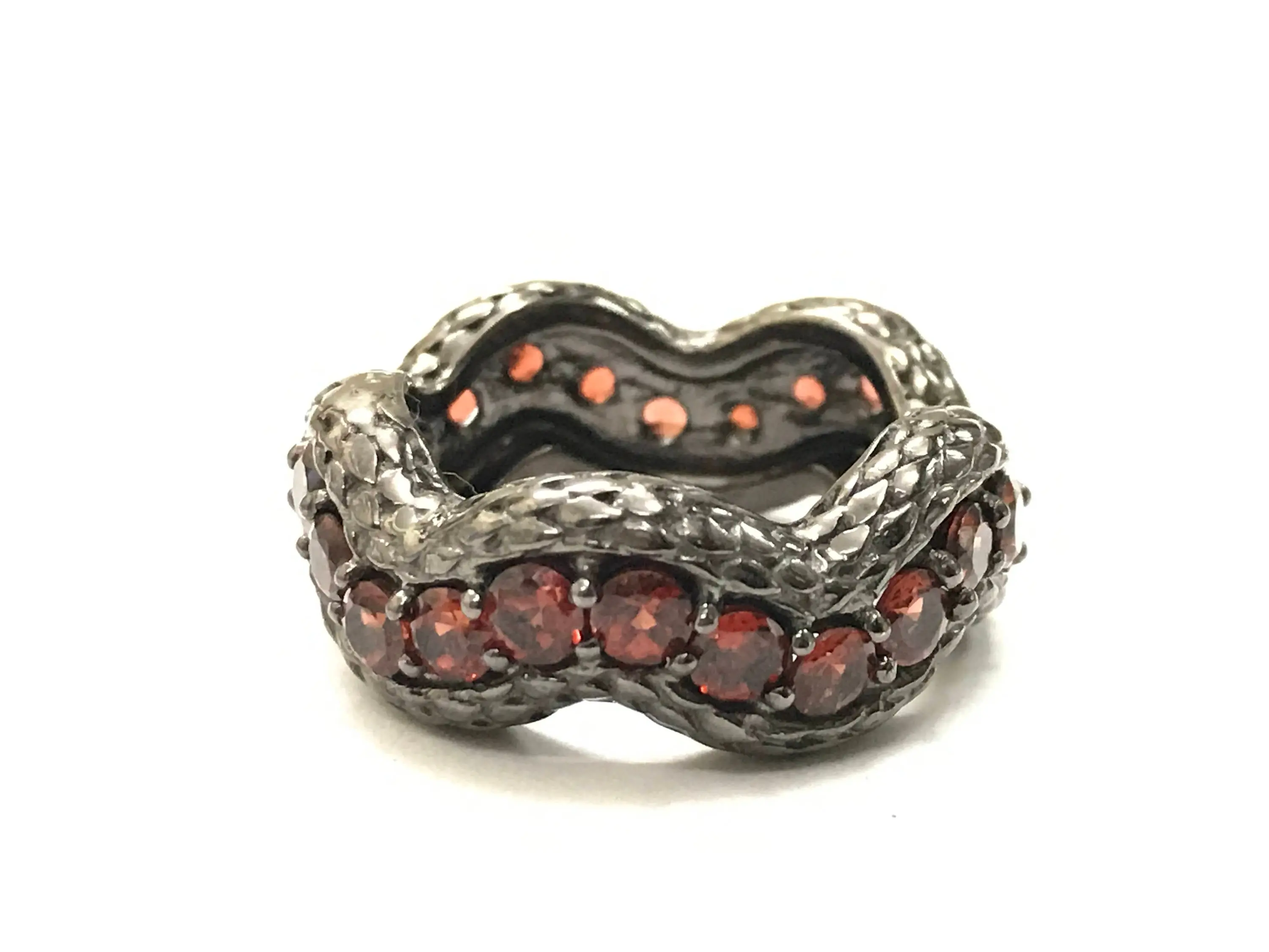RED GARNET SNAKE Textured Unisex Engagement Band, Mossambic Garnet ,Black Rhodium , Sterling Silver Ring , Perfect Gift For Loved Ones.....