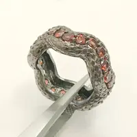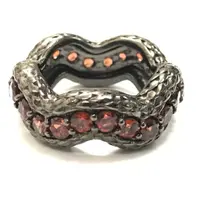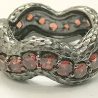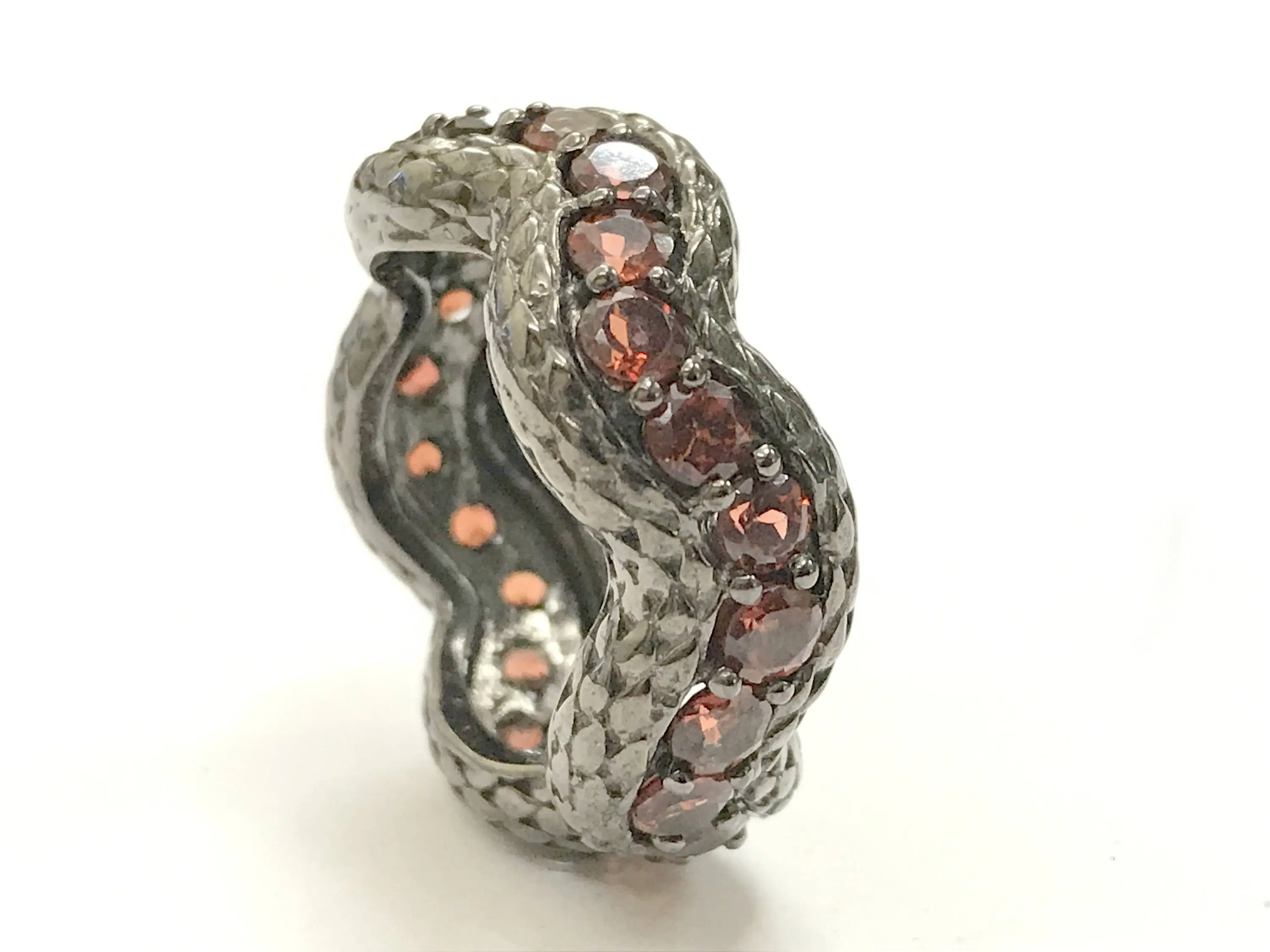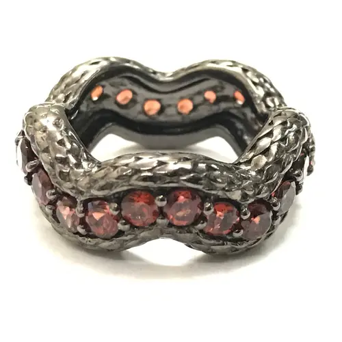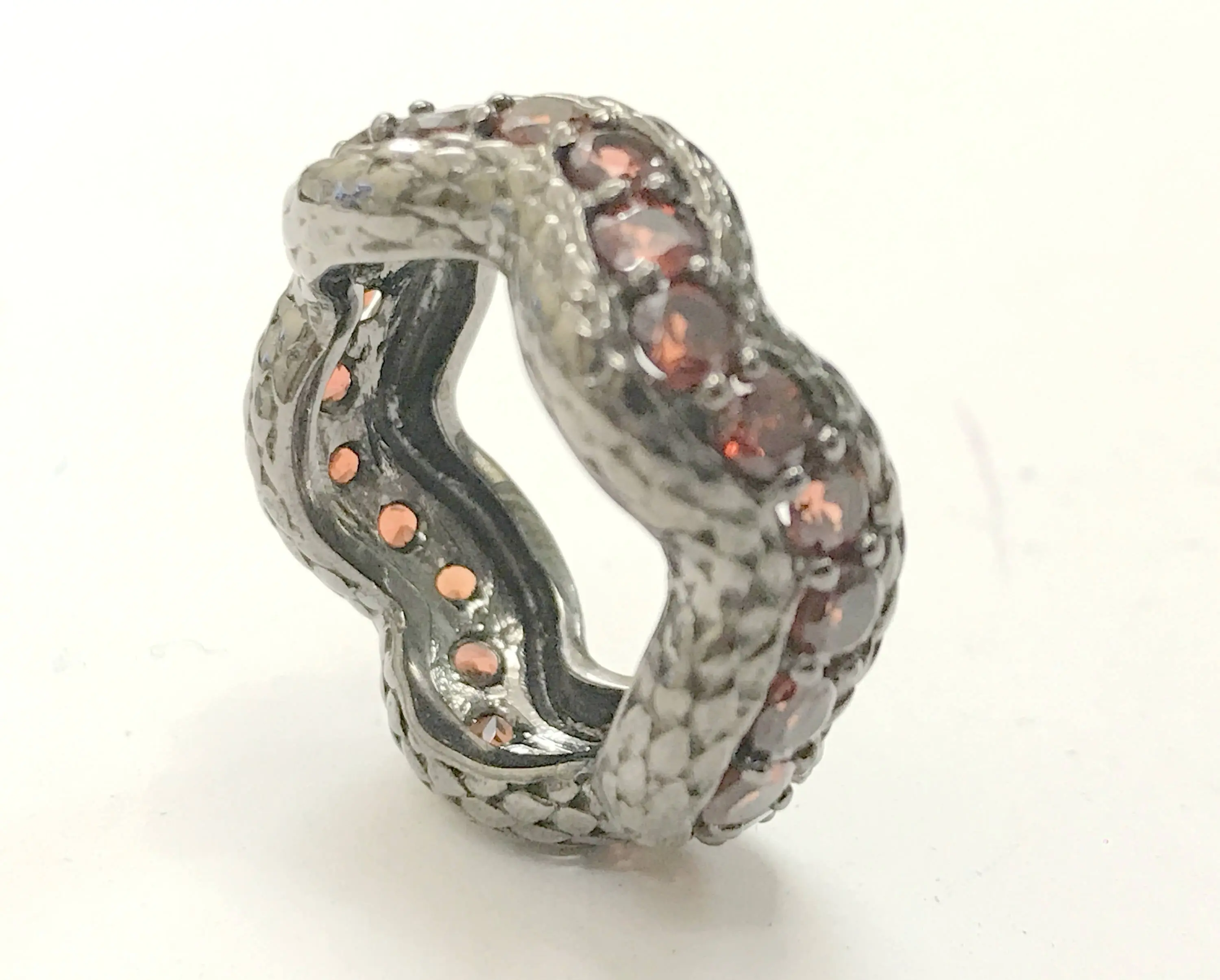 RED GARNET SNAKE Textured Unisex Ring,Size Us 7 ,Natural Mossambic Garnet ,Black Rhodium , Silver Ring , Perfect Gift For Loved Ones.....