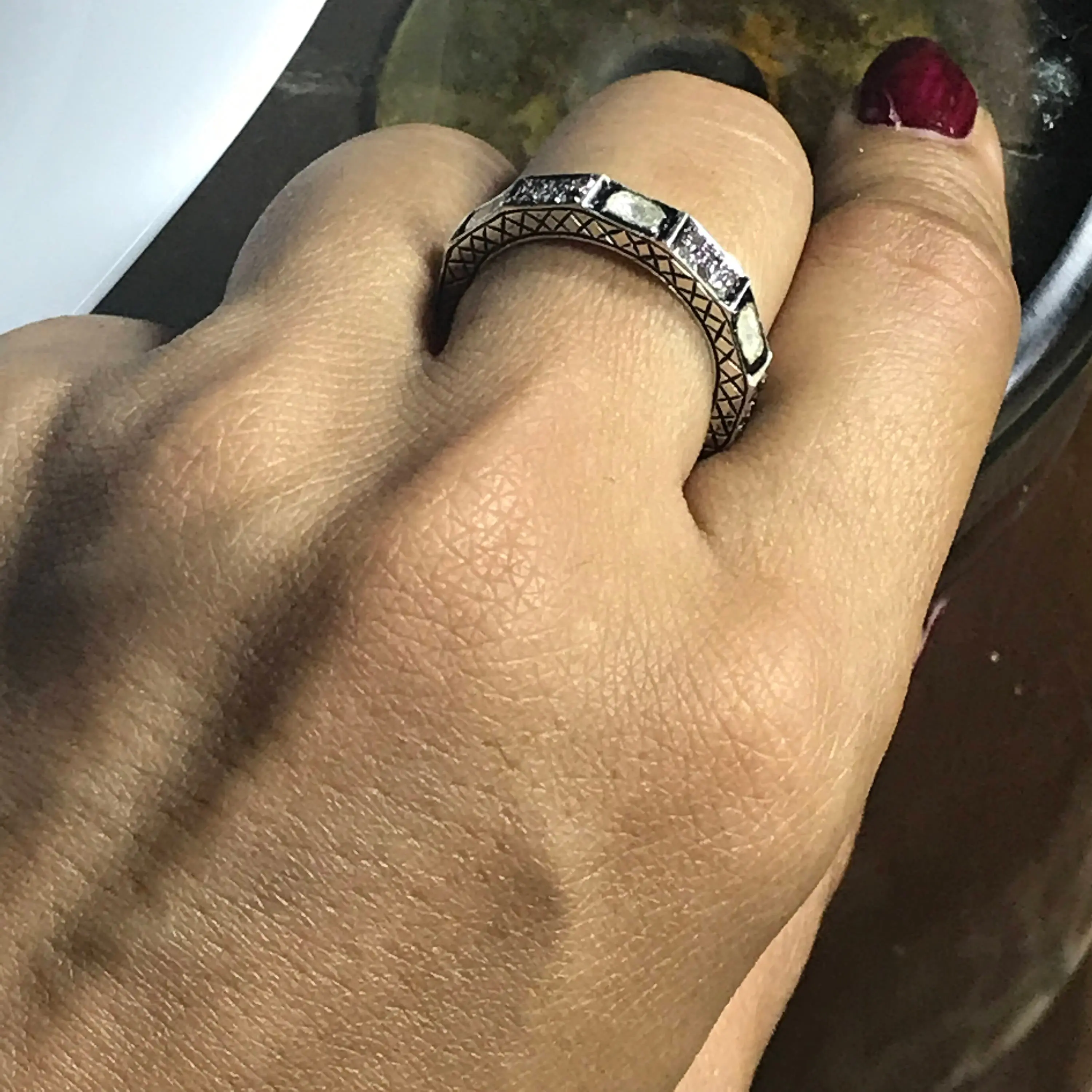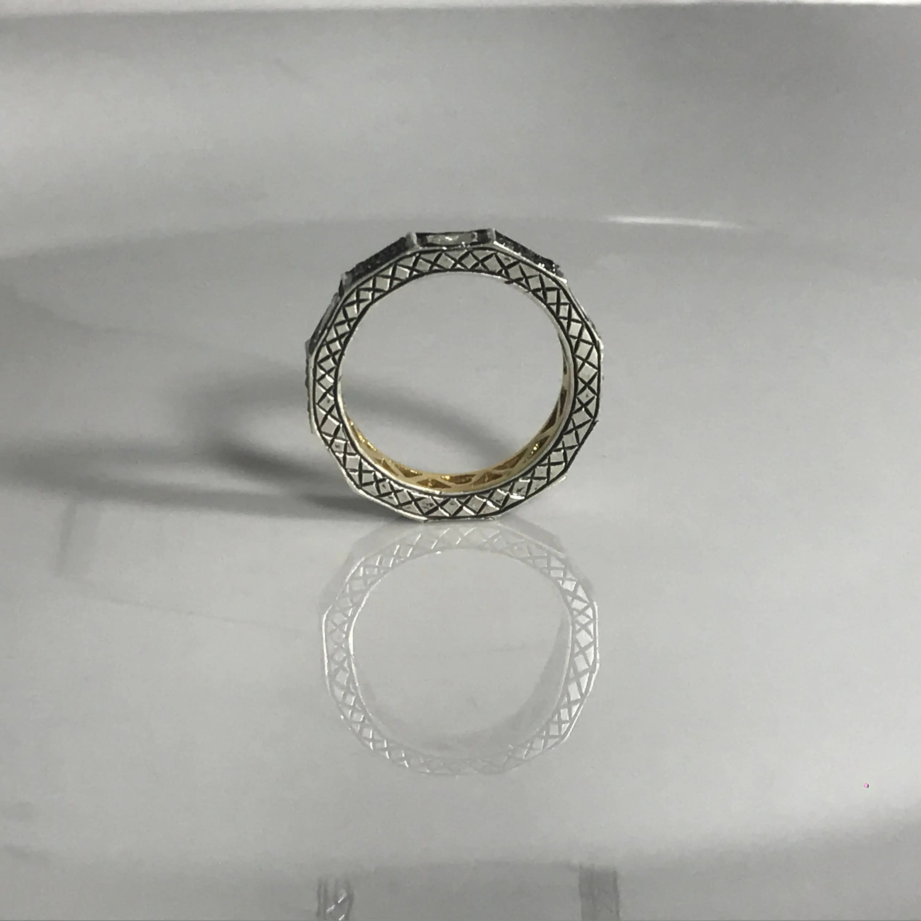 ETERNITY DIAMONDS RINGS, Antique Sterling silver, Rose Cut Diamonds -vintage band,black rhodium ring,Vintage wedding band