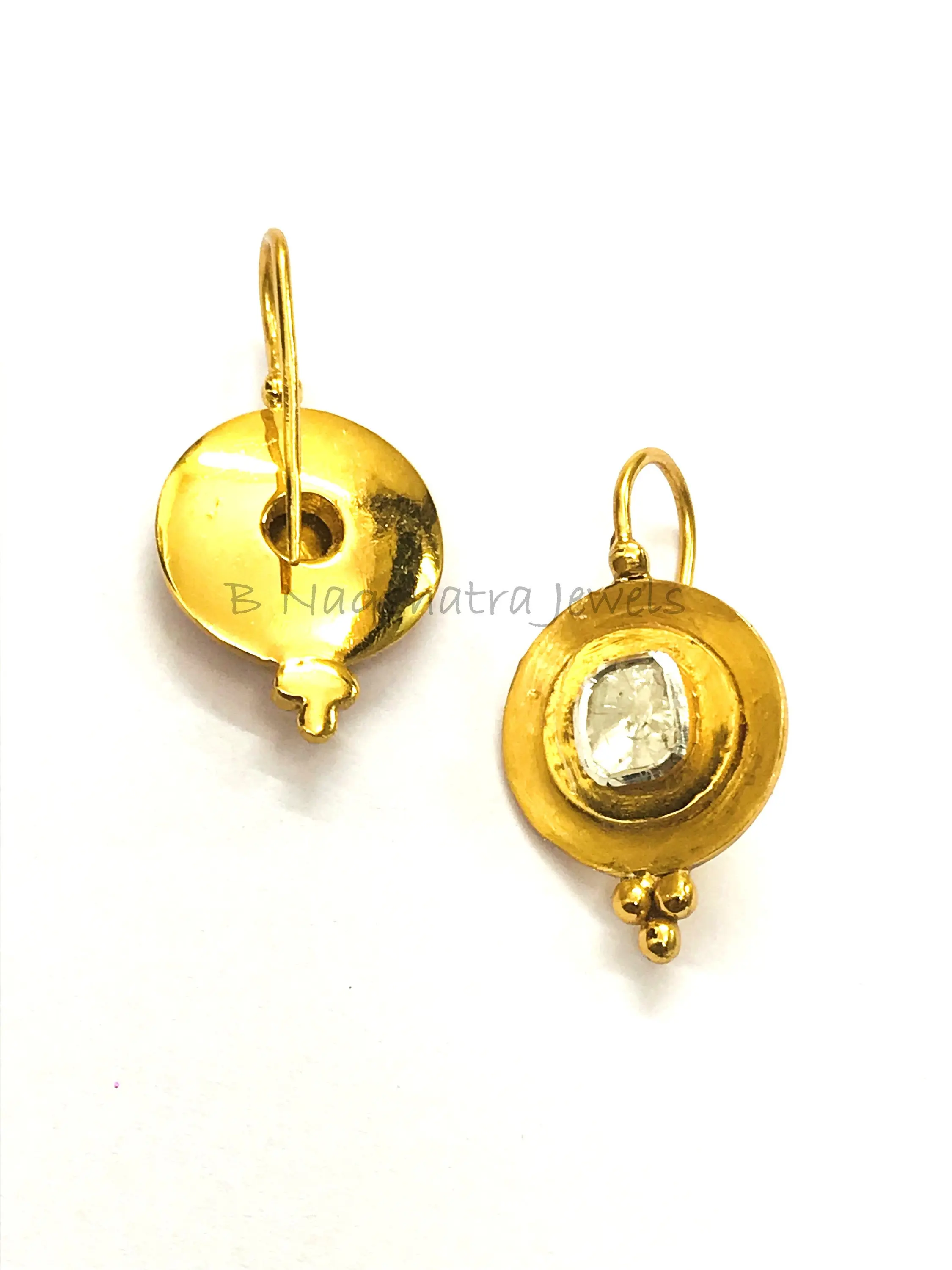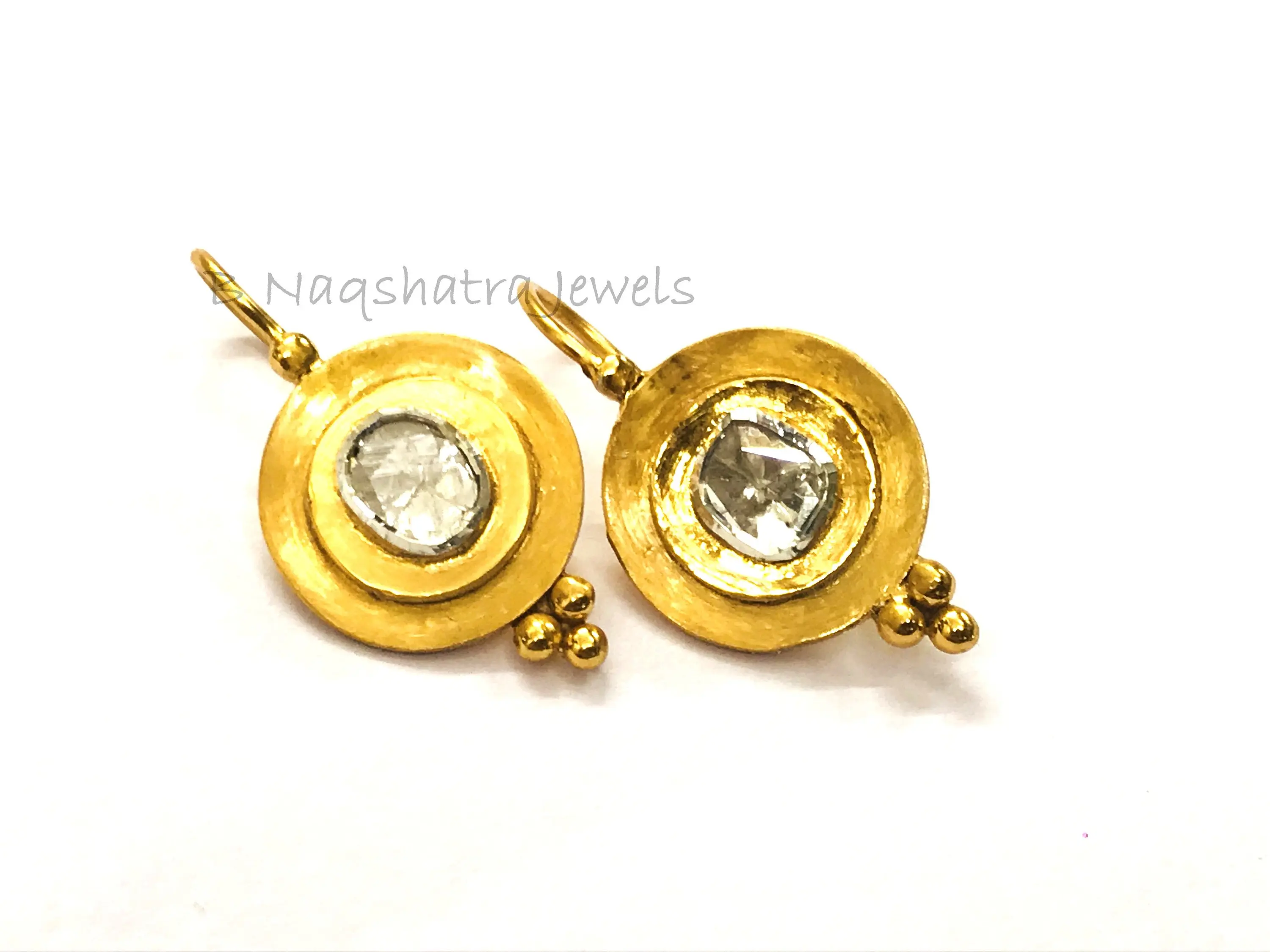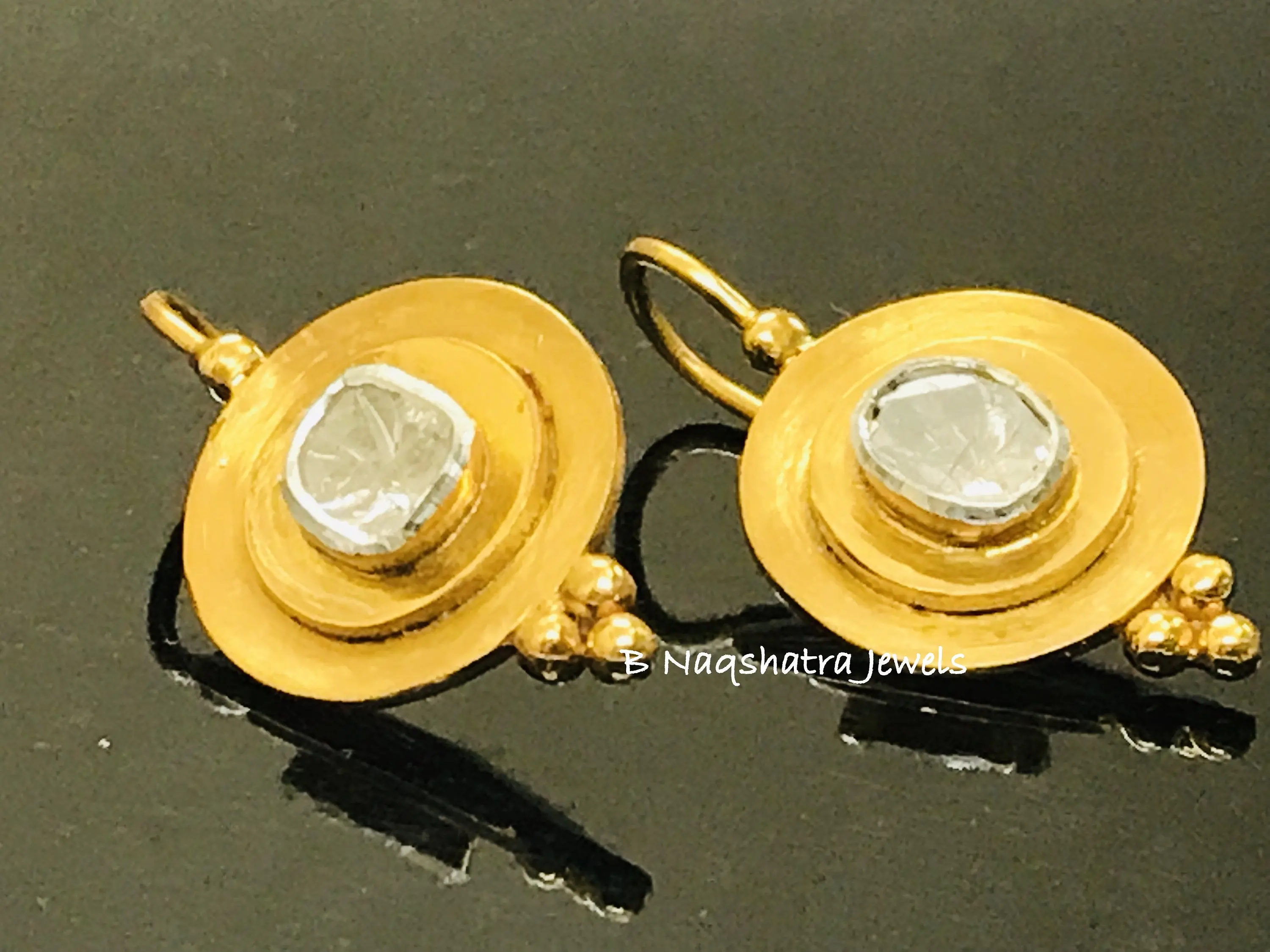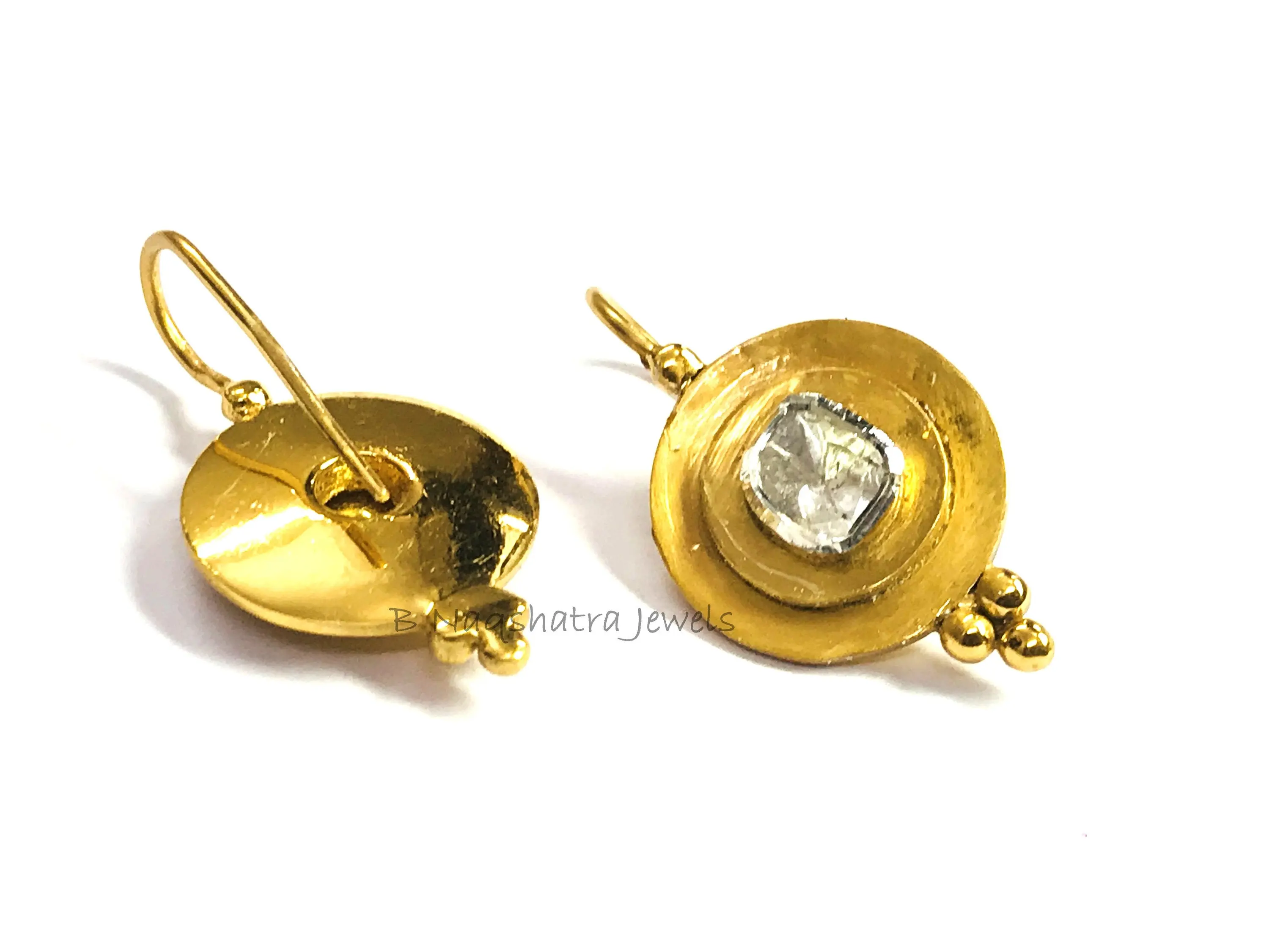 DIAMOND EARRINGS -Sterling silver,Rose Cut Diamonds, Dangle Earrings ,Vermeil Gold Earring ,Polki Diamonds Wedding Gift, Bridal Shower Gift