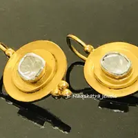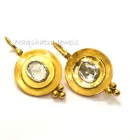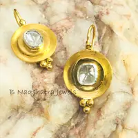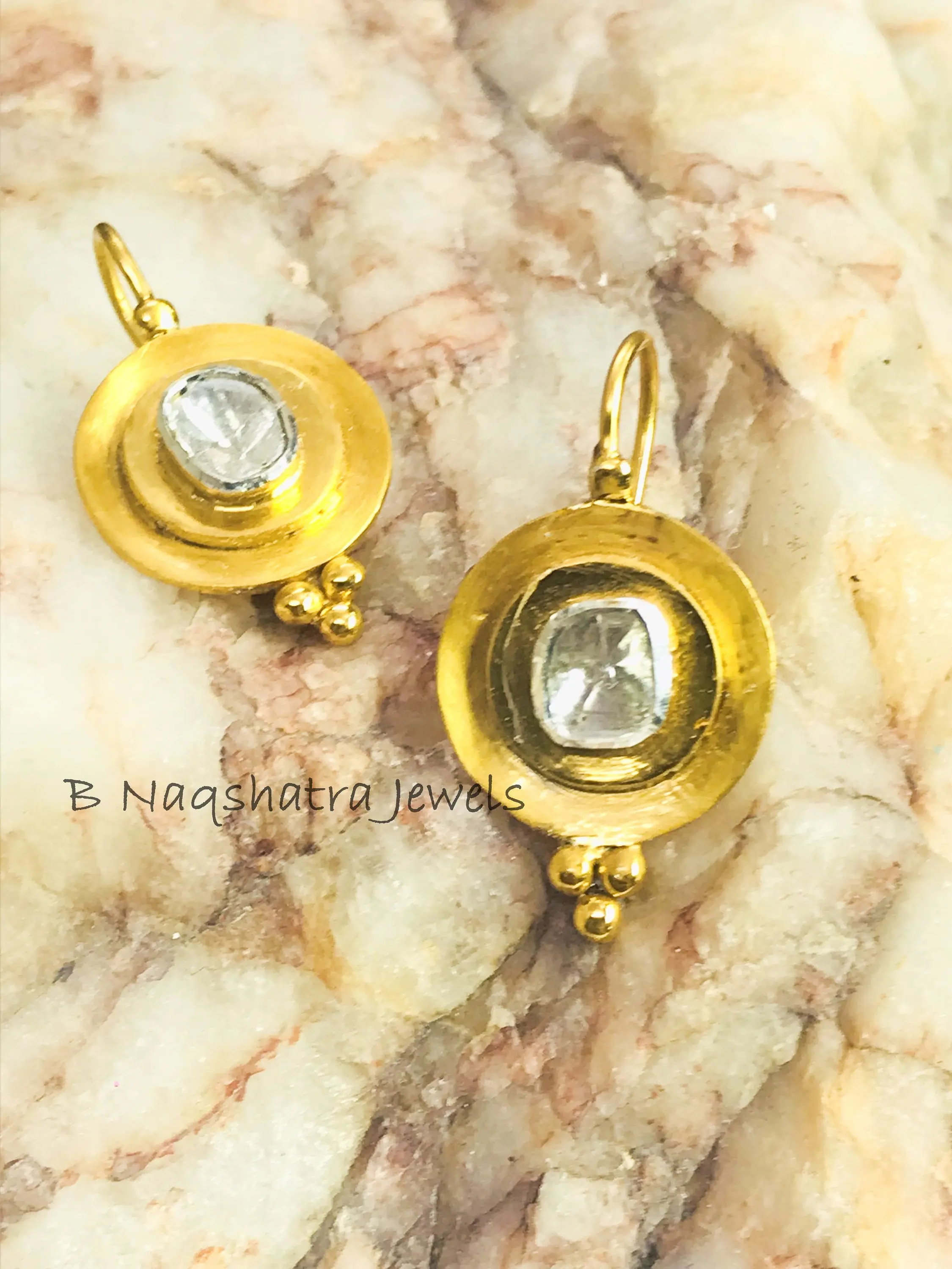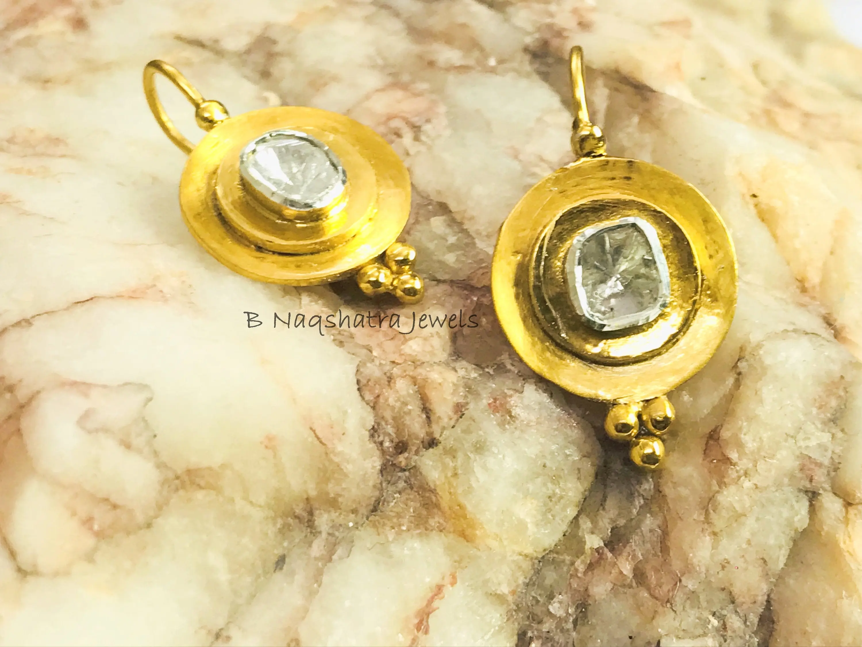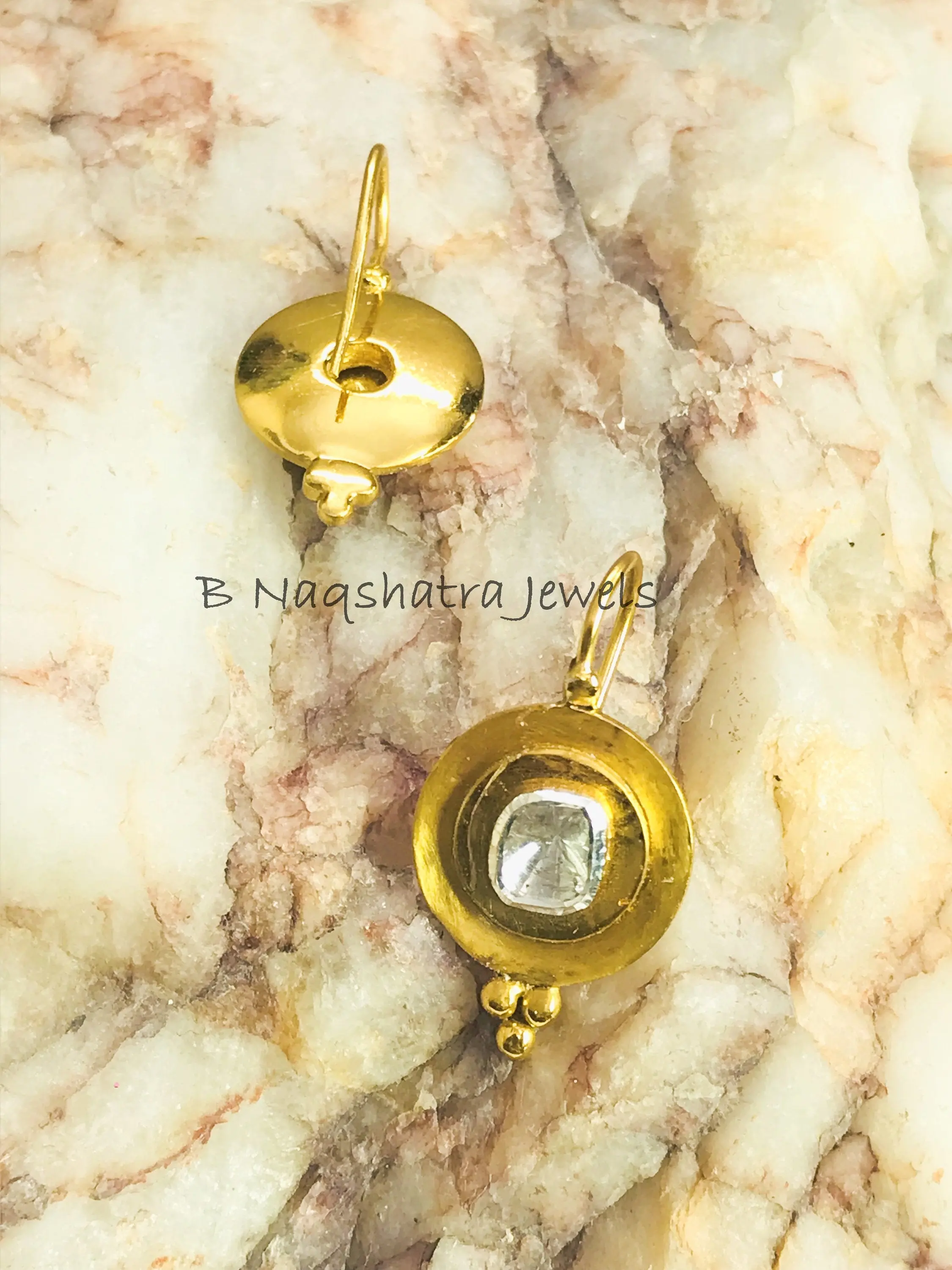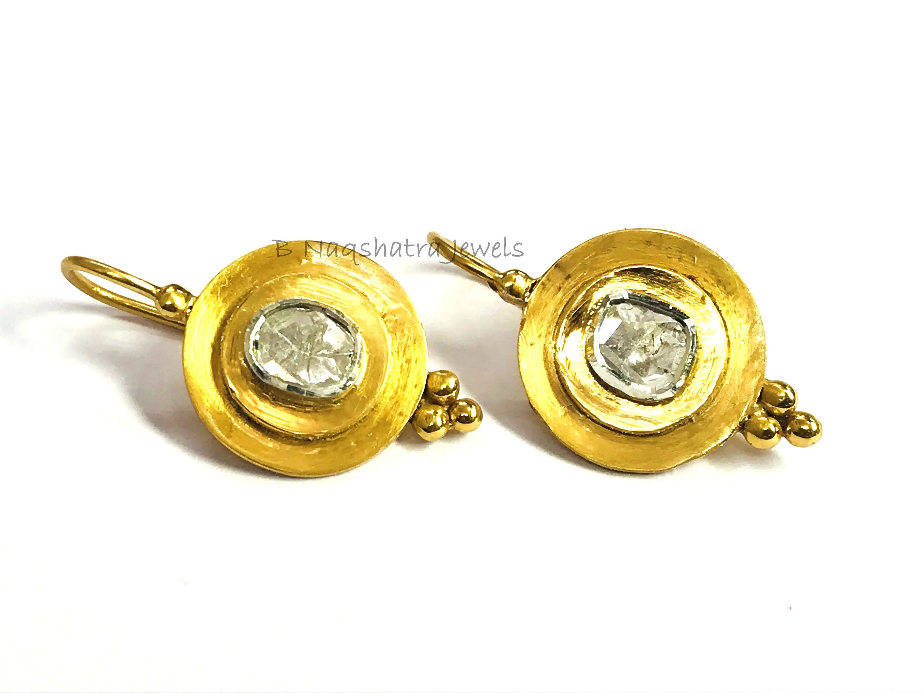DIAMOND EARRINGS -Sterling silver,Rose Cut Diamonds, Dangle Earrings ,Vermeil Gold Earring ,Polki Diamonds Wedding Gift, Bridal Shower Gift