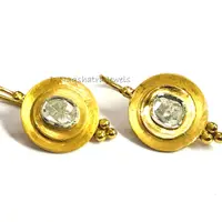 DIAMOND HOOP EARRINGS -Sterling silver,Rose Cut Diamonds, Vermeil Gold Earring-1 Micron Gold plating ,Wedding Gift, Bridal Shower Gift ....
