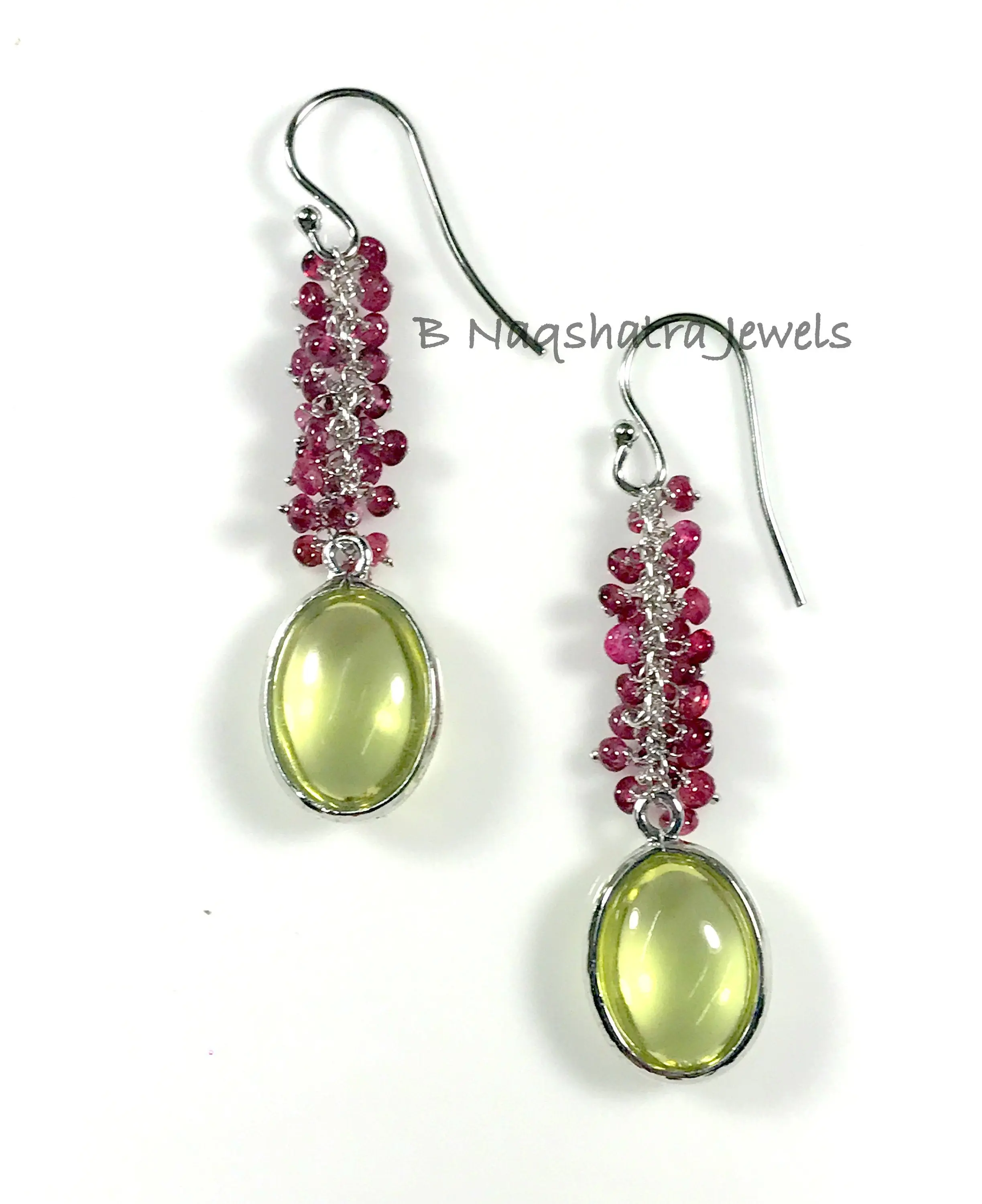 RUBY LEMON TOPAZ BEADED EARRINGS IN 925 STERLING SILVER ............DROP N DANGLE EARRINGS