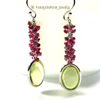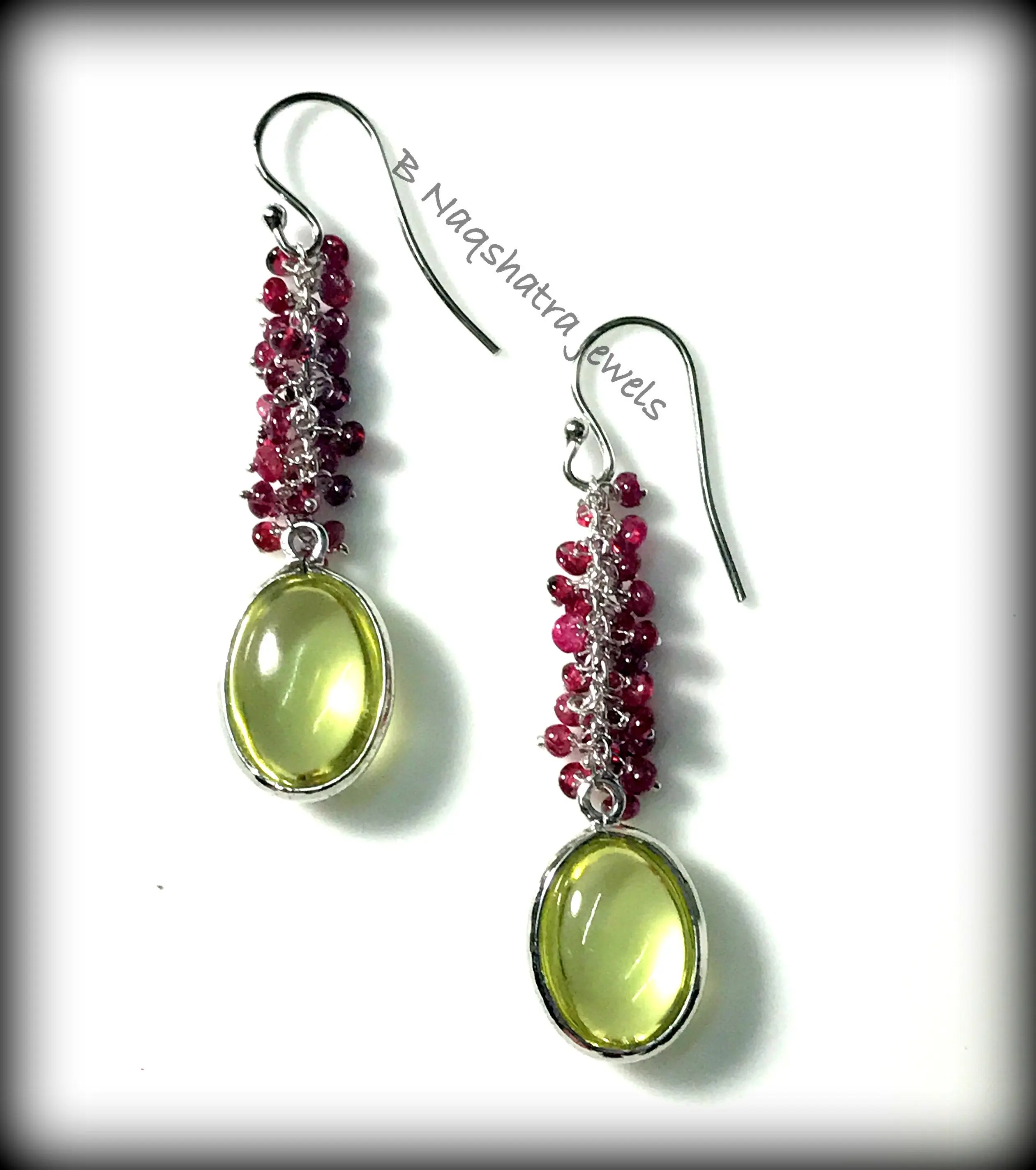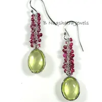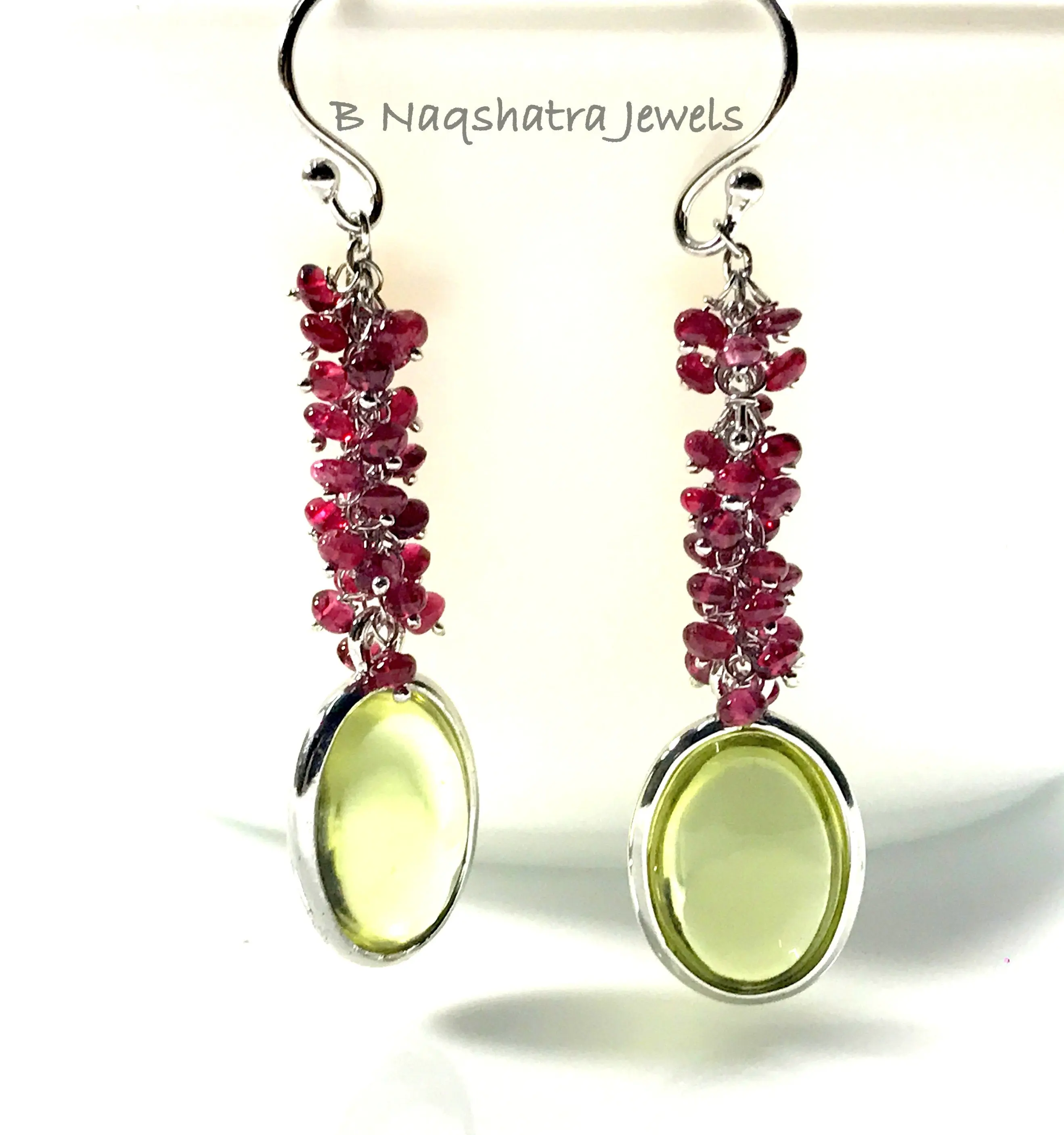 92.5 sterling sliver LEMON TOPAZ & RUBY BEADS dangle and drop earrings .....good for evening wear.......