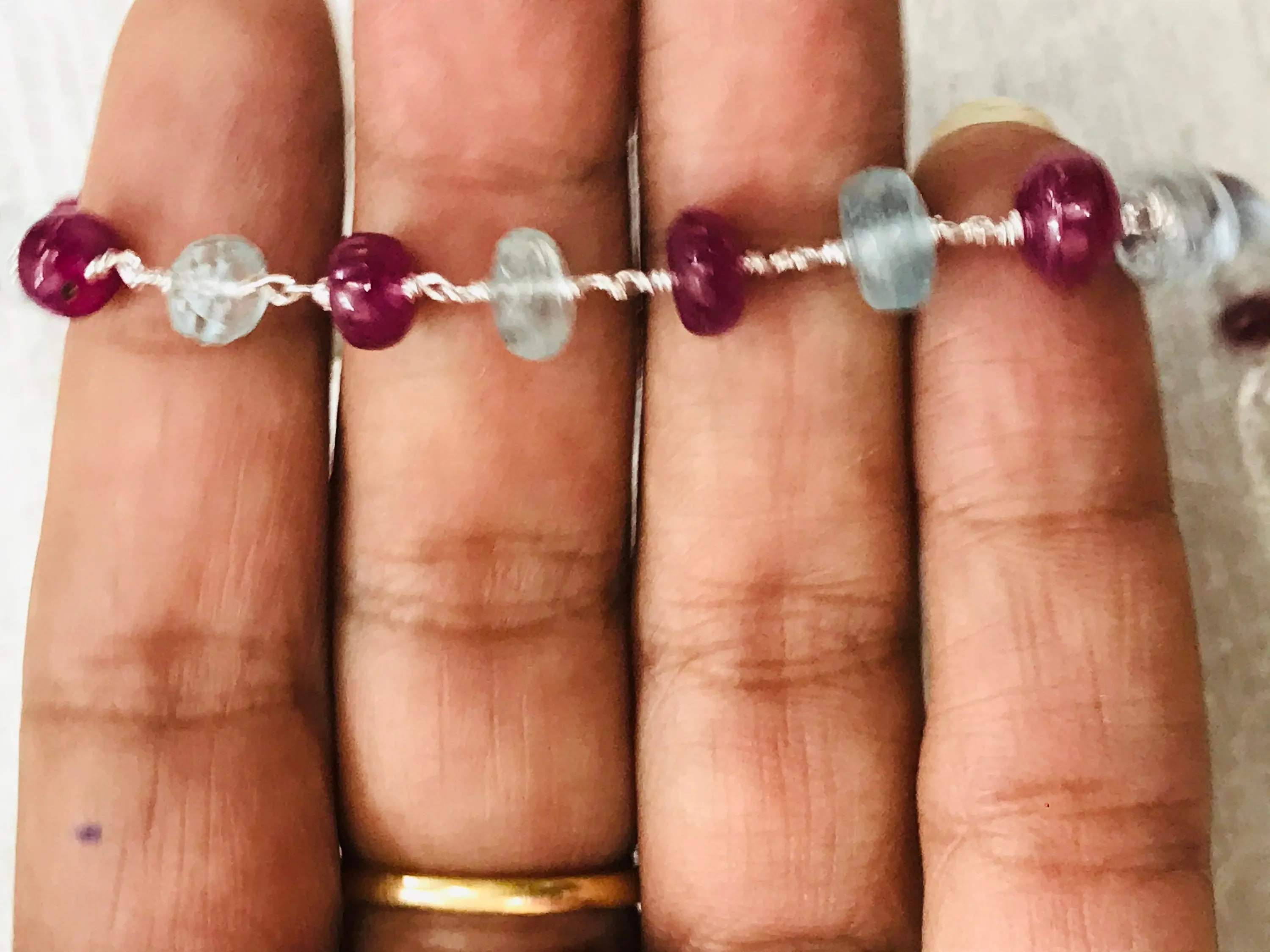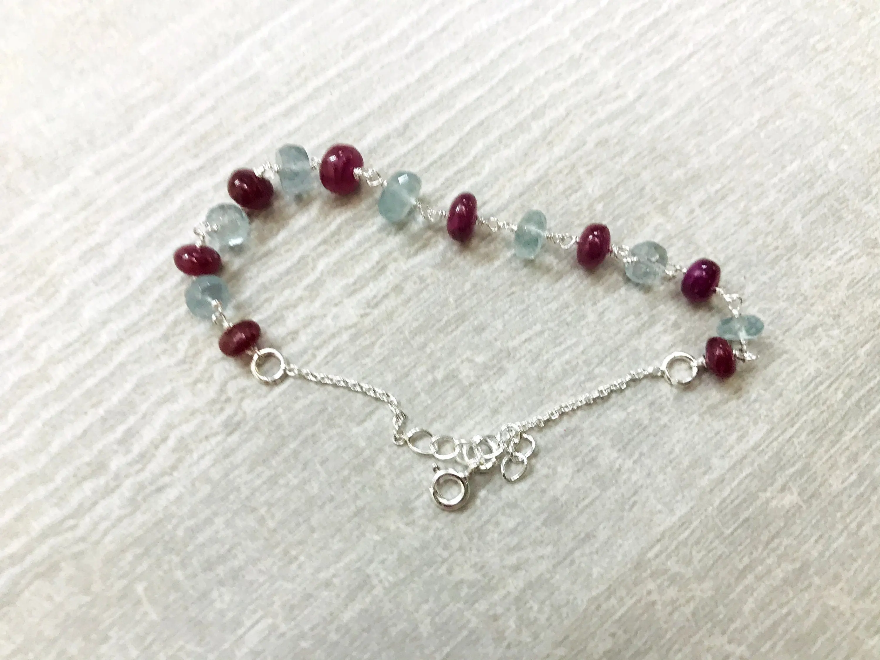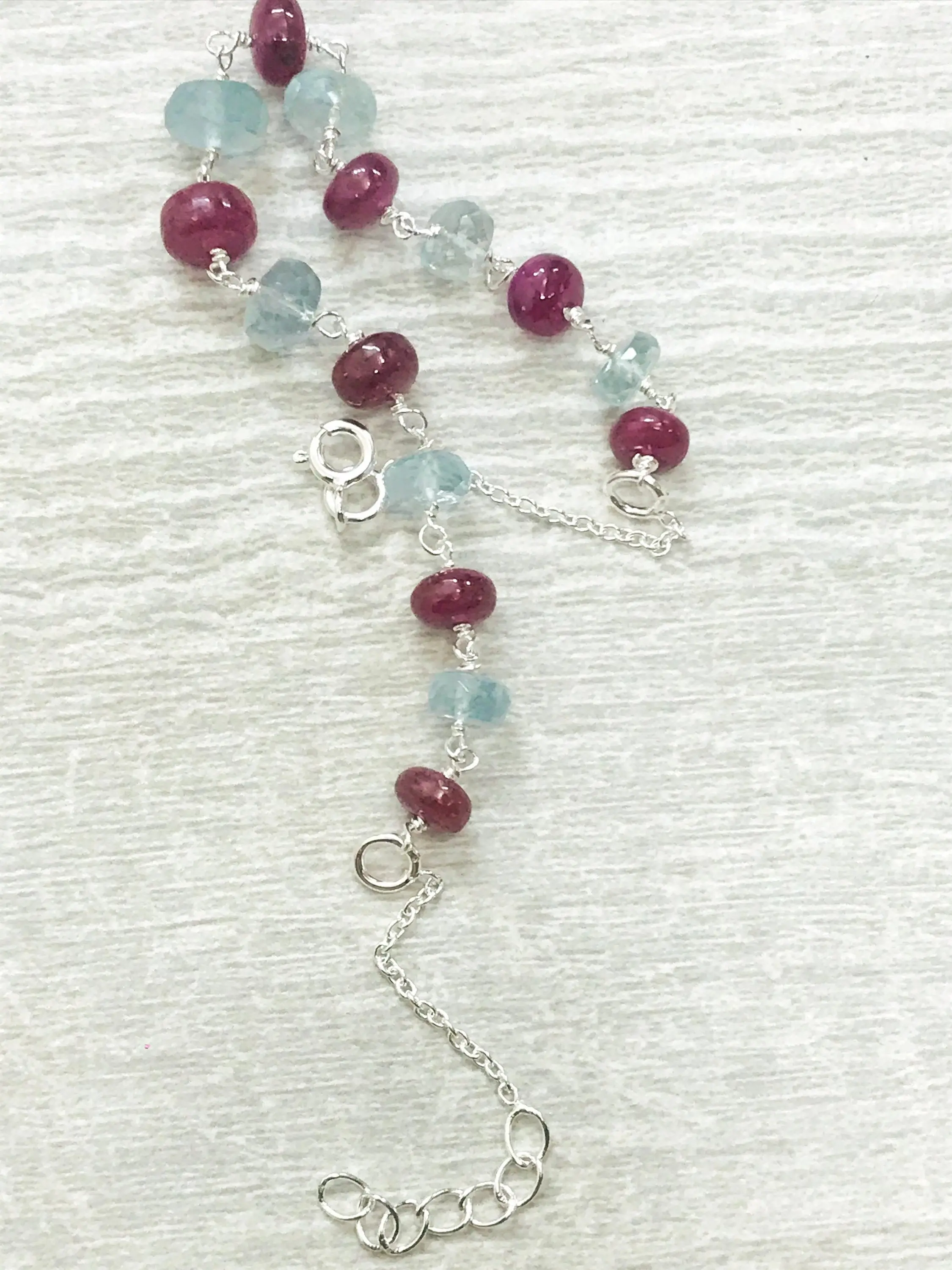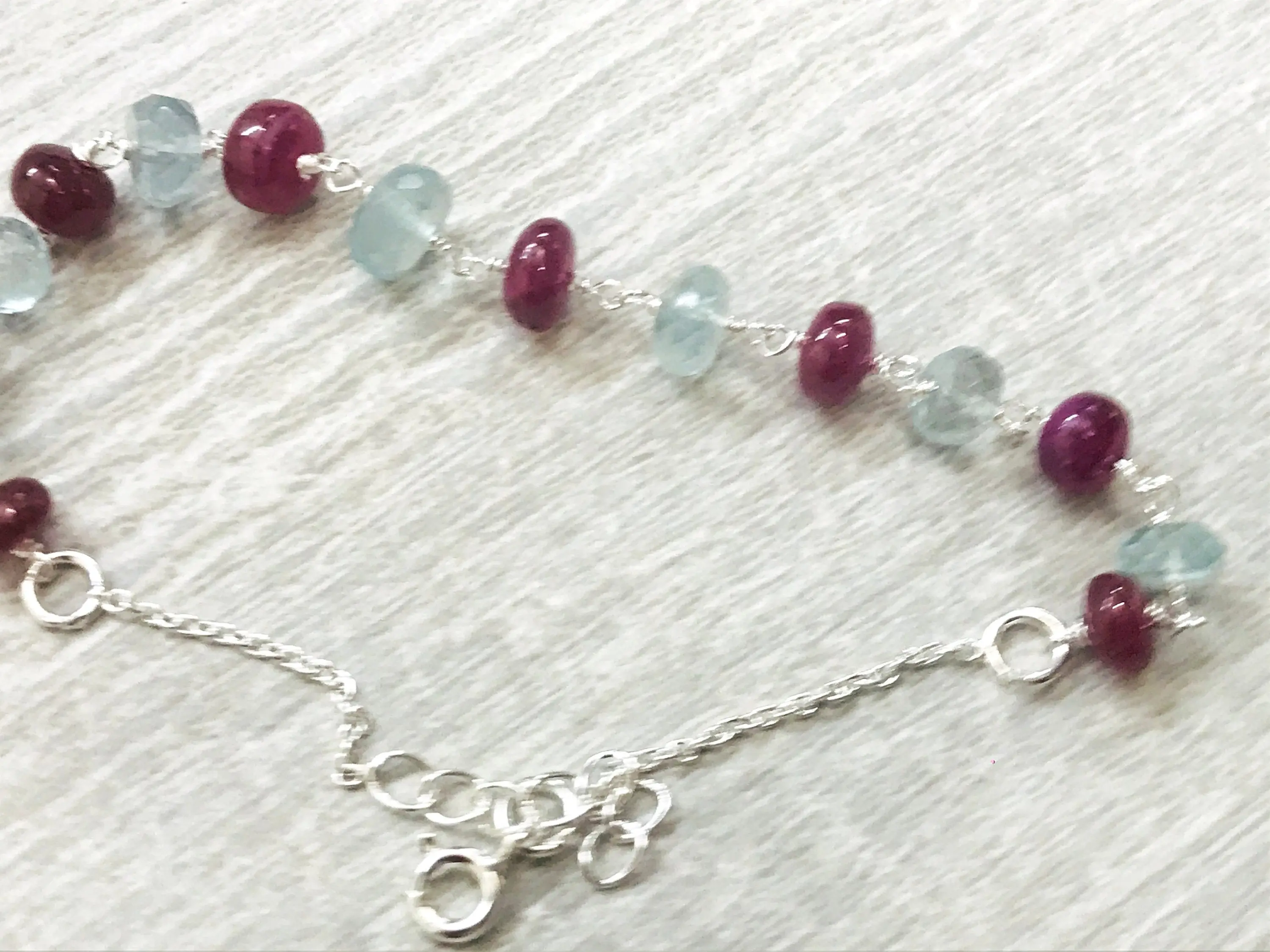 A 92.5 sterling silver super fine quality of different sizes aquamarine and Ruby....handmade jewelry