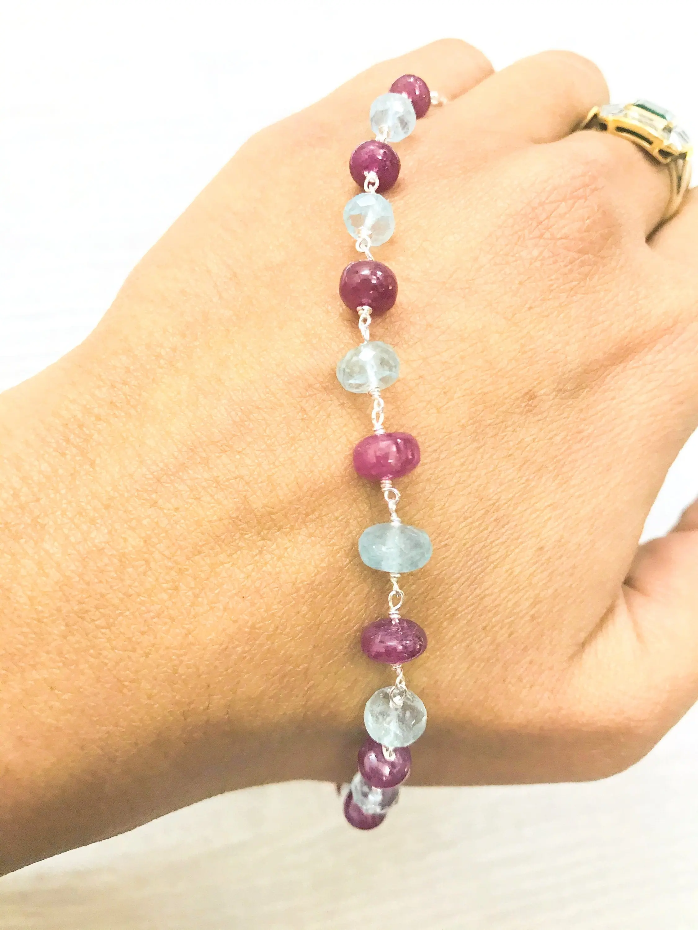AQUAMARINE RUBY Beads Bracelets , March N July Birthstone , Wedding Gift for her ,Natural Faceted Beads ,Fine jewelry
