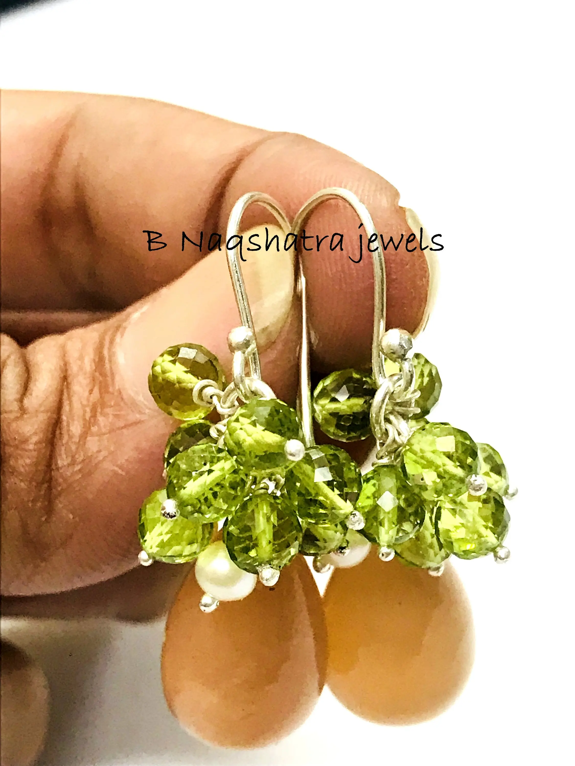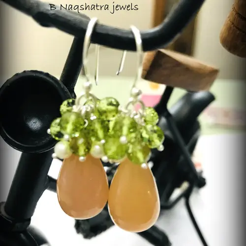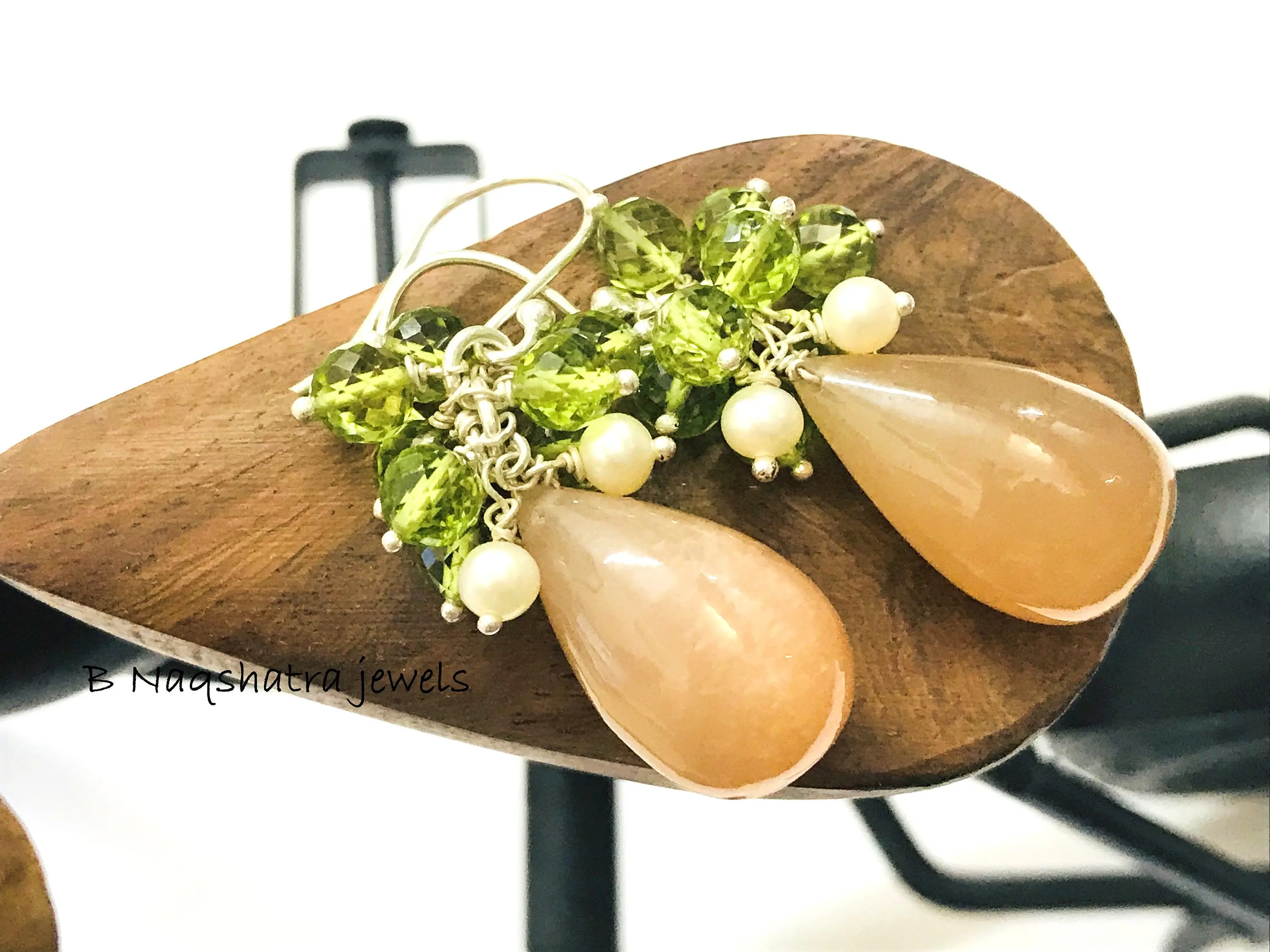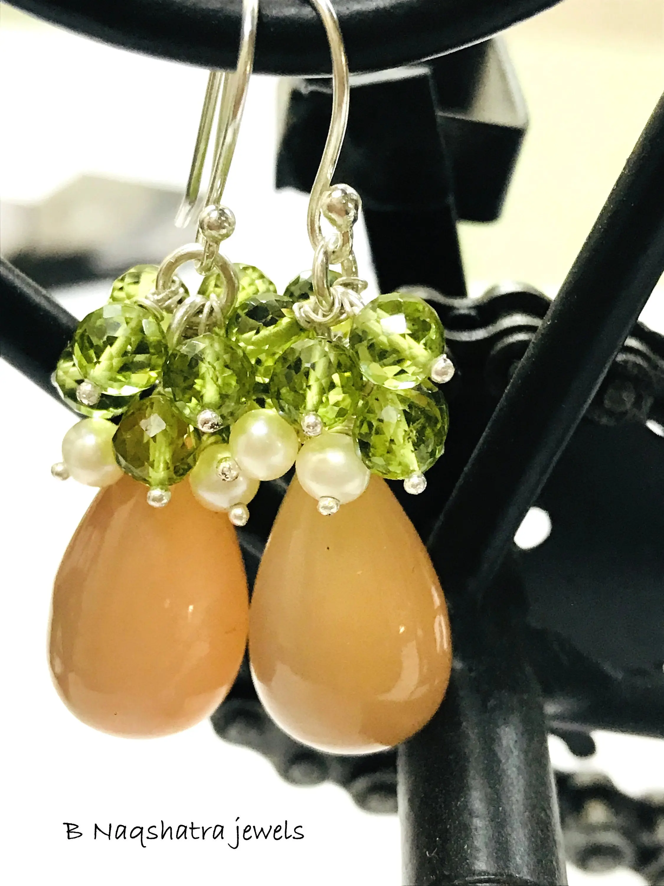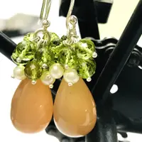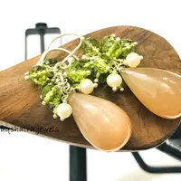 PERIDOT MOONSTONE PEARL Dangle & Drop Earrings,August Gemstone,Chandelier Earrings.