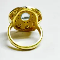 AQUAMARINE DIAMOND POLKI cocktail ring ,Rose Cut Diamonds ring , Christmas gift for loved ones , vintage style Jewellry