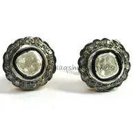 single solitaire hand cut diamond earring studded with 100% natural Rose cut diamonds in bezel and pave set......and black rhodium and gold plated plated......................