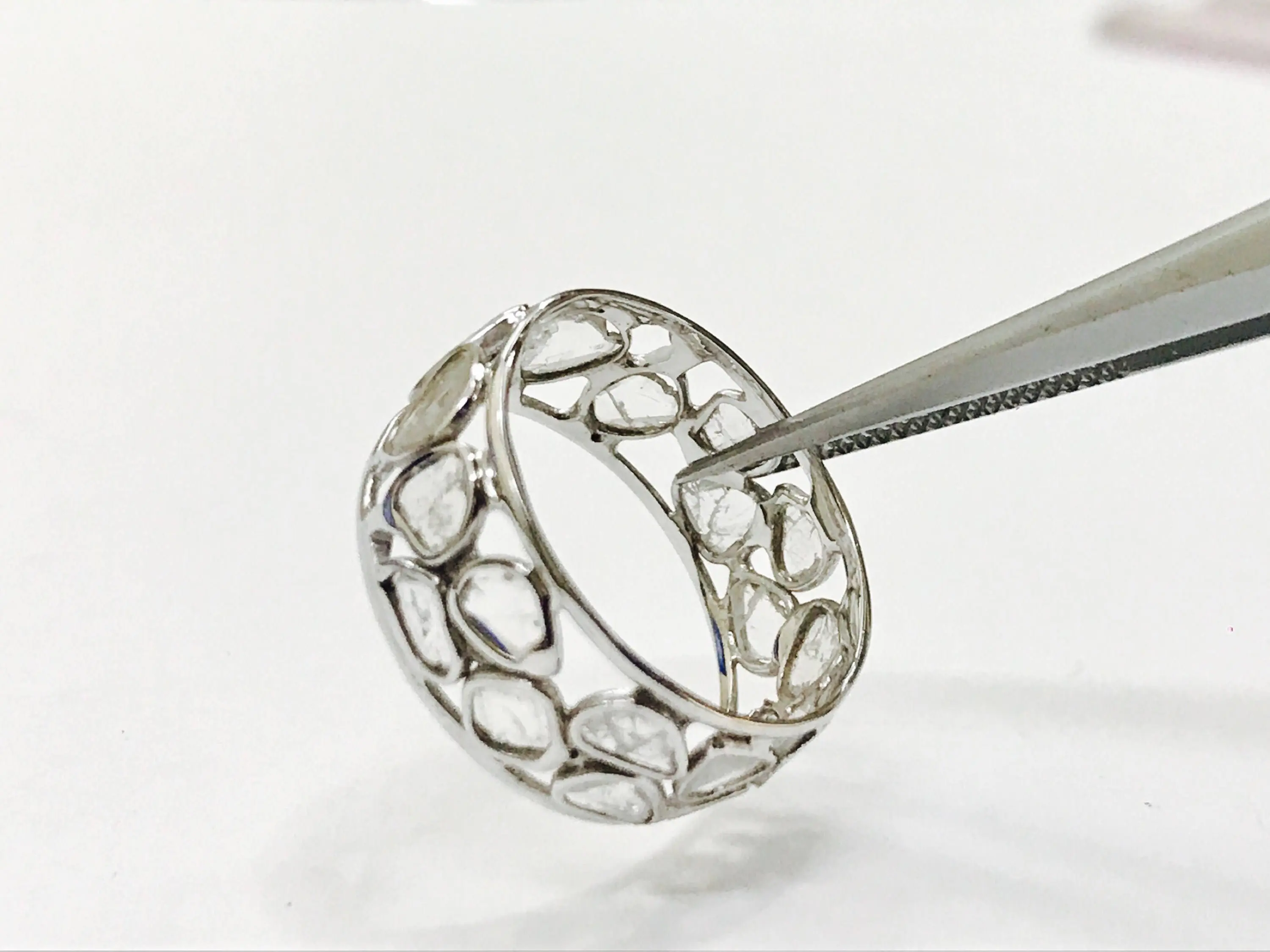 Polki diamonds in bezel set in 925 sterling silver makes it beautiful............