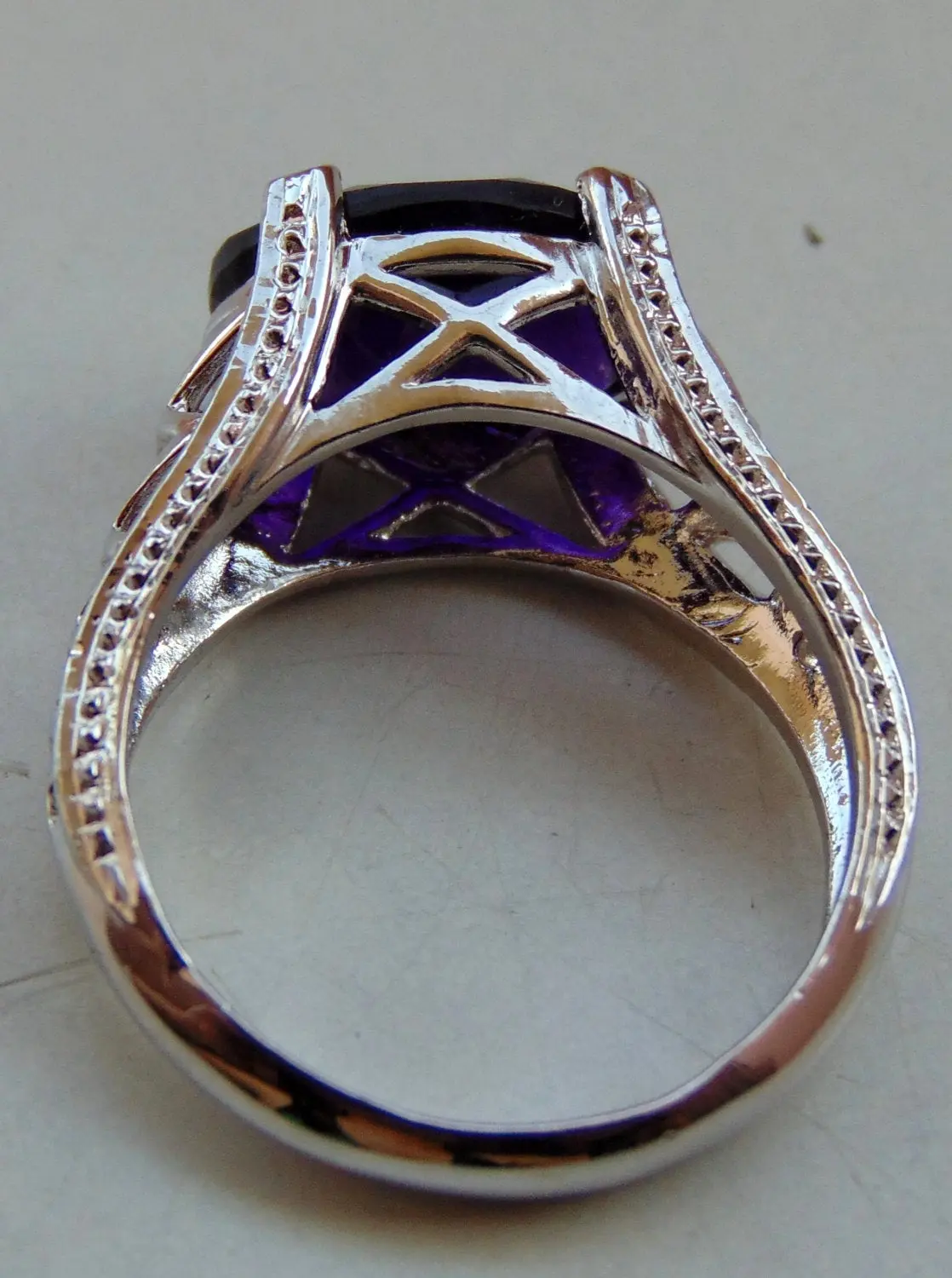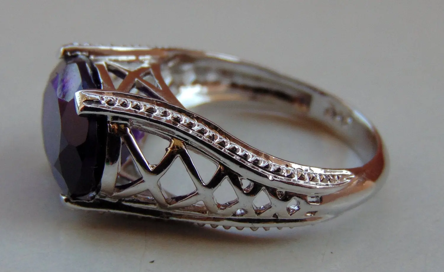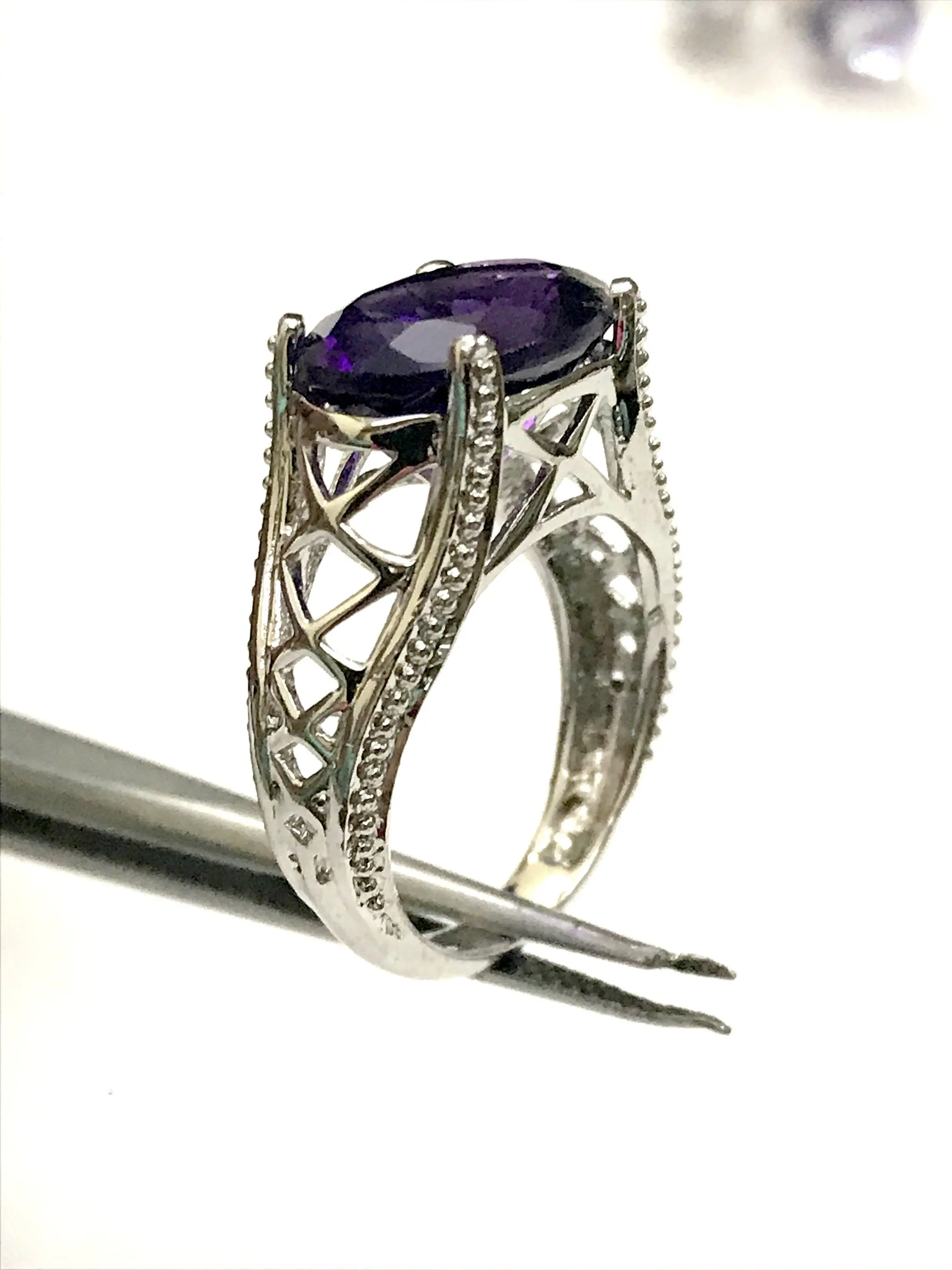 amethyst rings in handmade finest filigree work and balls like grain on all four sides of ring...........