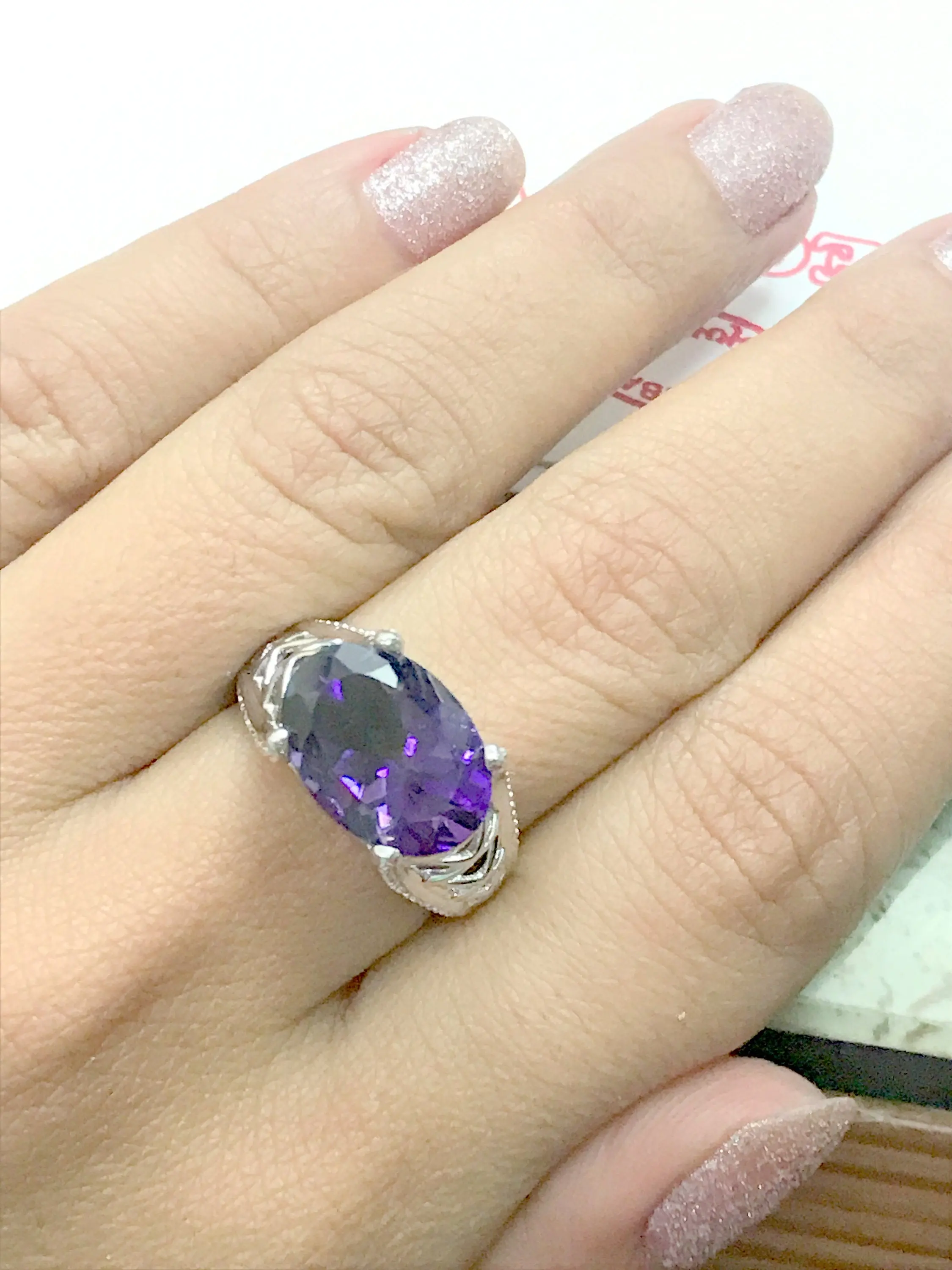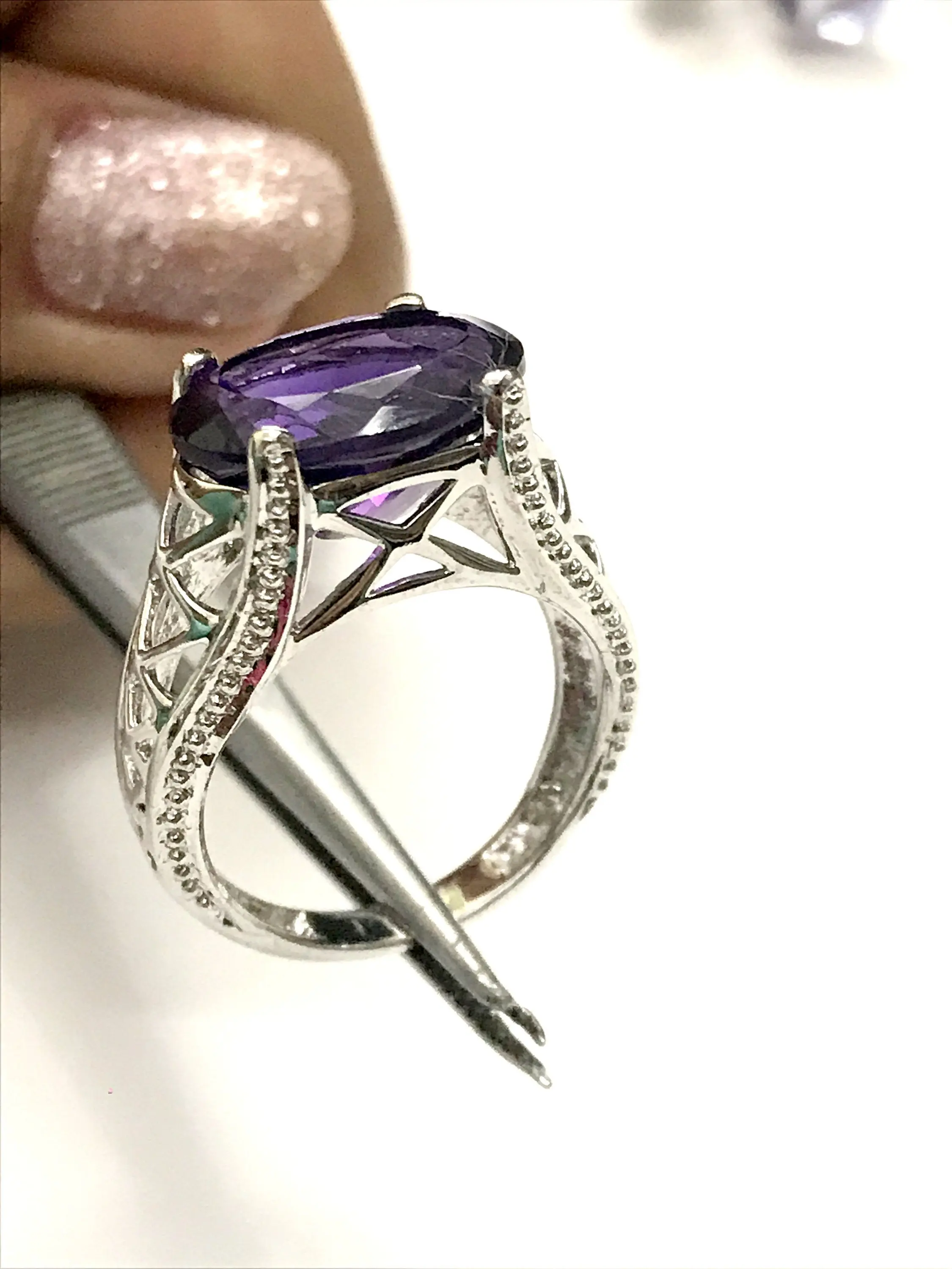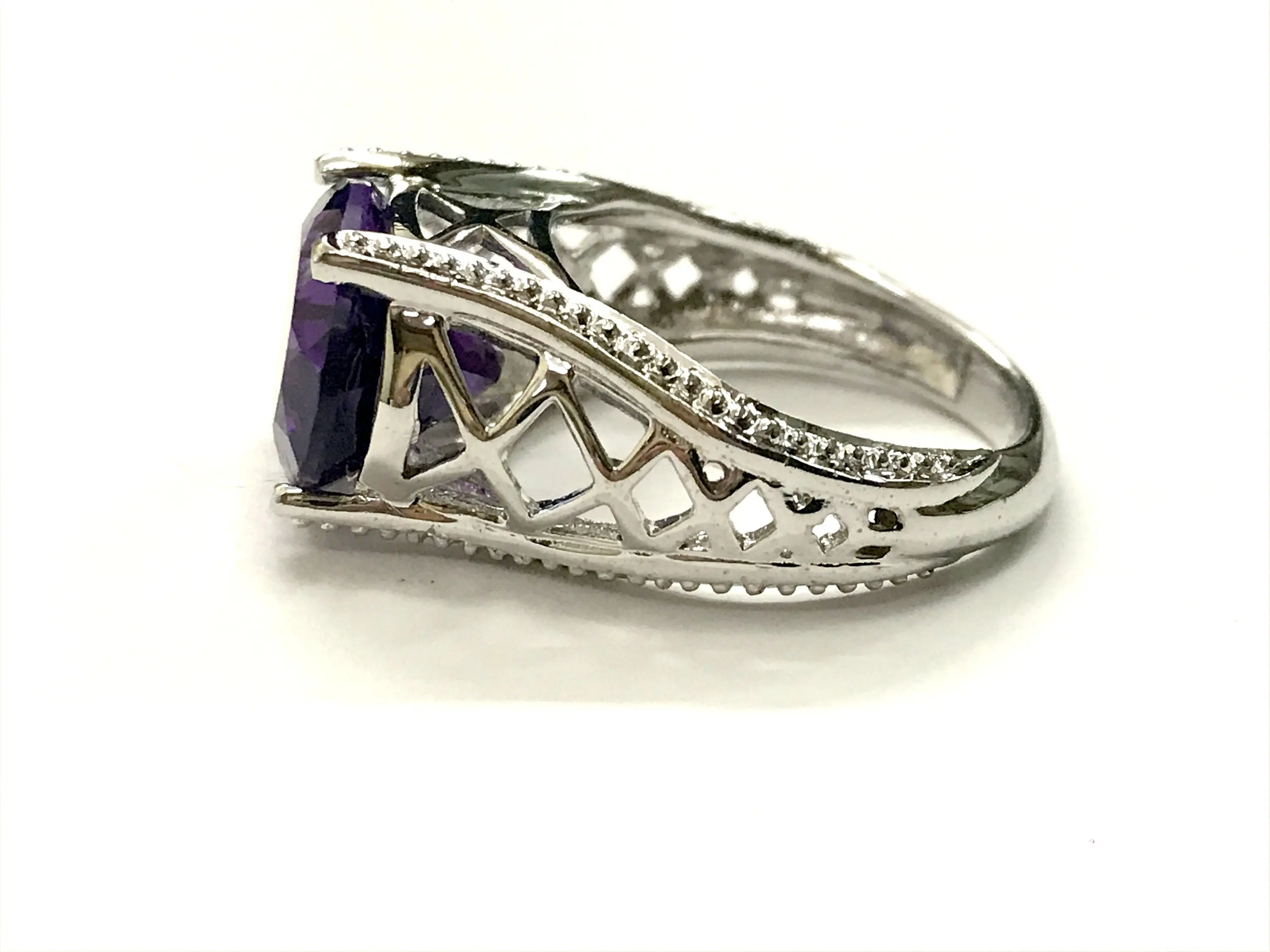amethyst rings in handmade finest filigree work and balls like grain on all four sides of ring...........