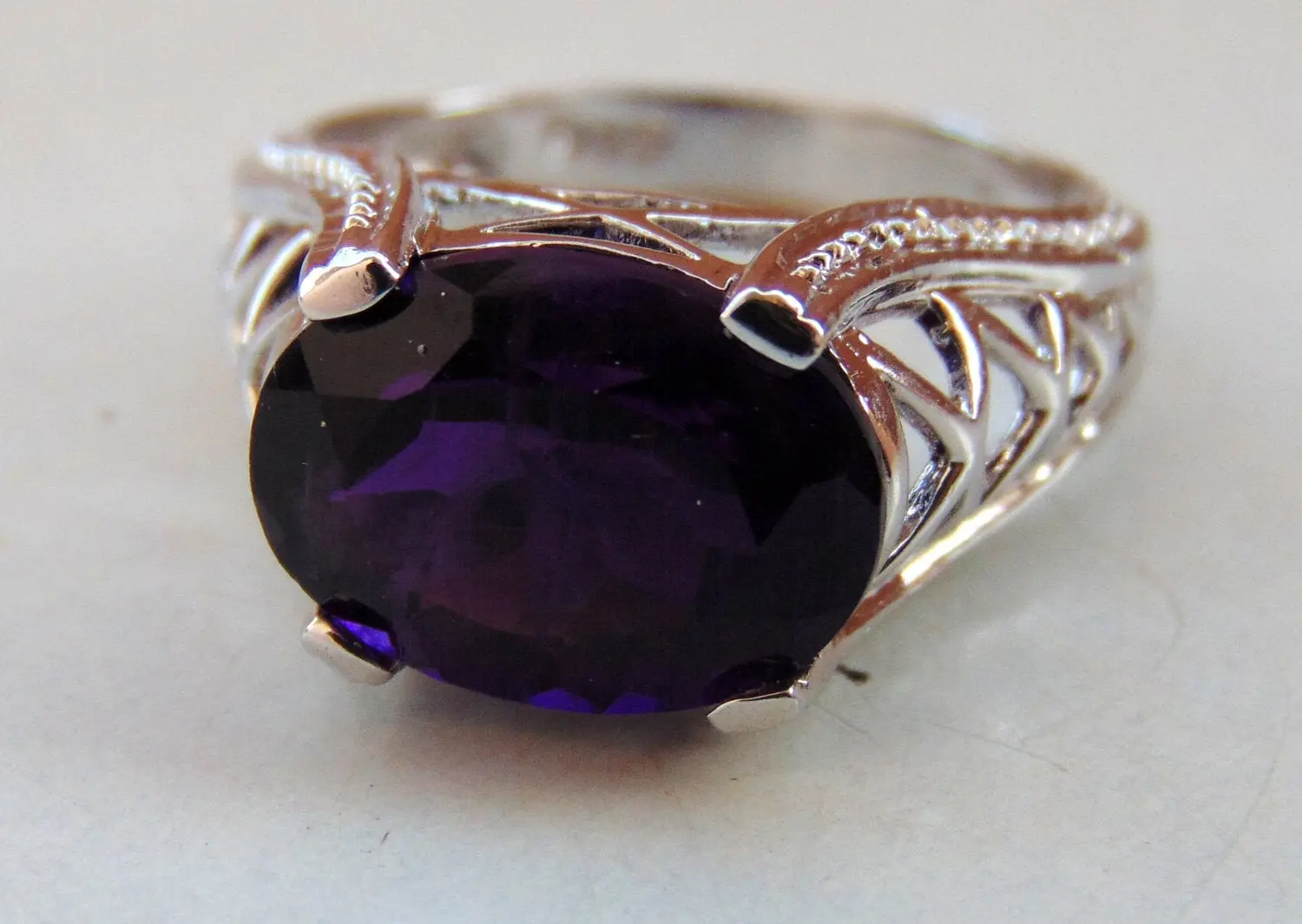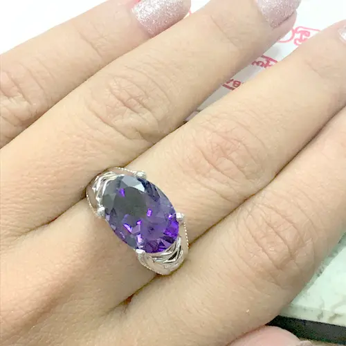 Gorgeous Sterling Silver Ring in a beautiful Purple Amethyst, which makes a lovely birthstone ring for those February Birthday Gals.