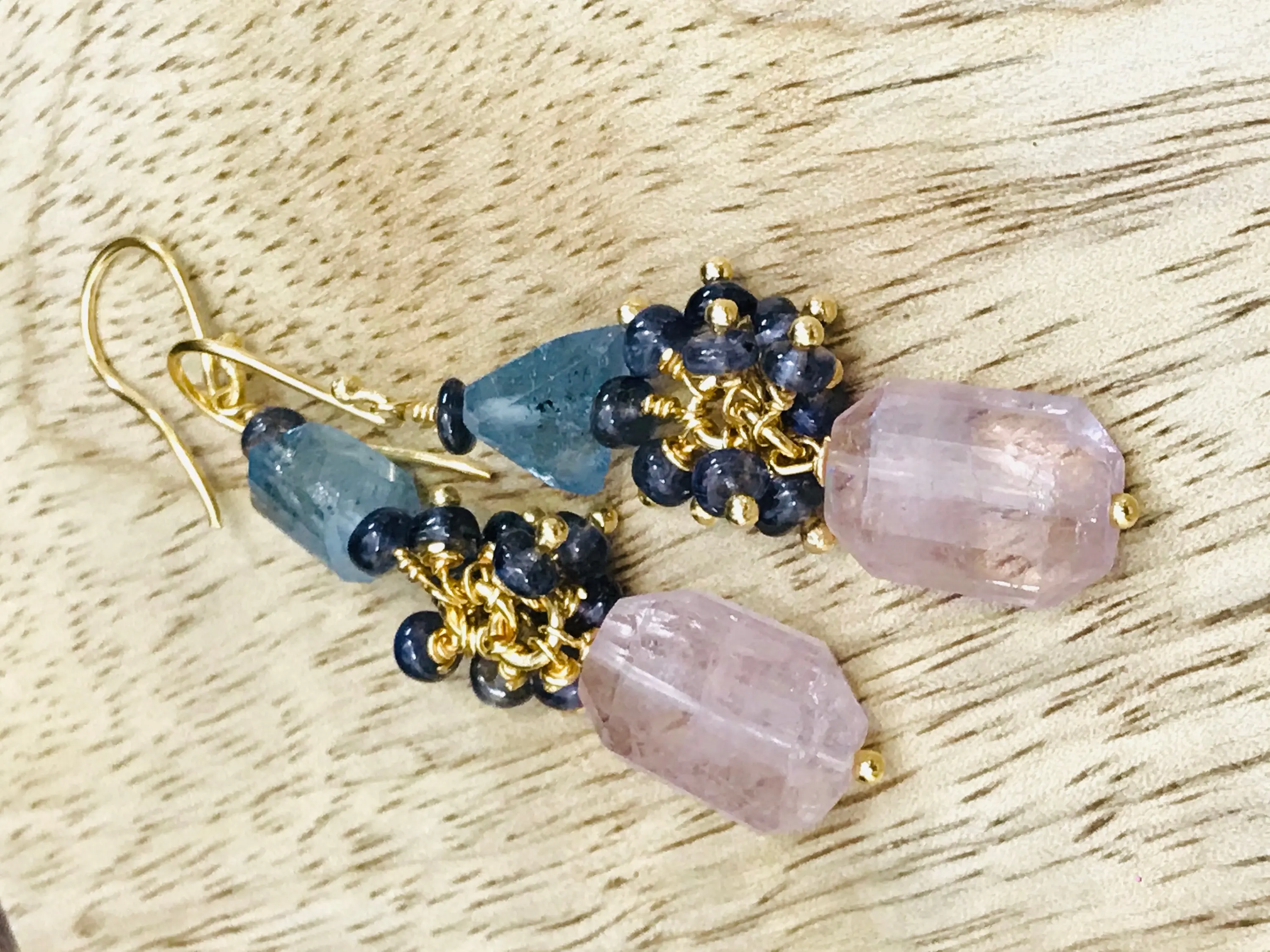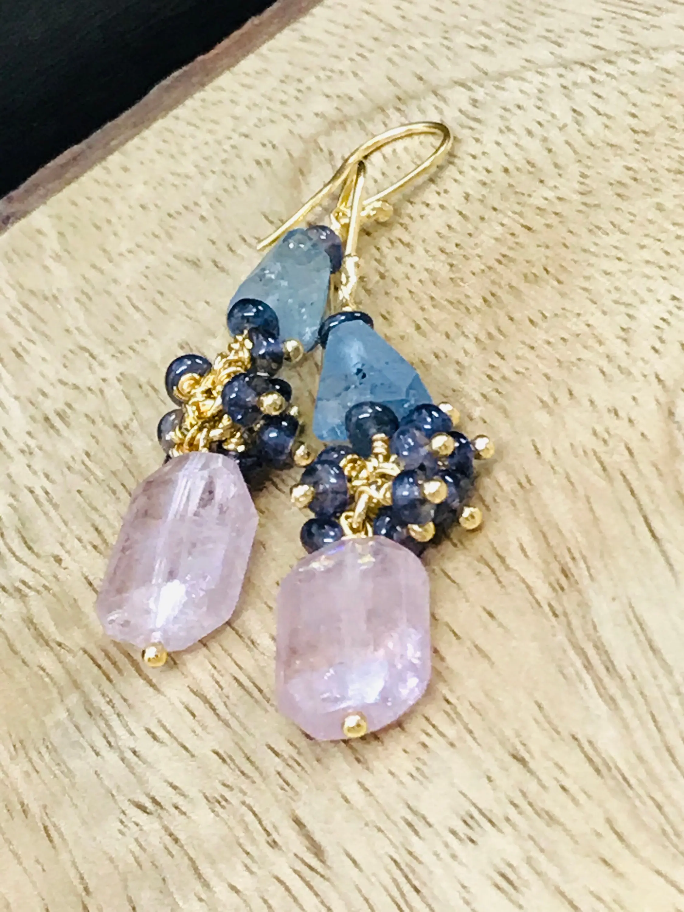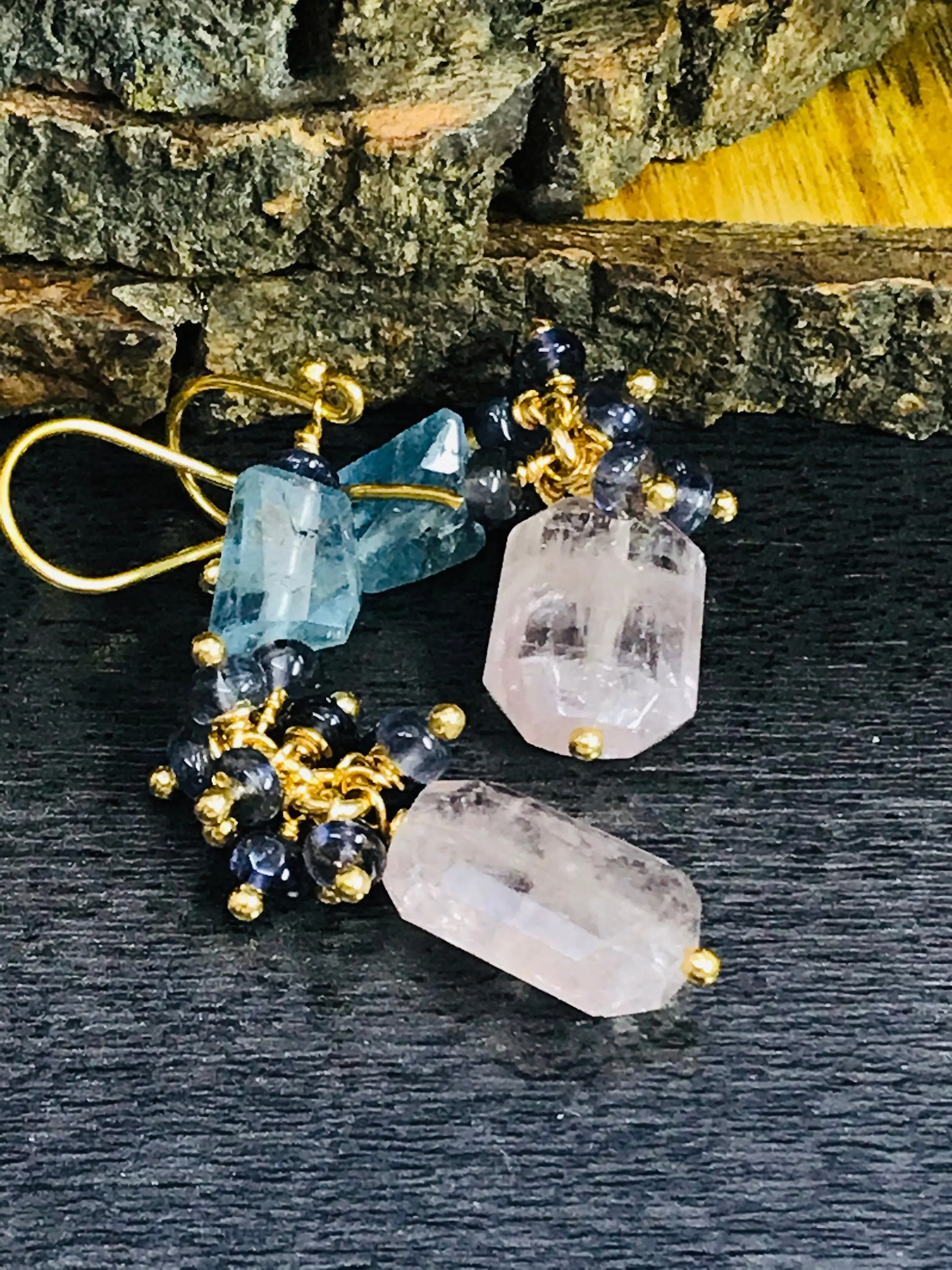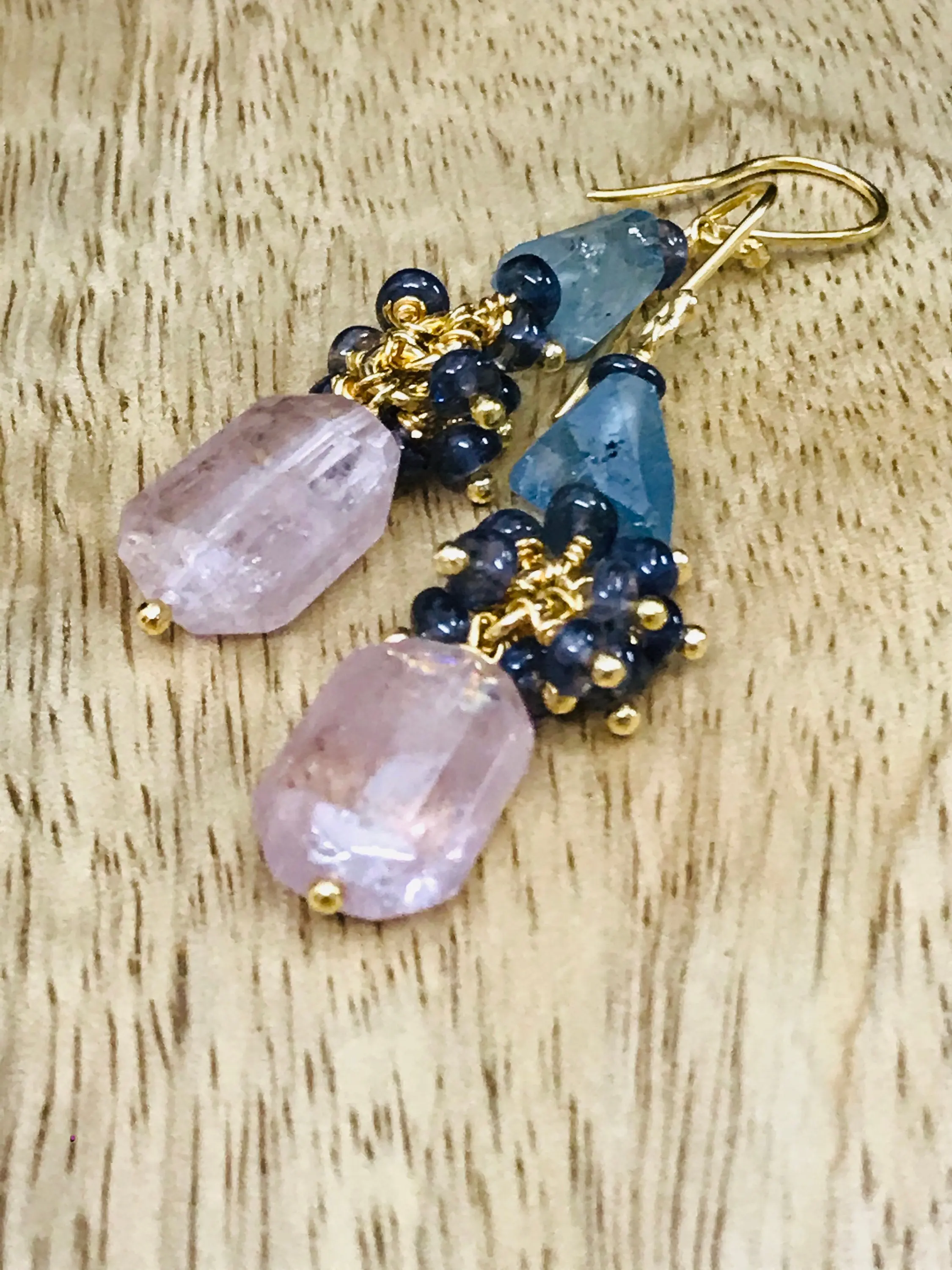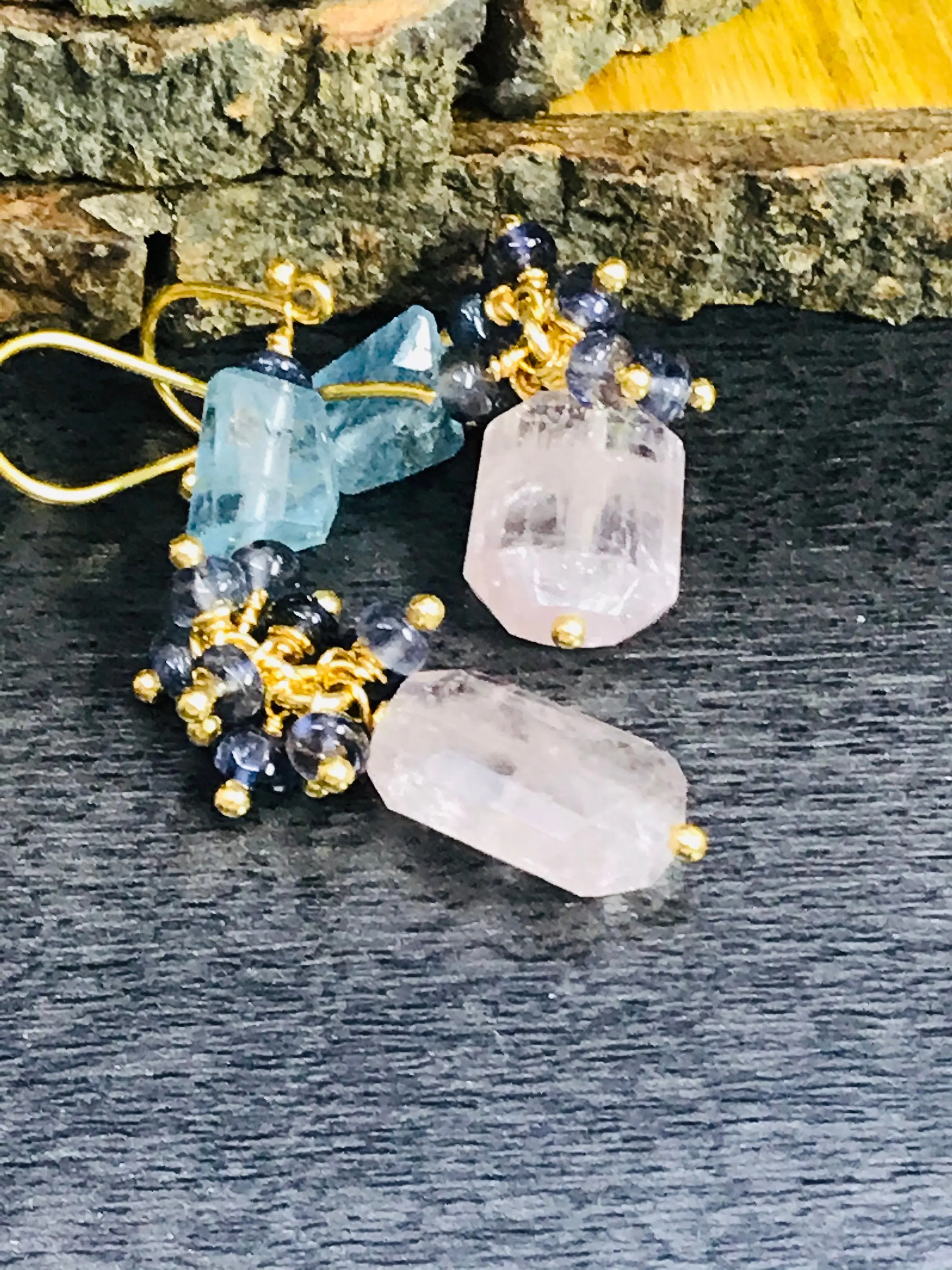✦Gemstone: Natural MULTI Aquamarine Tumbles and Iolite Beads