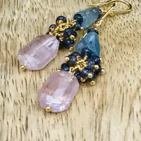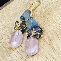 MULTI AQUAMARINE TUMBLE Earrings ,Gold Hook Earrings ,March Birthday Gift,Healing Crystal Jewelry ,Faceted Beads & Tumble