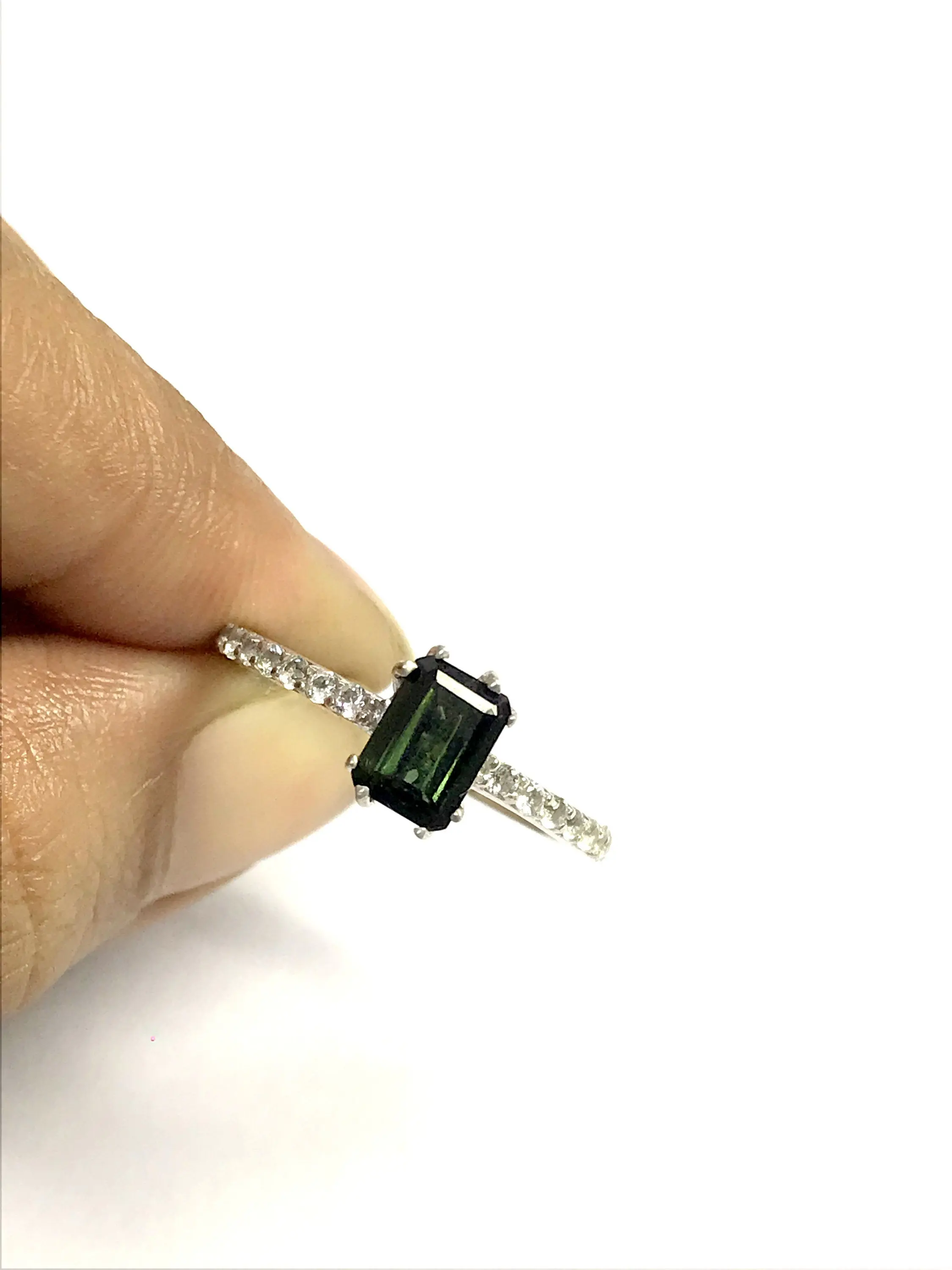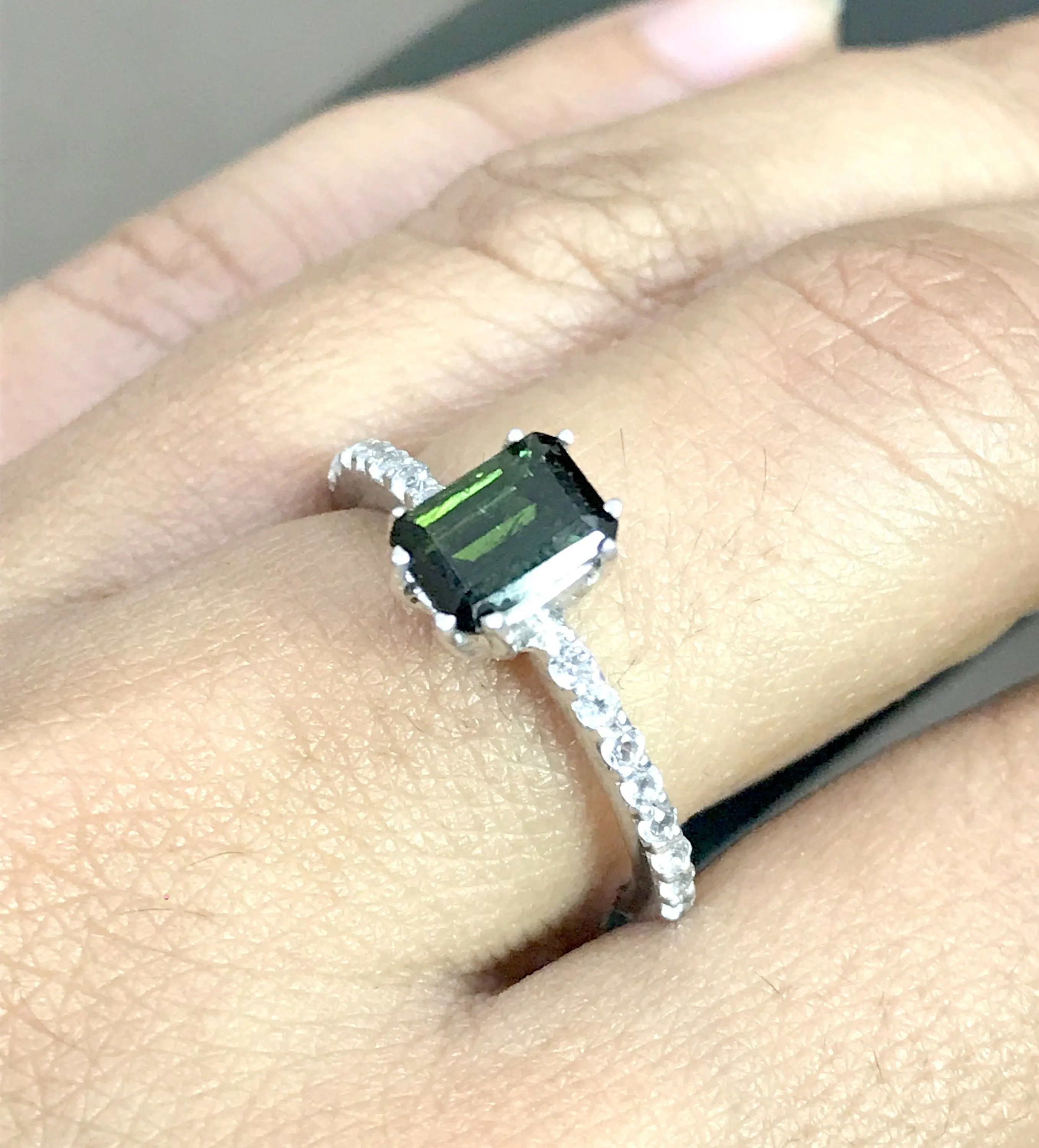 GREEN TOURMALINE TOPAZ ,Sterling Silver Ring , Octagon faceted, Faceted Green Tourmaline, , Halloween Gift ,, Christmas Gift..