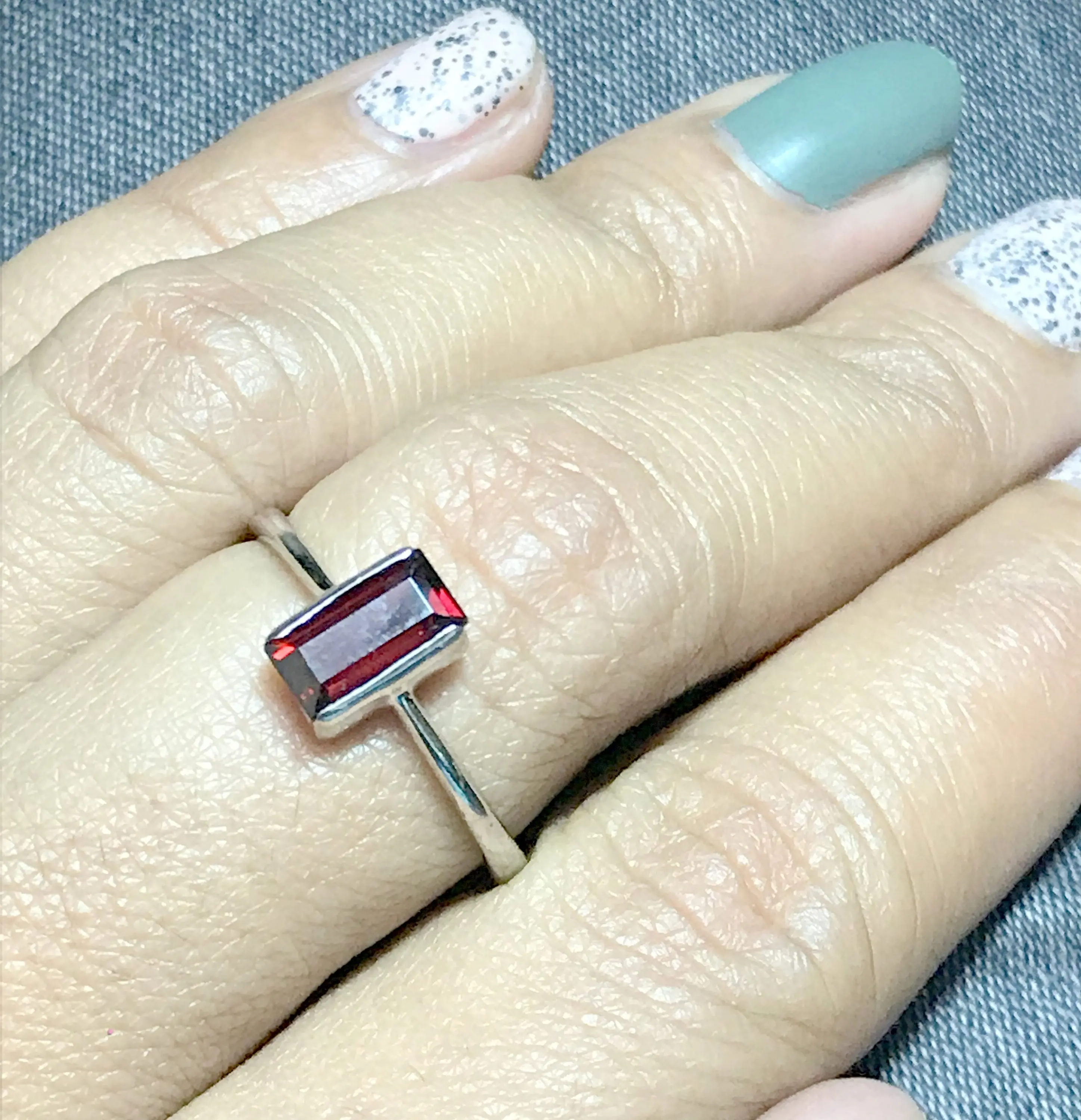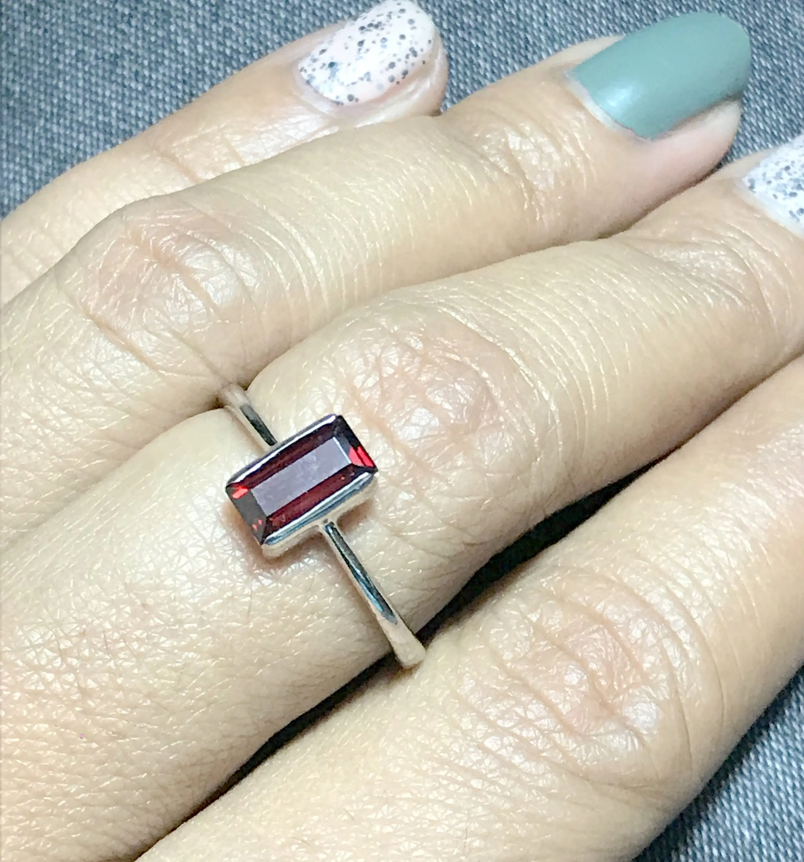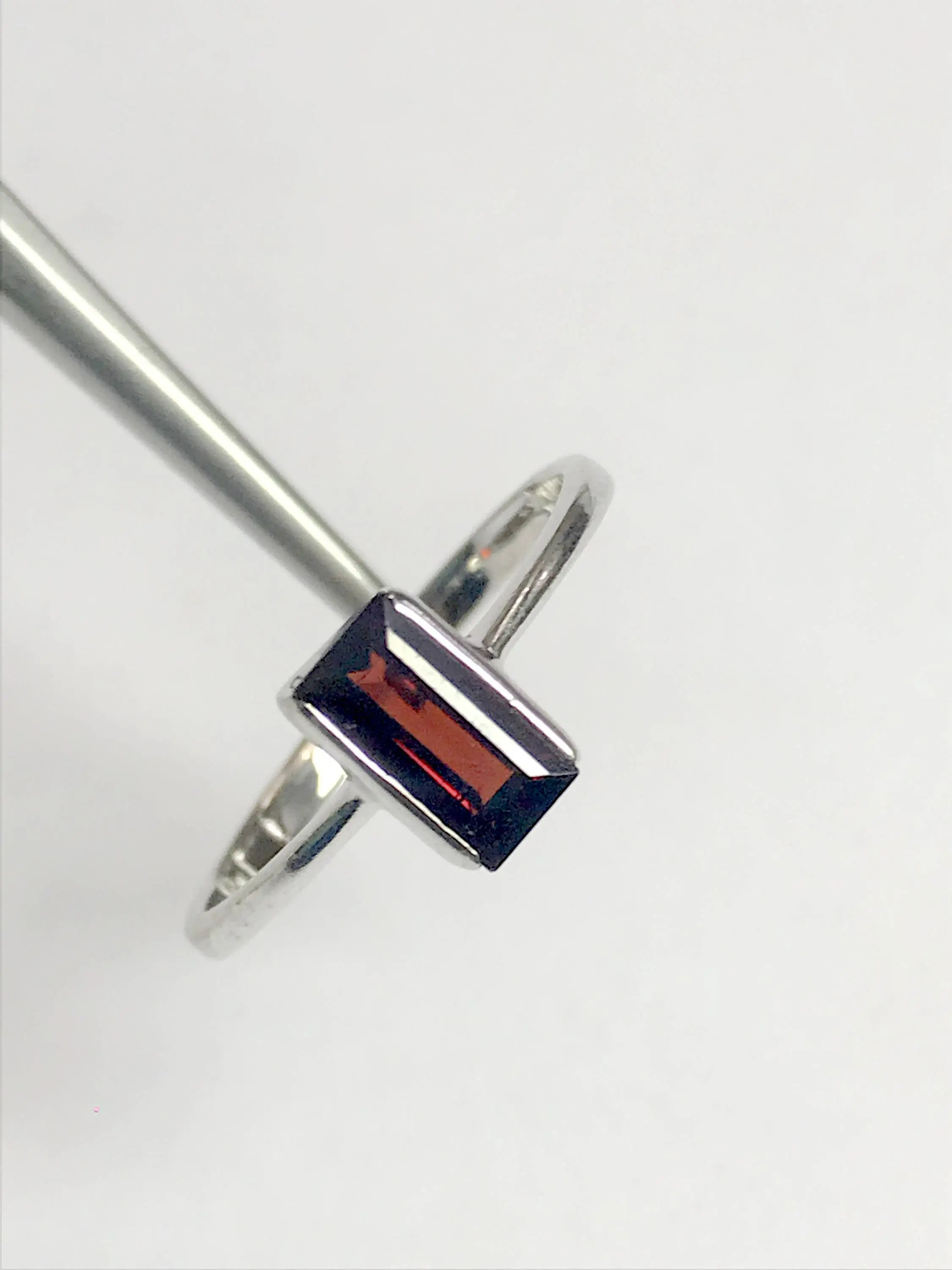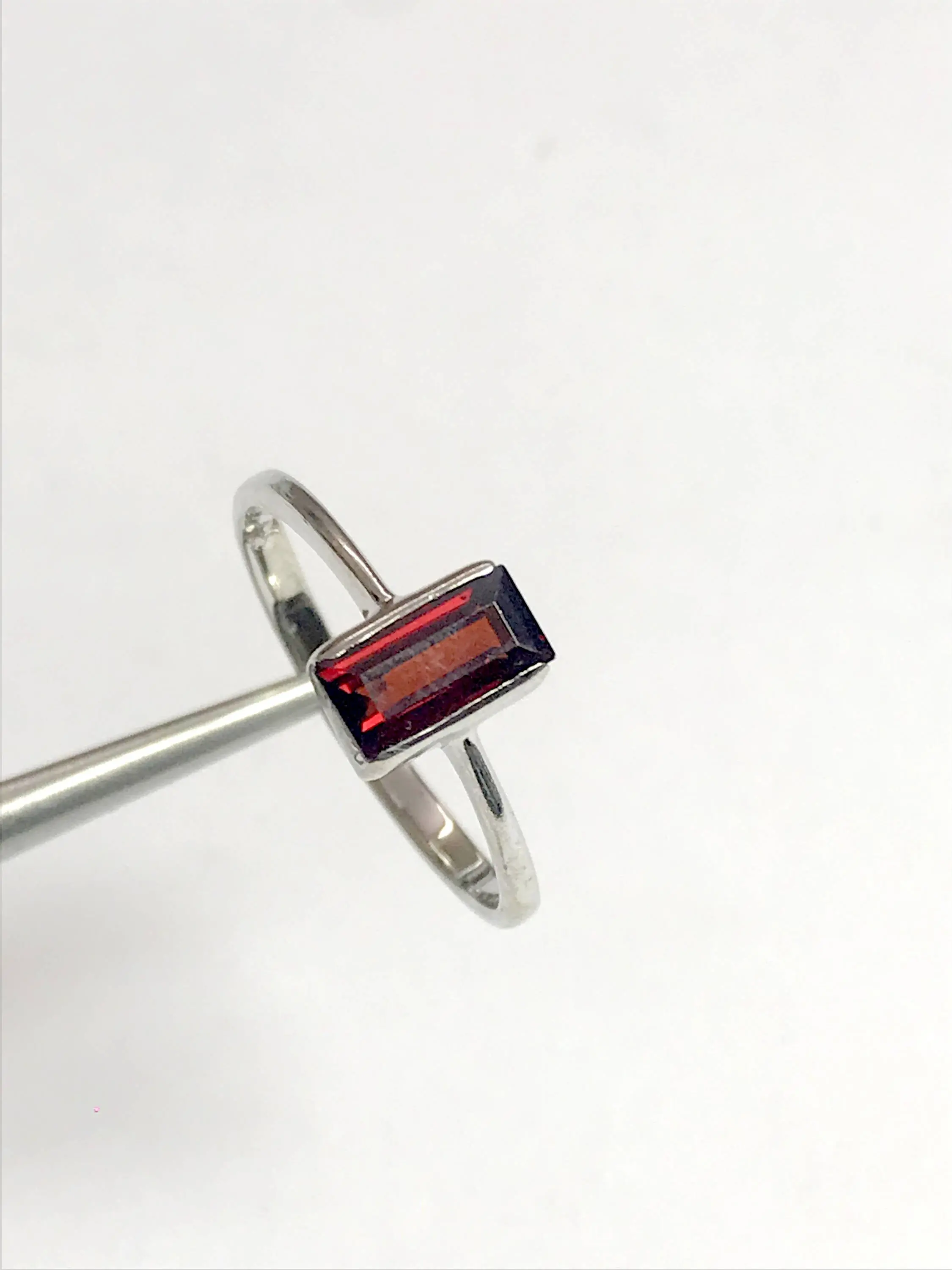 REDDISH GARNET BAGUETTE , 925 Sterling silver Ring , Mossambique Garnet ,January Birthstone, lovely gift for her