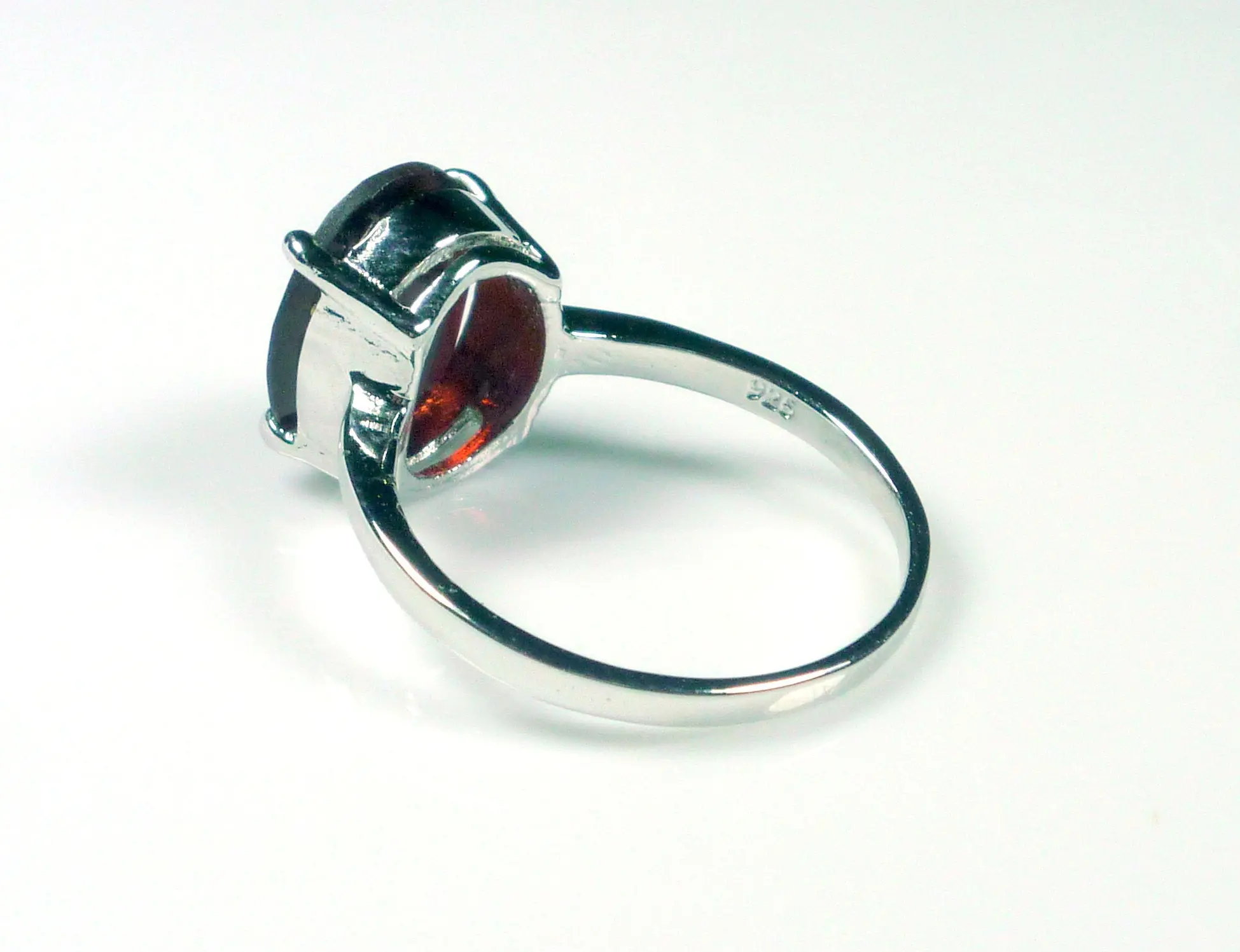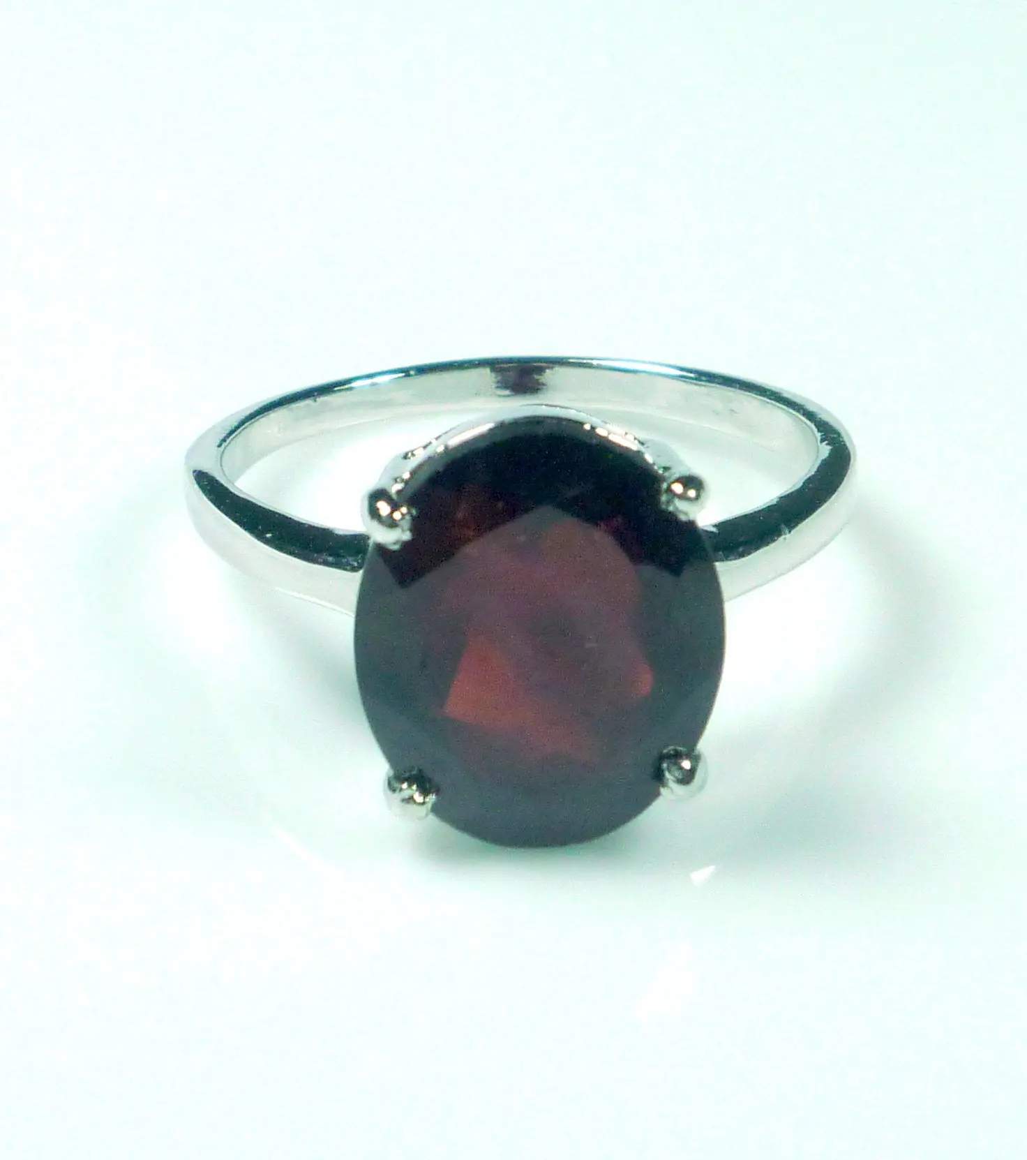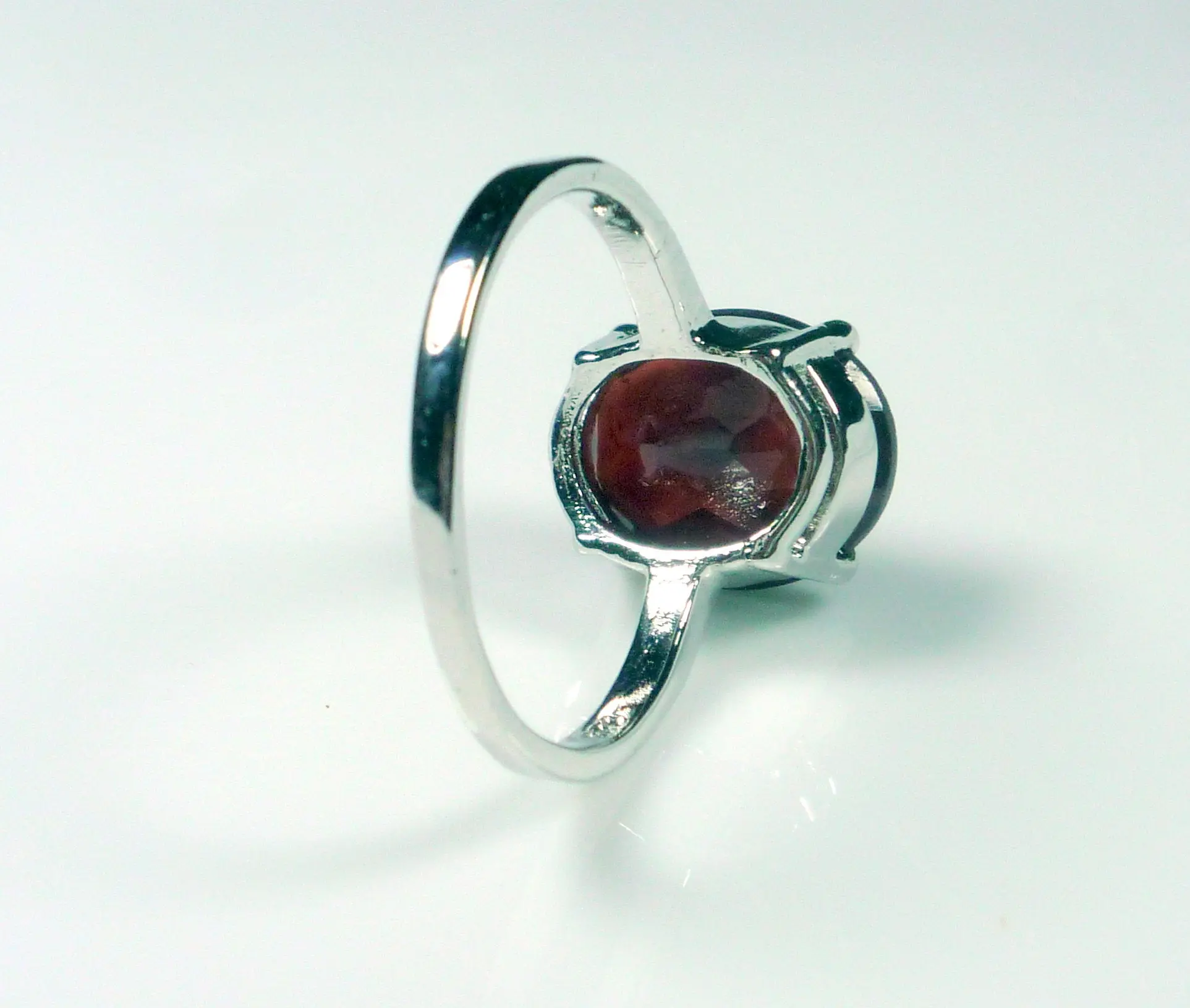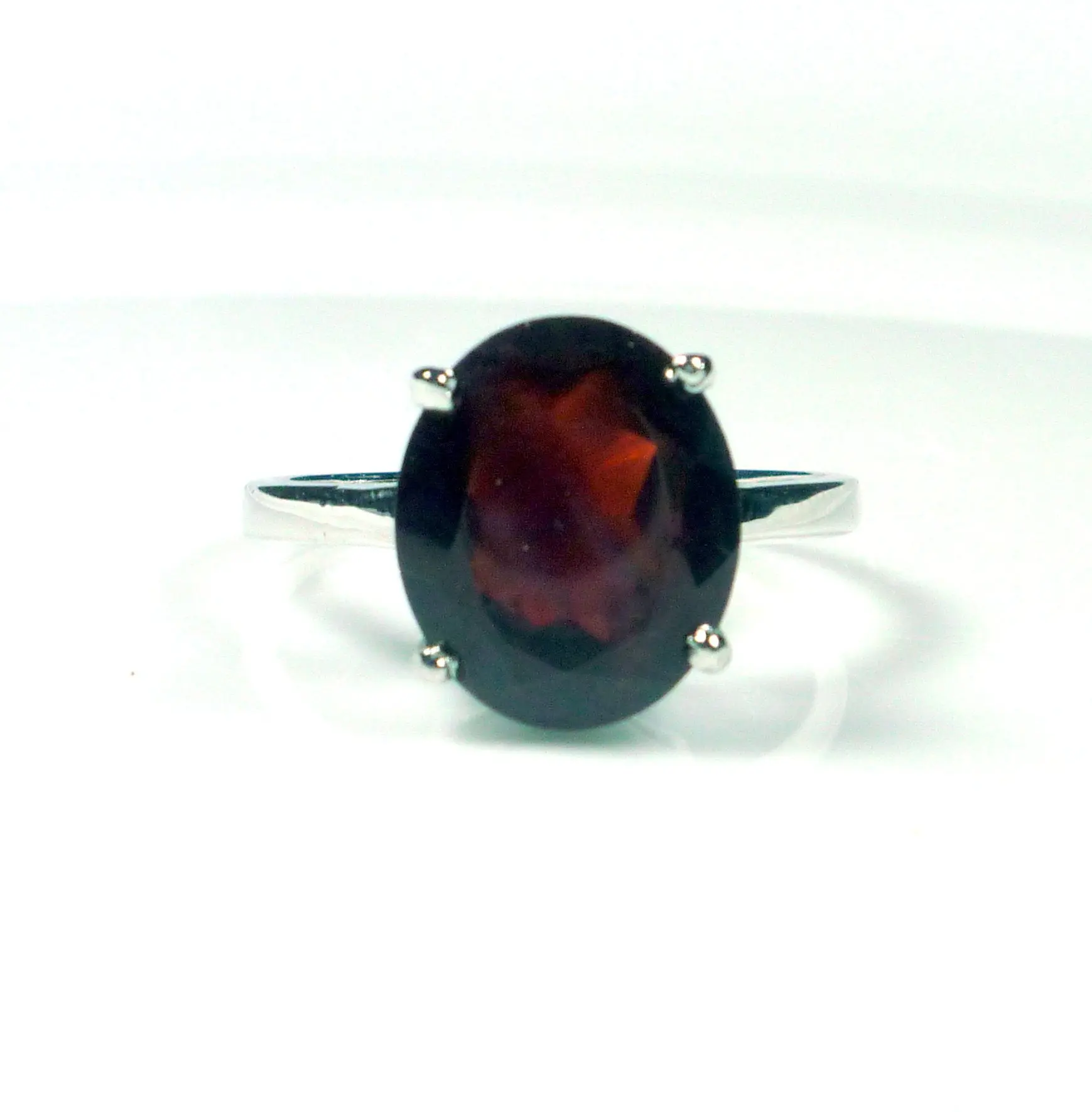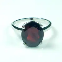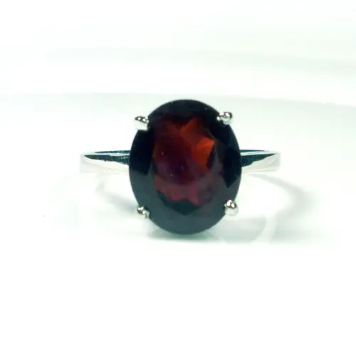 This dainty ring features a very rich, deep brownish red, 5.00 carat oval cut natural garnet, set in .925 solid sterling silver. Very comfortable to wear and absolutely stunning in natural light.